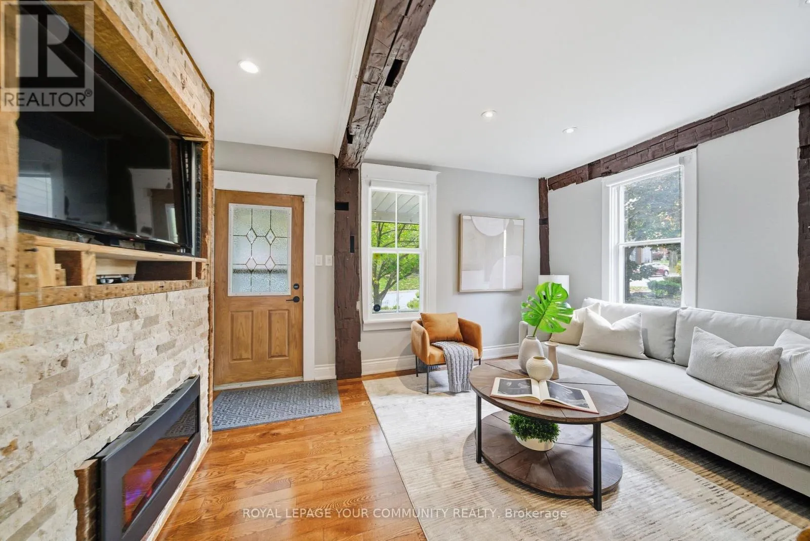 Cross Streets: Yonge St & Major Mackenzie. ** Directions: Yonge St & Major Mackenzie, enter Yonge St and Arnold Crescent. Perfect for FIRST TIME BUYERS ready to own a freehold home or for those looking to DOWNSIZE without compromise - this home delivers it all. This enchanting semi-detached home is one that perfectly blends sophisticated charm with timeless character. Nestled in the highly sought-after Mill Pond community, this residence sits on a rarely offered 153 ft deep lot featuring a fully fenced backyard and a picturesque front porch - ideal for enjoying quiet mornings or evening sunsets. Step inside to a warm and inviting family room exuding comfort and character, highlighted by a large window, pot lights, and a cozy electric fireplace. Offering a seamless flow from the family room to the dining area, creating an open and connected main floor ideal for both everyday living and entertaining. Throughout the home, century-old hand-hewn beams and refined hardwood floors on the main level add architectural depth and rustic authenticity. The bright, updated kitchen is both functional and stylish featuring a breakfast bar, quartz countertops, ample storage space, a side entrance, and a walk-out to your private backyard retreat with a deck and patio perfect for entertaining or simply creating peaceful moments surrounded by nature. A thoughtfully located powder room completes the main level. Upstairs, discover a bright and open second level that offers versatility and charm. The primary bedroom includes a walk-in closet, while the second bedroom provides comfort for family or guests. A sun-filled open area with a window offers the perfect space for a home office or den, combining elegance with functionality. The generously sized main bathroom is impressive and highly functional - a true luxury for daily living. Located just steps from vibrant shops, the Richmond Hill Centre for the Performing Arts, top-rated schools, and scenic Mill Pond walking trails, this home delivers the best of community, character, and convenience making it an ideal choice for families and professionals alike. (id:27476)
