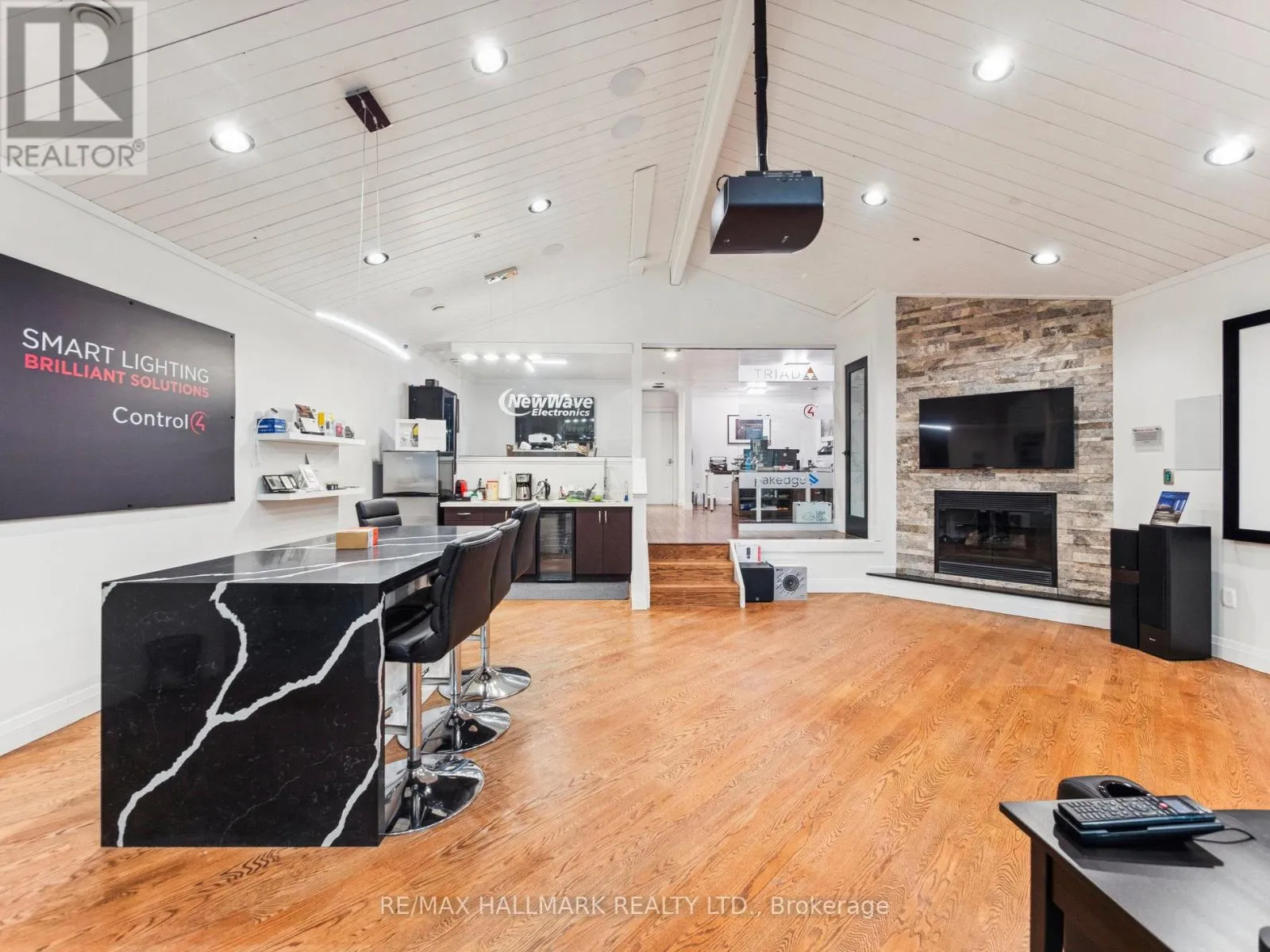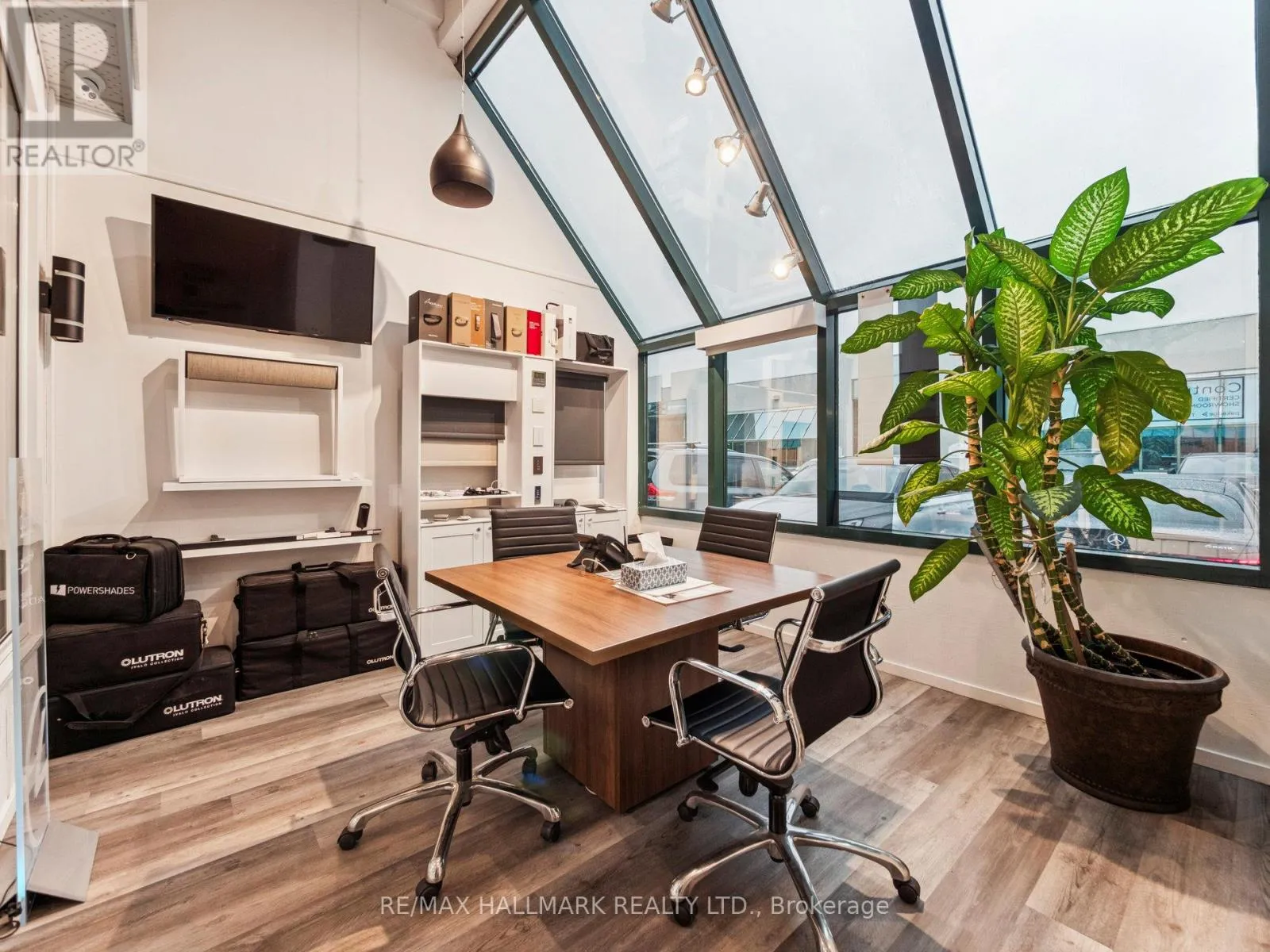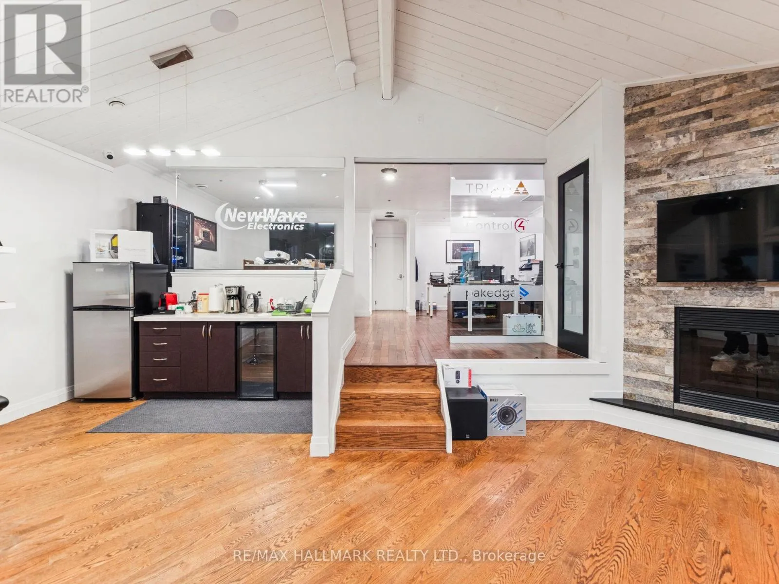 Cross Streets: HWY 7 & LESLIE. ** Directions: West Beaver Creek & HWY 7. Discover a rare opportunity to own a versatile industrial/office condominium in the heart of Richmond Hill's prestigious West Beaver Creek business district. This well-maintained unit at 175 West Beaver Creek Road offers 1,347 sq. ft. plus a 400 sq. ft. mezzanine, providing flexible space for a variety of business operations.The layout features a welcoming showroom, private offices, two washrooms, a kitchenette, and a gas fireplace that enhances comfort and character. A professional front entrance ensures a polished client experience, while the rear access facilitates efficient deliveries and shipping.Additional highlights include a dedicated parking space, ample visitor parking, and low maintenance fees. This prime location provides quick access to Highways 7, 404, 407, and 401, and is surrounded by restaurants, hotels, and major commercial amenities.Zoned to accommodate a wide range of professional, office, and light industrial uses, this property also includes an owned HVAC system and on-demand water heater for long-term value and reliability. (id:27476)