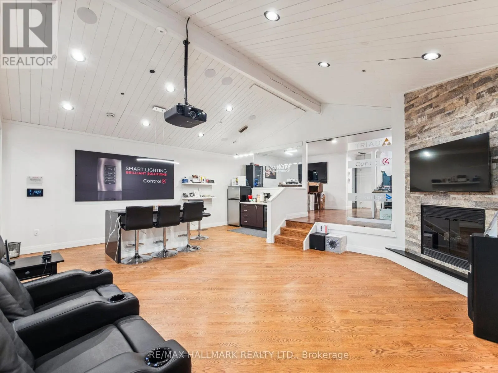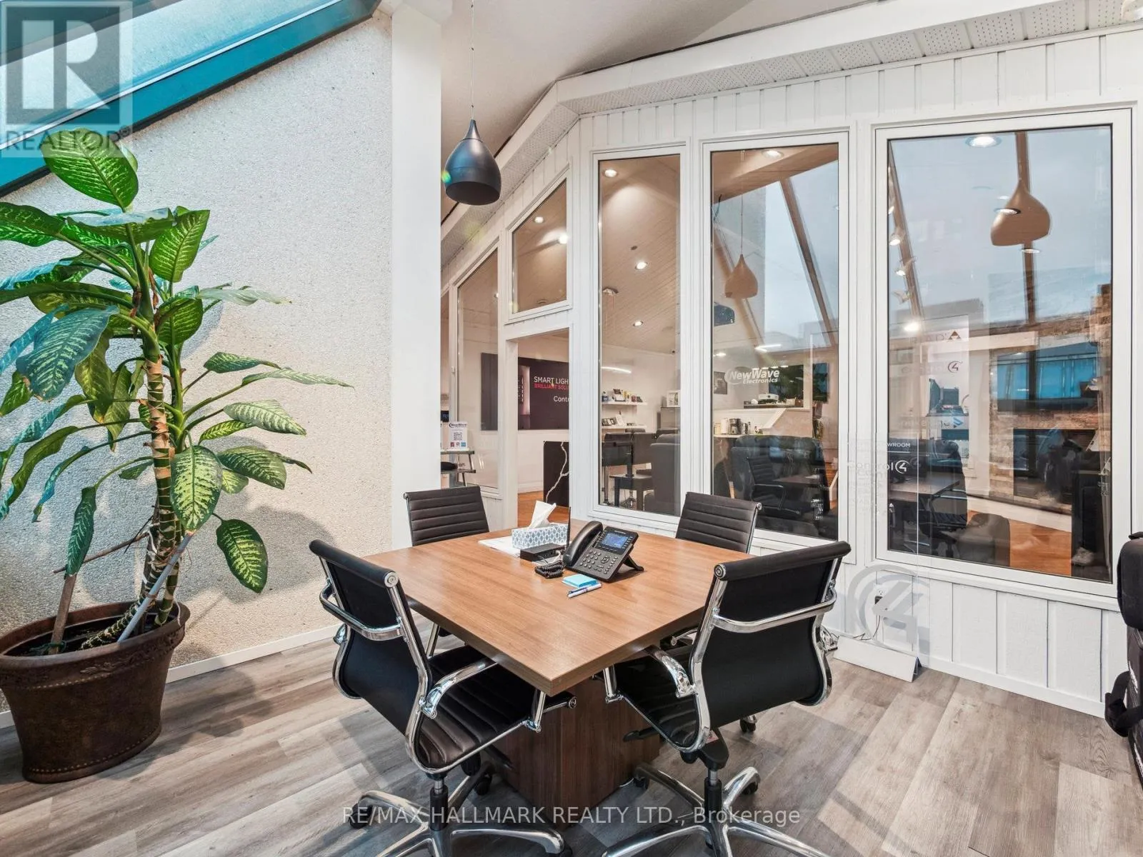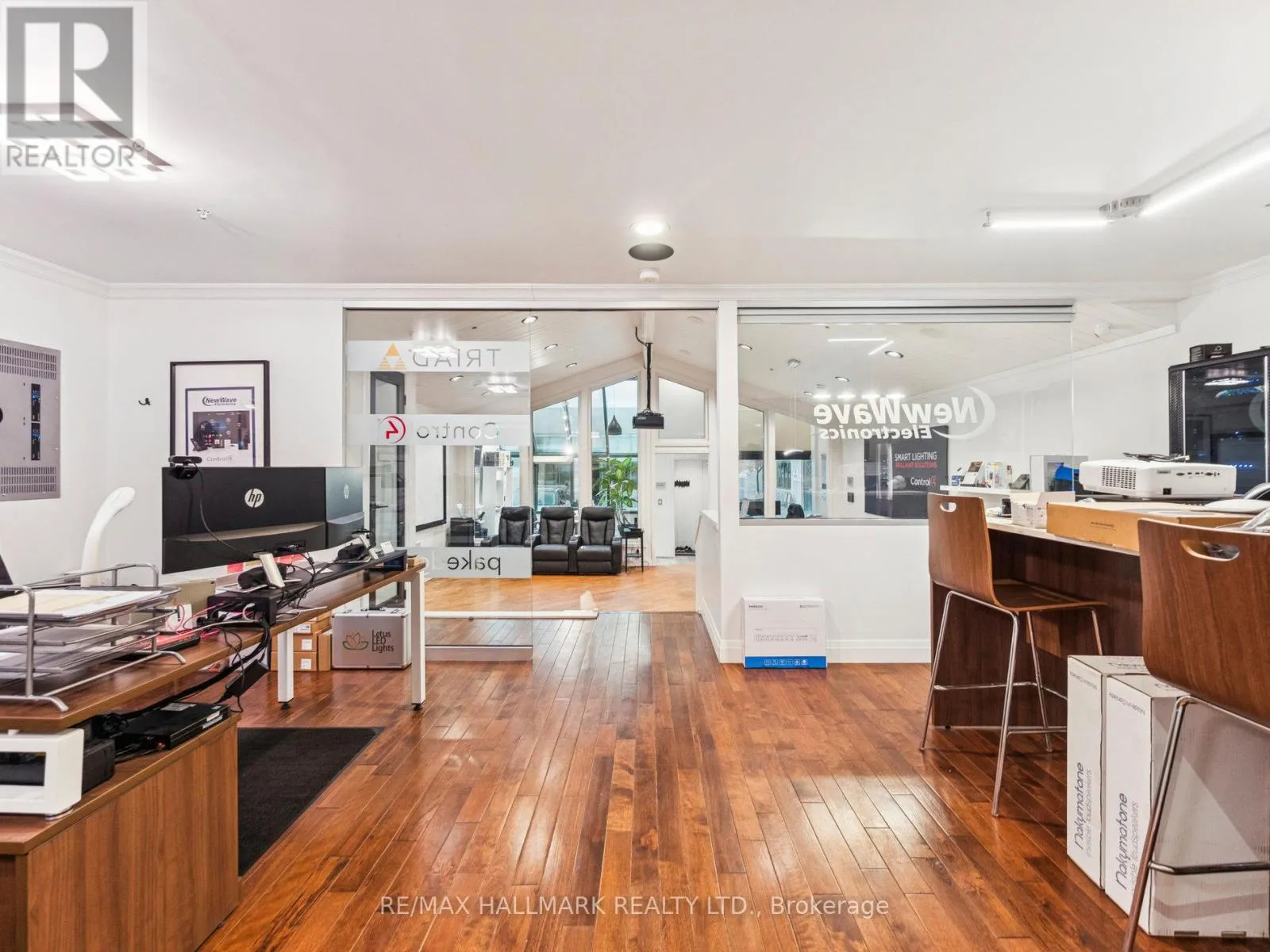 Cross Streets: HWY 7 & LESLIE. ** Directions: West Beaver Creek & HWY 7. Discover a rare opportunity to own a versatile industrial/office condominium in the heart of Richmond Hill's prestigious West Beaver Creek business district. This well-maintained unit at 175 West Beaver Creek Road offers 1,347 sq. ft. plus a 400 sq. ft. mezzanine, providing flexible space for a variety of business operations.The layout features a welcoming showroom, private offices, two washrooms, a kitchenette, and a gas fireplace that enhances comfort and character. A professional front entrance ensures a polished client experience, while the rear access facilitates efficient deliveries and shipping.Additional highlights include a dedicated parking space, ample visitor parking, and low maintenance fees. This prime location provides quick access to Highways 7, 404, 407, and 401, and is surrounded by restaurants, hotels, and major commercial amenities.Zoned to accommodate a wide range of professional, office, and light industrial uses, this property also includes an owned HVAC system and on-demand water heater for long-term value and reliability. (id:27476)