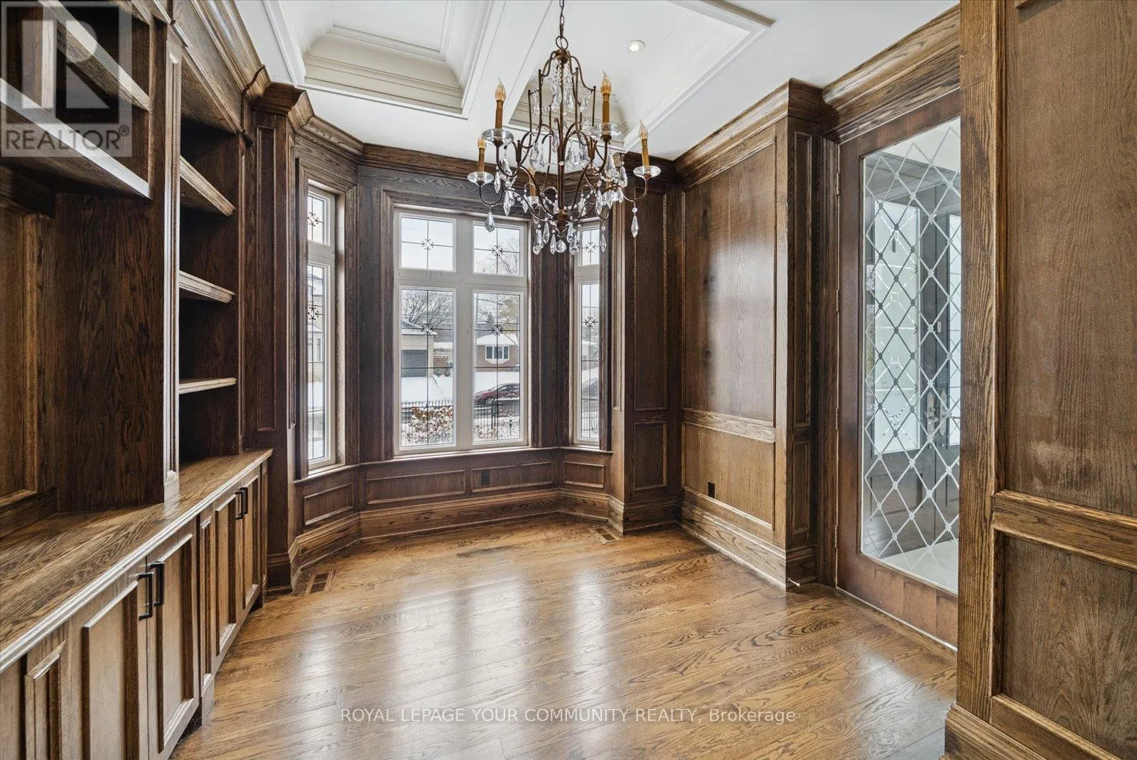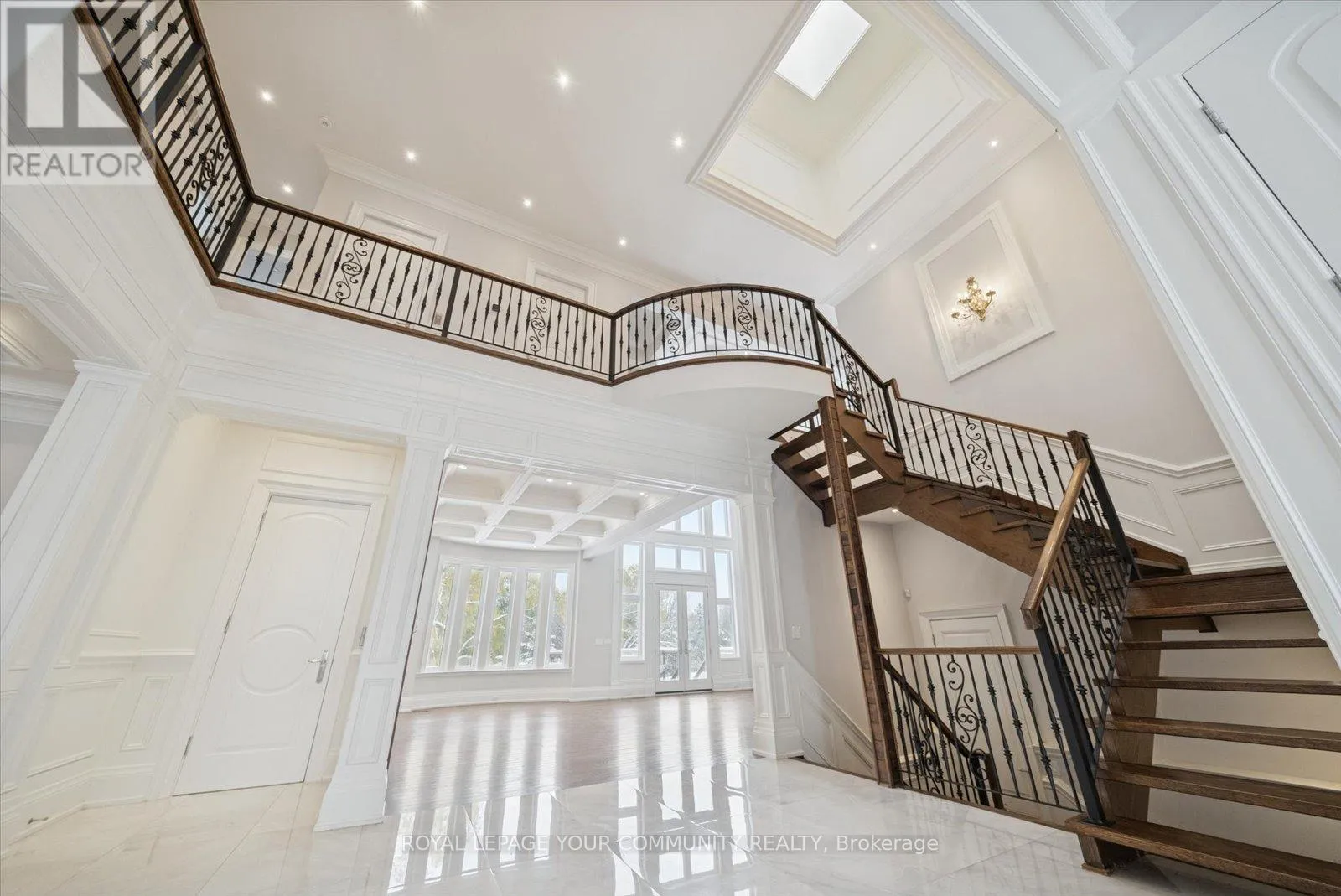 Yonge St / King Rd POWER OF SALE OPPORTUNITY!! Luxury redefined in prestigious Richmond Hill. Welcome to this custom-built masterpiece in Oak Ridges, designed for the discerning buyer seeking timeless elegance and modern sophistication. Boasting approximately 5,296 sq ft of above grade luxurious space, this home makes a grand first impression with its 22-ft soaring foyer crowned by a skylight. Wainscoting, waffle/coffered ceilings, and pot lights radiate throughout, adding architectural distinction. A private main-floor oak panelled office with a large window offers a quiet workspace. The combined living and dining room, complemented by wall sconces and an elegant electric fireplace sets the stage for entertaining and intimate family gatherings. The chef-inspired kitchen impresses with a large central island, dual sinks, luxurious quartz countertops, ample cabinetry and storage, and built-in high-end appliances. Flooded with natural light, it overlooks the family room with 22-ft ceilings, built-in shelving, and a modern fireplace-a perfect space for relaxing and entertaining. Step out to a large walkout deck with a gas line for BBQ, overlooking a private backyard oasis. An elevator offers convenient access to all levels. The upper-level features 4 spacious bedrooms, each with its own ensuite. The grand primary suite showcases a custom walk-in closet, panel wall, gas fireplace, private enclosed balcony, and a 7-pc spa-inspired ensuite with heated floors. Convenient second-floor laundry completes the level. The finished lower level offers a retreat with a kitchen, wet bar, wine cellar, electric fireplace, custom built-ins, speakers, a gym area, cold room, bedroom, and 3-pc bath. Step outside to your resort-style backyard, complete with an inground pool backing onto a ravine surrounded by mature trees-the ultimate private sanctuary for indoor-outdoor living. This extraordinary home offers unmatched luxury, craftsmanship, and location-crafted for those who demand the best. (id:27476)