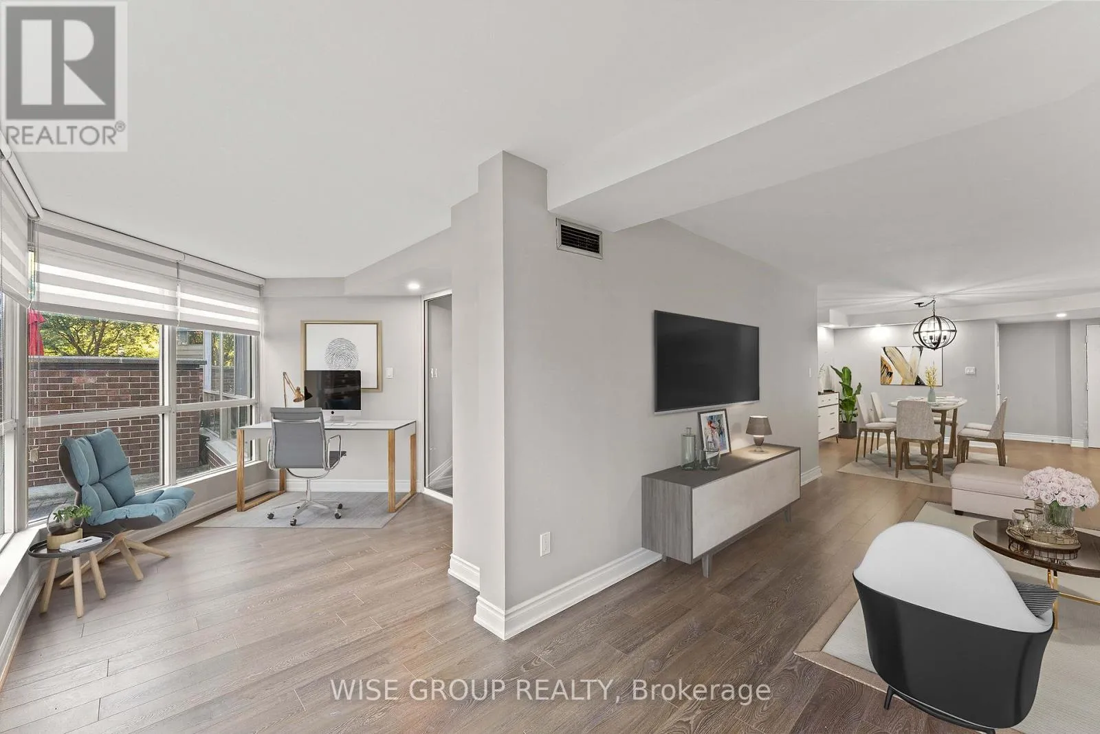 Cross Streets: Yonge / Weldrick Rd West. ** Directions: Yonge/ Weldrick Rd W. An excellent opportunity to begin homeownership or downsize in style and comfort! This spacious 2-bedroom suite offers a bright open-concept layout with a versatile solarium ideal for a home office or cozy reading nook. The primary bedroom features a double vanity ensuite and walk-in shower, while large windows and a walkout from the living room flood the space with natural light. Enjoy easy ground-level access with no elevators required and a generous private terrace perfect for entertaining or a small garden. Residents have access to Club 66 with premium amenities. Steps from Hillcrest Mall and just minutes to Highways 407, 400, and 404an unbeatable, convenient location close to transit, shops, and everyday essentials. (id:27476)