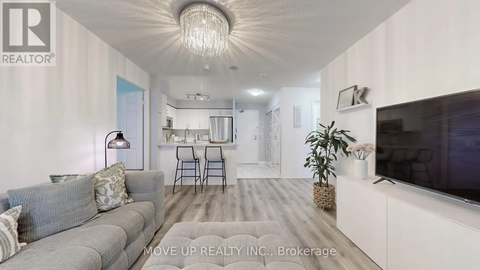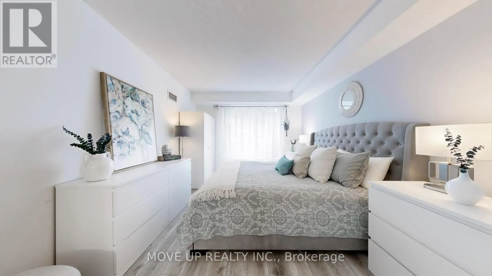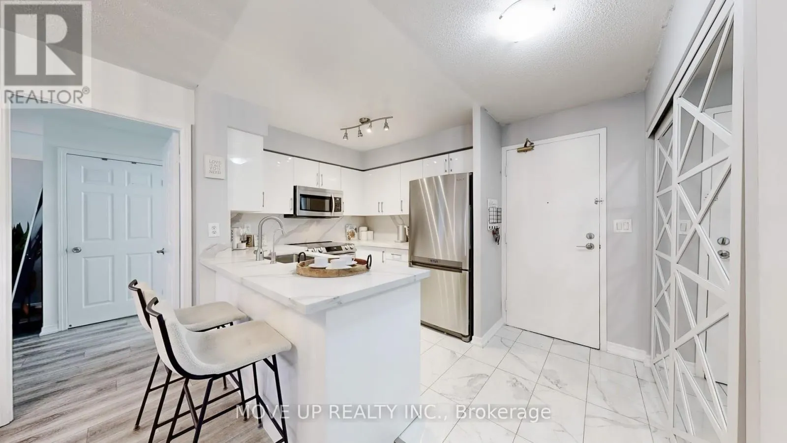 Yonge/Hwy 7 Bright and spacious hidden gem in the heart of Richmond Hill! Beautifully renovated 2-bedroom, 2-bath unit offers thoughtfully designed living space with a functional split-bedroom layout and a generously sized open-concept living & dining area. The property features a modern kitchen with plenty of storage, quartz counter & backsplash, high-end stainless-steel appliances, and a convenient breakfast bar. Stylish bathrooms, new flooring throughout, upgraded light fixtures, newer front-load washer/dryer. Elegant primary bedroom offers a serene escape, featuring a walk-in closet and a spa-inspired ensuite bathroom. Enjoy sunrise mornings and alfresco dining on a cozy balcony with a lush garden view. The unit comes with parking and a locker. Condo fee covers heat & water. Great location: walking distance to GO station, Viva, Parks, Schools, Restaurants, Medical, Banks, Hillcrest Mall, minutes to major highways 7, 404 & 407. Planned Subway Expansion. (id:27476)