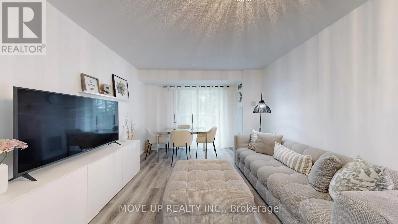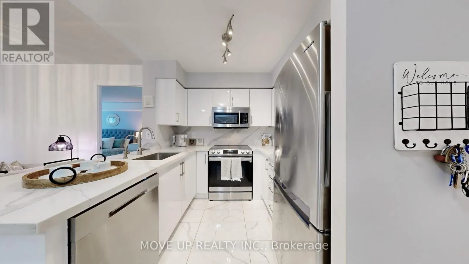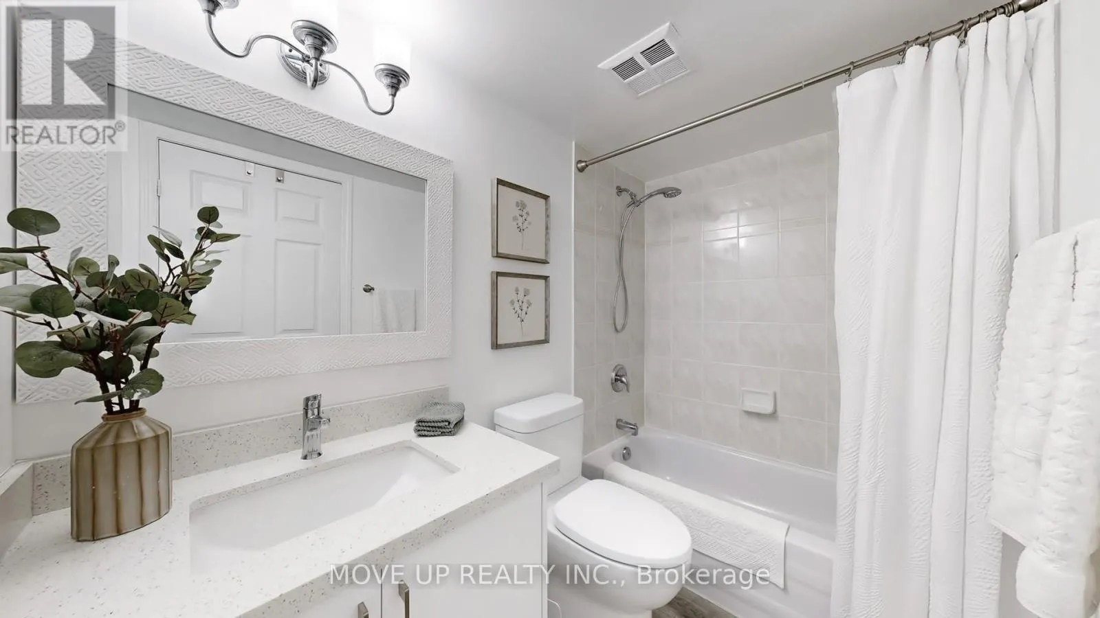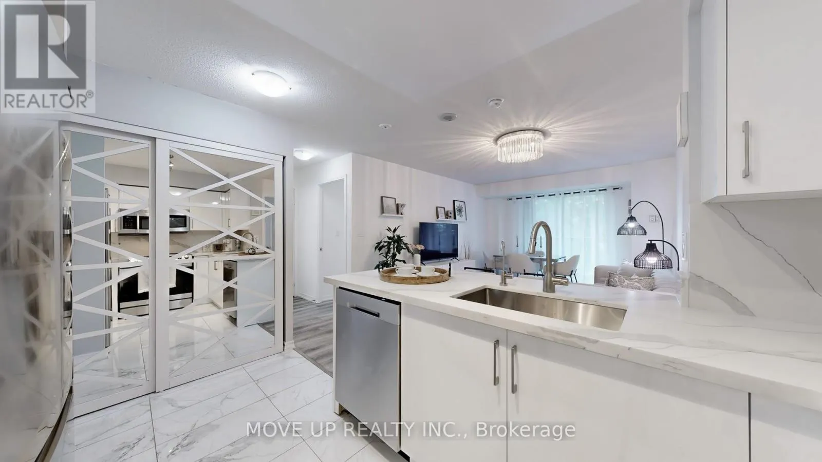 Yonge/Hwy 7 Bright and spacious hidden gem in the heart of Richmond Hill! Beautifully renovated 2-bedroom, 2-bath unit offers thoughtfully designed living space with a functional split-bedroom layout and a generously sized open-concept living & dining area. The property features a modern kitchen with plenty of storage, quartz counter & backsplash, high-end stainless-steel appliances, and a convenient breakfast bar. Stylish bathrooms, new flooring throughout, upgraded light fixtures, newer front-load washer/dryer. Elegant primary bedroom offers a serene escape, featuring a walk-in closet and a spa-inspired ensuite bathroom. Enjoy sunrise mornings and alfresco dining on a cozy balcony with a lush garden view. The unit comes with parking and a locker. Condo fee covers heat & water. Great location: walking distance to GO station, Viva, Parks, Schools, Restaurants, Medical, Banks, Hillcrest Mall, minutes to major highways 7, 404 & 407. Planned Subway Expansion. (id:27476)