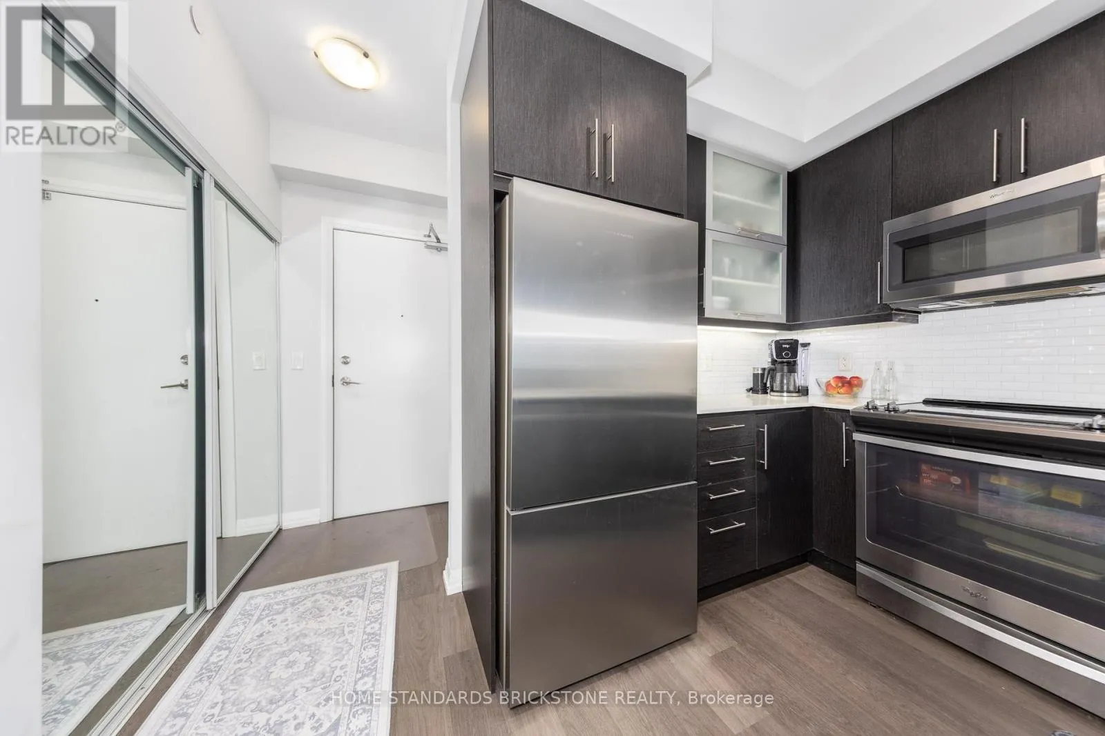 Cross Streets: Yonge/Highway 7. ** Directions: Lobby. Welcome to Sky City 2, located in the heart of Richmond Hill. This 2 Bedroom & 2 Full Bathroom Corner Suite offers a spacious Open Concept layout with a Clear North East Exposure. The Unit features Laminate Flooring throughout and 9 Ft Ceilings, highlighted by an Extra-Wide Living/Dining Room (almost 14 Feet) and expansive Floor to Ceiling Windows to allow plenty of Natural Light to come in. The Kitchen area is appointed with Quartz Counters & complimenting Tiled Backsplash equipped with Modern Appliances (Fisher & Paykel Fridge). Primary Bedroom features an Ensuite Bathroom, Walk-In Closet, and Separate Balcony. Building Amenities include a 24hr Concierge, Gym, Indoor Swimming Pool, Multimedia Theater, Separate Yoga/Pilates Area, Sauna, Guest Suites, and Rooftop Terrace. Location offers easy access to the Future TTC Yonge Line 1 Extension, Richmond Hill Centre Transit Hub (GO Train/Bus & VIVA), Highways 407/7, Hillcrest Mall, Shopping, Restaurants, and Big Box Retailers (Best Buy, Walmart, Home Depot). 1 Parking and 1 Locker included (id:27476)