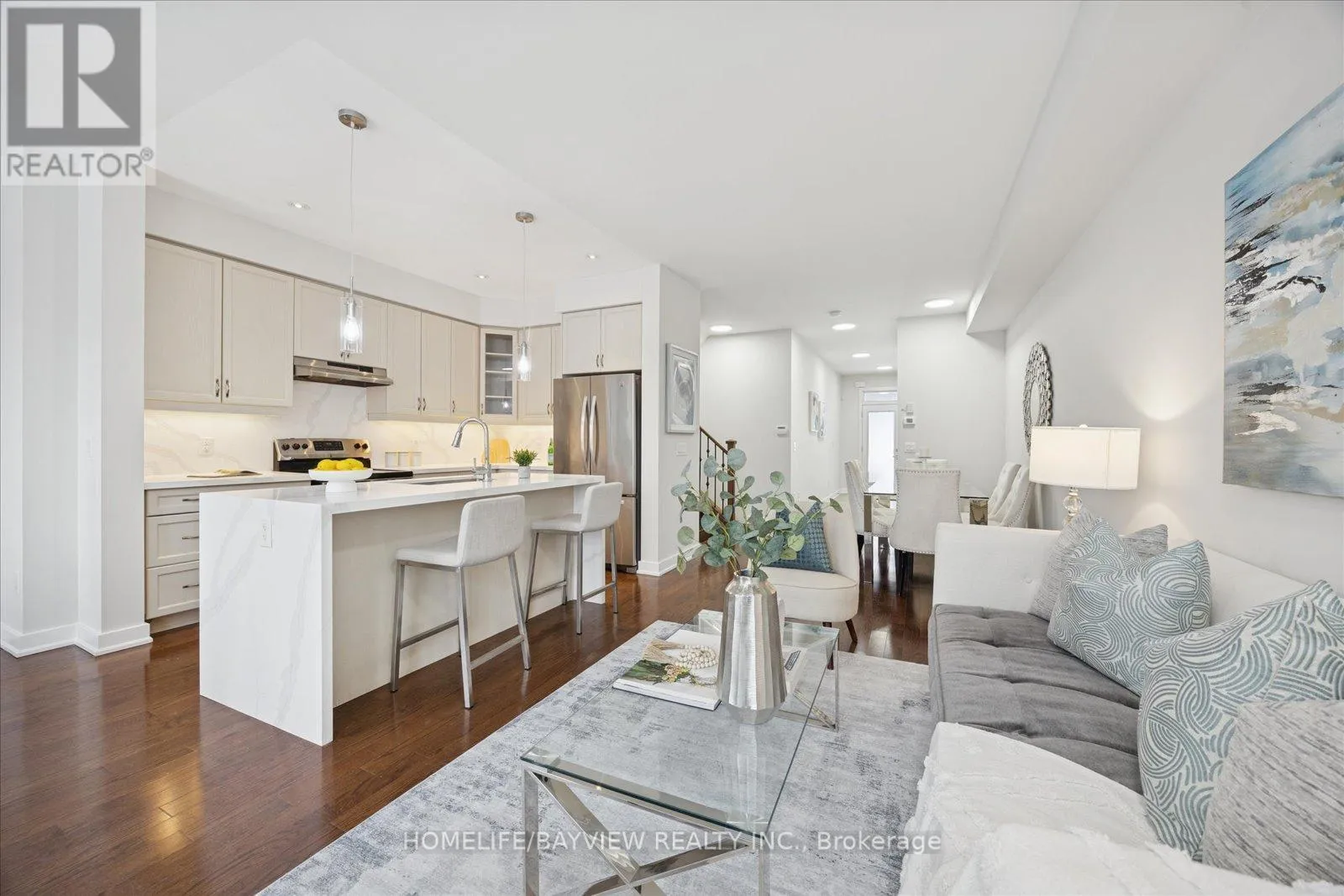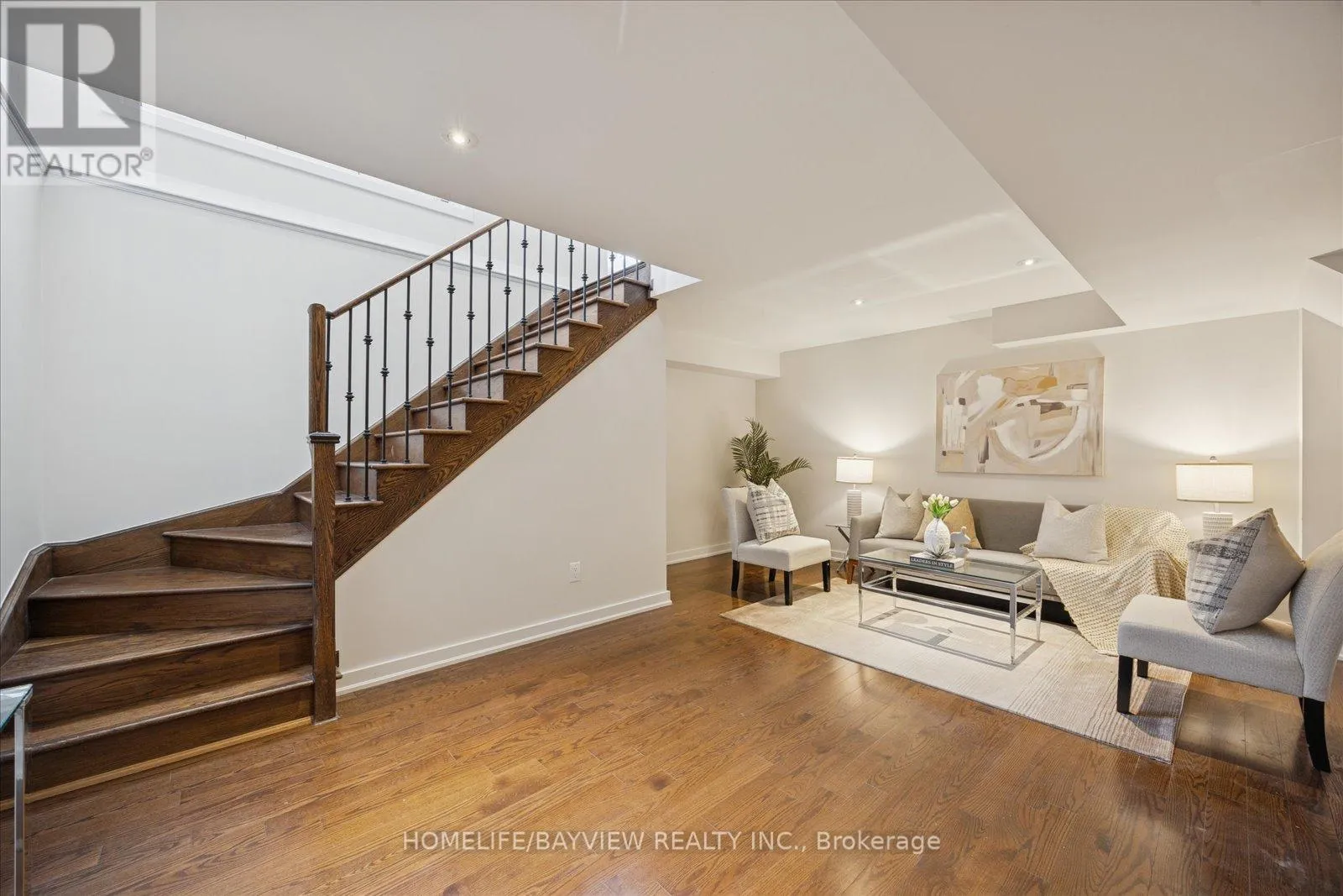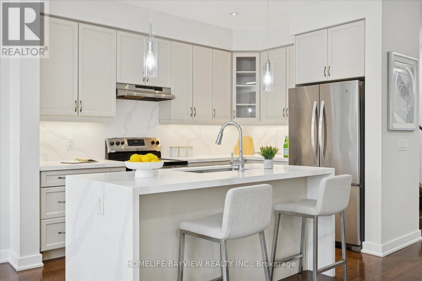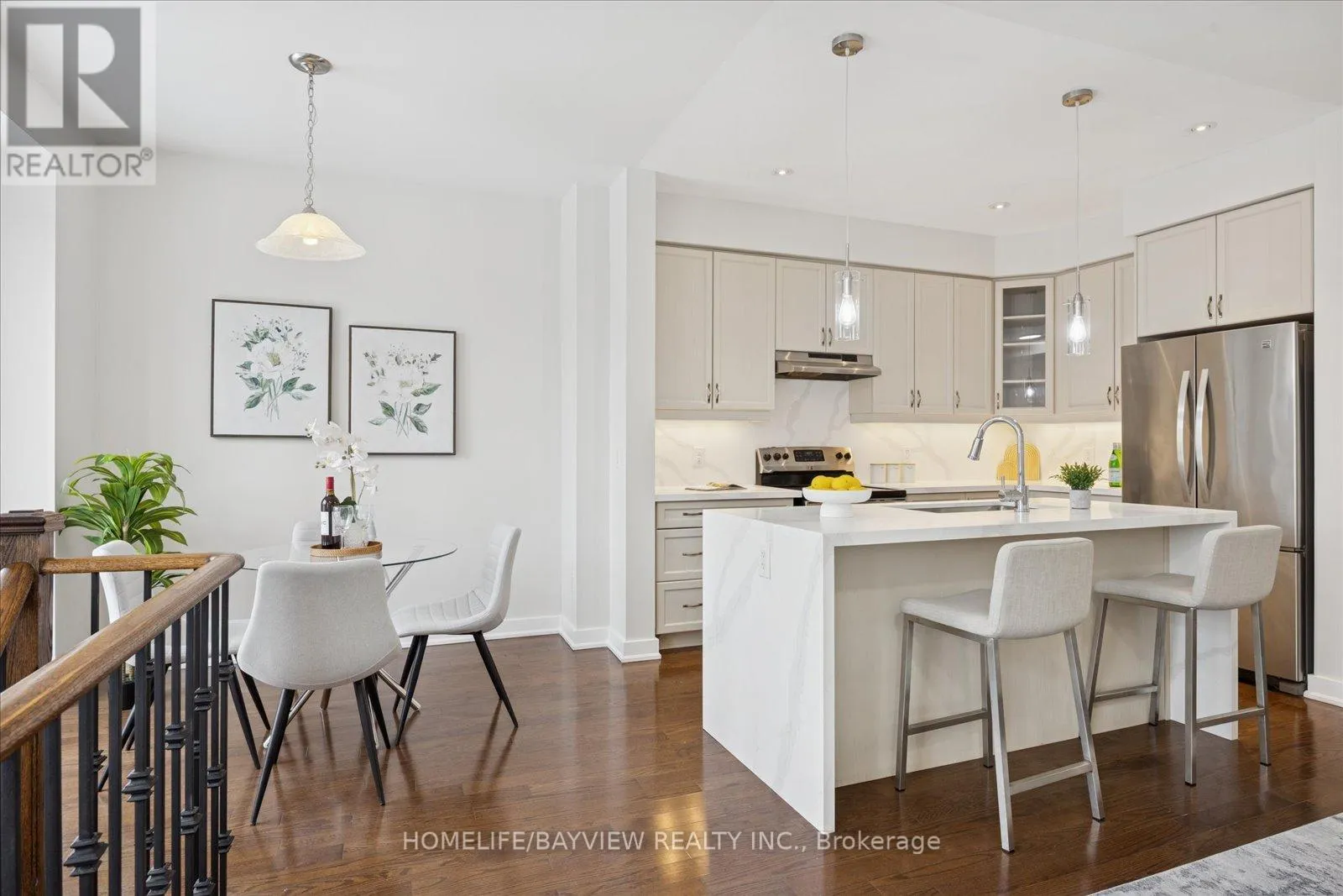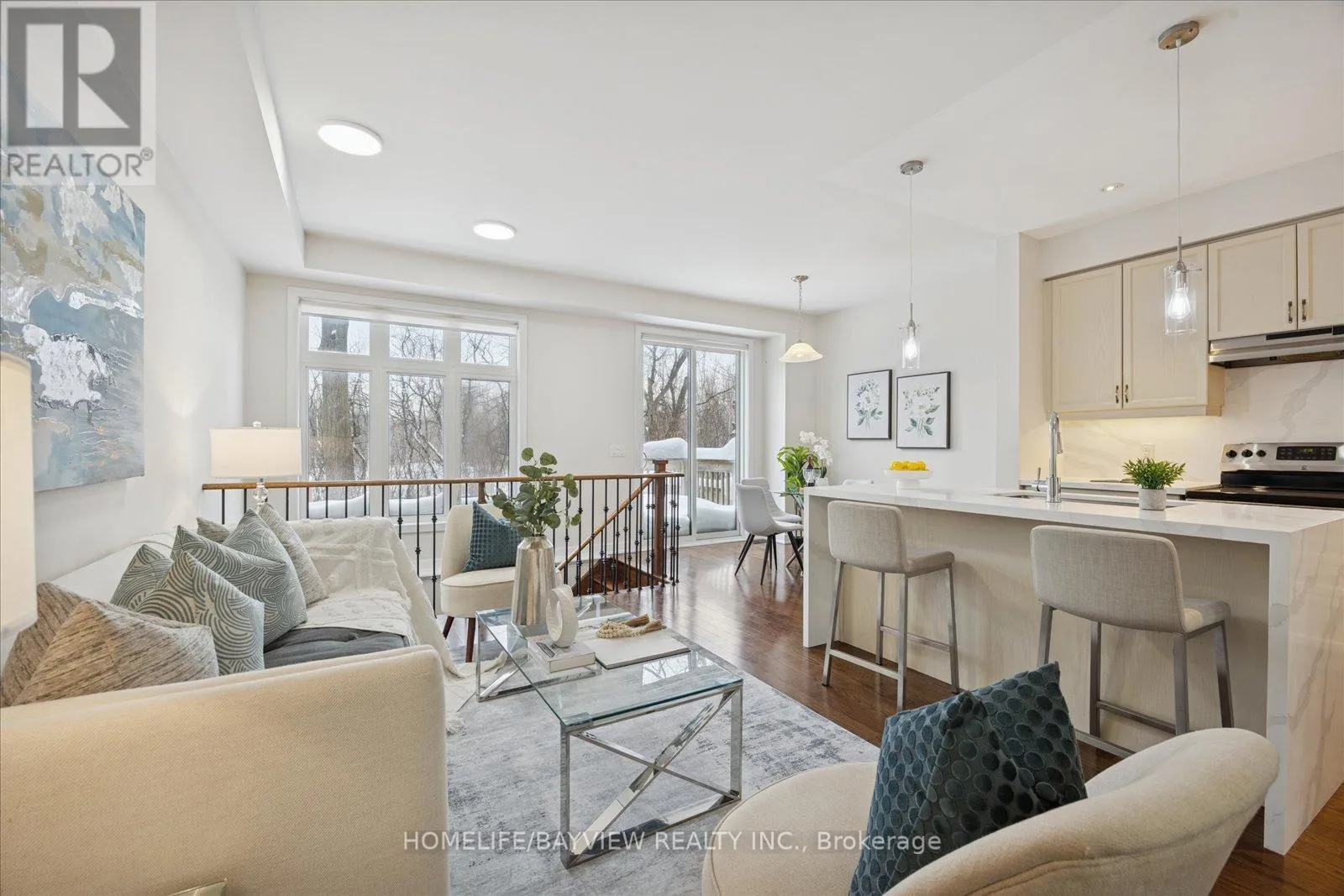 Cross Streets: Bayview and Dariole Dr. ** Directions: google maps. Beautifully Designed Contemporary 3 Bdrm + Den T/House Nestled On A Premium Ravine Lot Within the Kettle Lakes Club Community. This Freshly Painted Aspen Ridge Model Is One Of The Most Desirable Plans Offering 2066 Sqft of Living Space & Modern Finishes Throughout. Features Include: A Double-Door Entry, Interior Garage Access, Smooth Ceilings Thru-out, Dark-Stained Hardwood Floors Paired With A Stylish Wrought Iron Staircase. Enjoy A Second-Story Balcony, Spacious Bedrms W/New Laminate Flooring & A Convenient 2nd-Floor Laundry Room. The Open Concept Layout Highlights A Modern Chef's Kit W /Center Island / Undermounted Sink, Pot Drawers, New Quartz Counters & S/s App- Perfect for Hosting Large Family Gatherings! Retreat and Unwind in the Primary Suite Complete With A Spa-Like Ensuite and Surrounding Serene Views! The Finished Lower Level Provides A Spacious Family Room With Flexible Space to Customize. Step Out Onto The W/O Deck Where You Can Enjoy The Tranquil Ravine Views, Plus Access To Walking Trails, Oak Ridges Rec Center, Parks & Nearby Lake Wilcox. A Vibrant Community Ideally Located Near Schools, Daycares, Shops, Transit, The GO Train, and Hwy 404 For Effortless Commuting! (id:27476)
