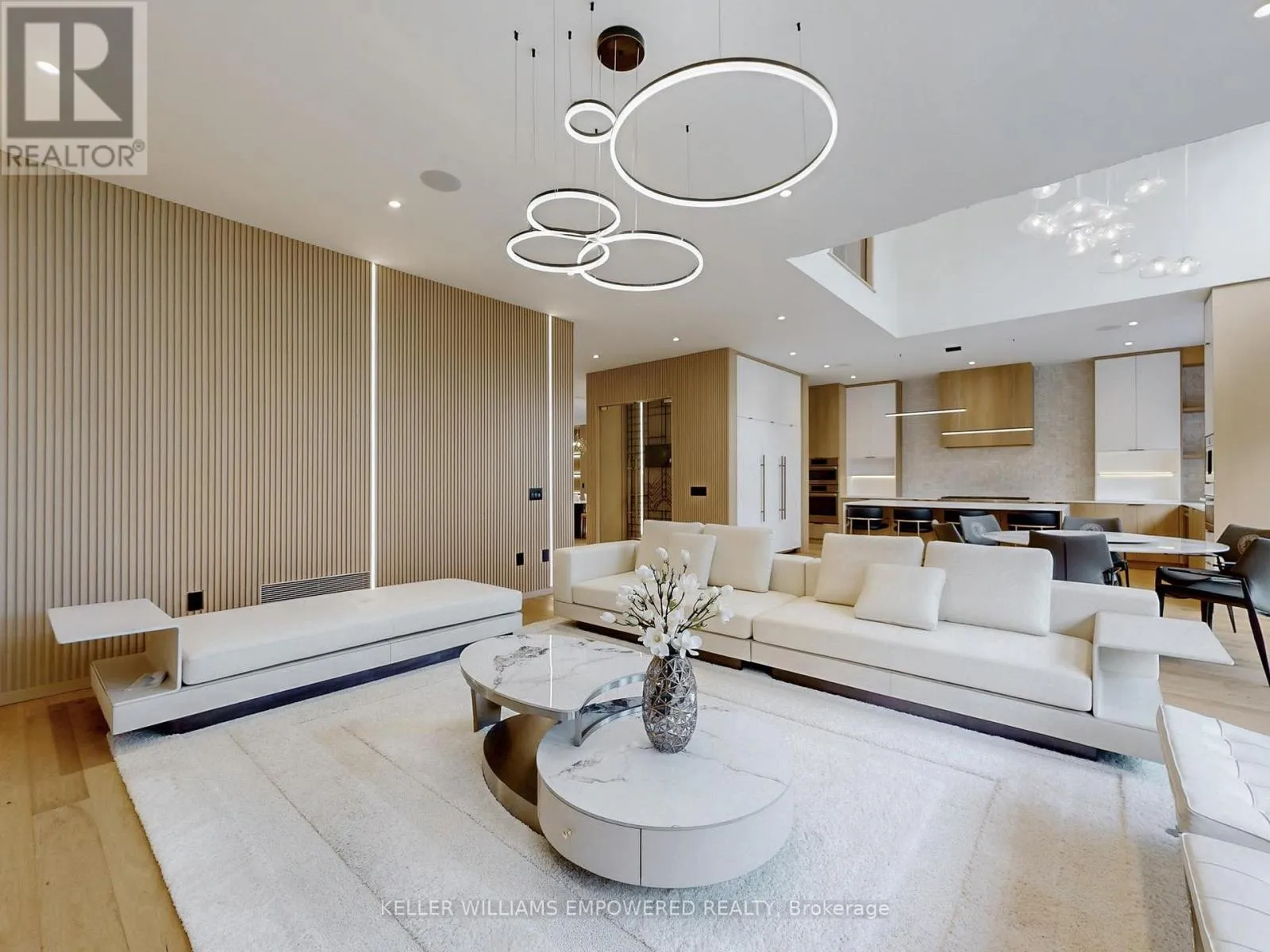 Cross Streets: Snively St / Glenmore Ave. ** Directions: West of Bayview Ave and South of Bloomington Rd. Southern facing rear grounds backing to City owned property with front yard facing toward natural pond creates scenic natural views from every angle! Rear grounds curated for seamless indoor and outdoor living with ease, boasting Armour rock, concrete slab walkway, upper & lower entertainment areas, access to main level plus lower level, and space for a pool & cabana should your heart desire. Designed to blend classic chateaux of Bordeaux elegance and modern architecture. Floor to ceiling tile mosaics, flat and fluted floor to ceiling paneled walls with LED channel lighting and window walls ushering natural light into your living space. Comfort and sophistication intertwine with open concept living, sensor-activated cabinets, in-fridge cameras, butler's pantry, HiFi speaker system with high-fidelity music at your command and customized architectural light fixtures. Two dedicated office spaces for the modern family. Two laundry rooms. Primary bedroom resort like retreat presents a ensuite bath overlooking ravine with glass enclosed shower. All 2nd floor baths w/ heated floors. Lower level with impressive wet bar area for entertainment, 7.2 THX certified sound system to your soundproofed theater turns movie night into an experience, professionally designed dry sauna, exercise room plus additional sleeping quarters. Triple car garage with soaring ceilings provide clearance for a lift if needed. Commercial grade WiFi access point to each floor & backyard, built-in home automation control stations to control security, appliances etc. spray foam insulated basement, rough-in for dual functional solar system to support electricity generation & off-peak energy storage, centralized humidifier and dehumidifier, EV charger rough-in, & eco-conscious grass pavers. Nearby golf courses, amenities of Richmond Hill, Aurora, Newmarket, King City and Stouffville. Short drive to SAC, SAS, HTS, Pickering College, CDS, and Villanova College. Video and audio may be on during viewings. (id:27476)