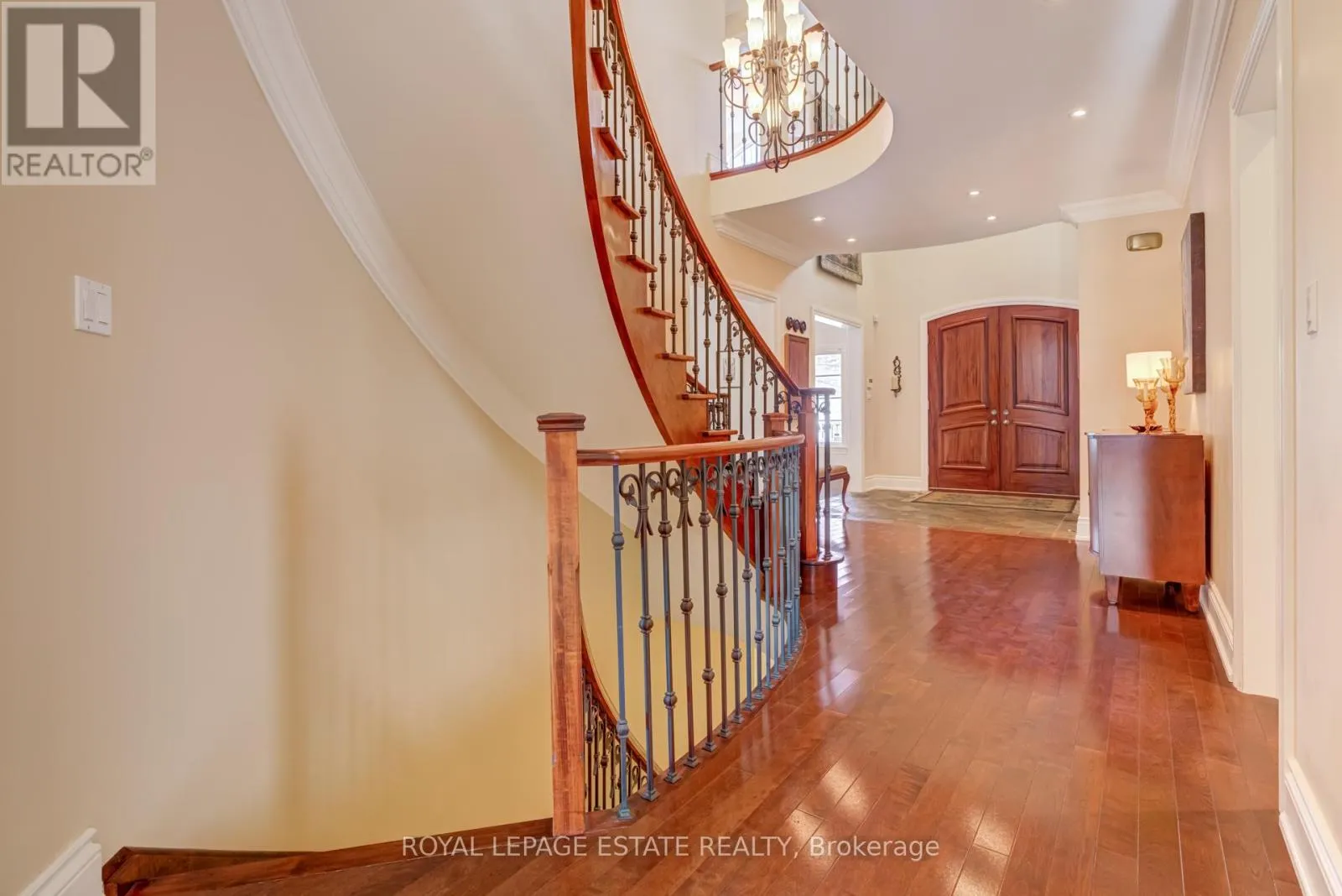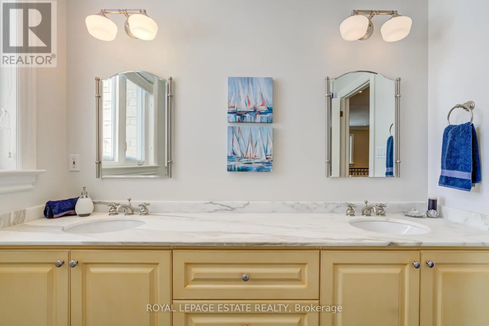 Cross Streets: Yonge and Canyon Hill. ** Directions: Yonge St to Canyon Hill Ave. Take Canyon Hill to Leyburn Ave and turn right and then left on to Naughton Drive to 81. Tuscan inspired custom built home (2003) blending Old World warmth with modern convenience. This 4 bed 4 bath residence sits on a private, professionally landscaped lot & includes a rare detached workshop - a mechanic's dream. Enter through solid maple front doors into a grand foyer with open ceilings & slate flooring. Solid maple hardwood on main & 2nd floor, 9' ceilings throughout, crown moulding & flat ceilings (incl basement) create cohesive elegance. The maple staircase feat wrought-iron pickets with wooden railing. Sunken family room flooded with natural light centers on a double-sided gas fireplace shared with the gourmet kitchen. Vaulted ceilings in the family room & primary ensuite amplify space. Chef's kitchen with granite countertops, Franke undermount sinks, G.E. 6-burner gas stove, Miele DW & a one-year-old G.E. French door fridge. Central vacuum with kitchen sweep inlet, abundant cabinetry & pantry storage. Spacious primary with private balcony, California Closets walk-in & vaulted 5-piece ensuite. Main 5-piece bathroom features a Palladian window. Bedrooms equipped with closet organizers. Second-floor laundry with floor drain & Maytag washer/dryer (2 years old) Finished basement with insulated porcelain floors in rec room, 9'10" ceilings, oversized gas fireplace with barn-board mantle, wet bar with quartz countertops & two cold rooms (one roughed in for a wine cellar). Exterior clad in Wiarton natural stone. Window glass replaced in 2018. Professionally landscaped with mature trees, Hunter Pro C irrigation, custom landscape & soffit lighting on timer & a classic fountain. Digital Watchdog security cameras front & back. Approximately 8-10 parking spaces & a private backyard. Drive-through main garage provides access to detached workshop equipped with hydraulic car lift, heat, A/C, hot water, washup sink & urinal - ideal for serious hobbyists or professionals. Located in St.Teresa of Lisieux CHS catchment, Ontario's No.1 ranked HS. (id:27476)