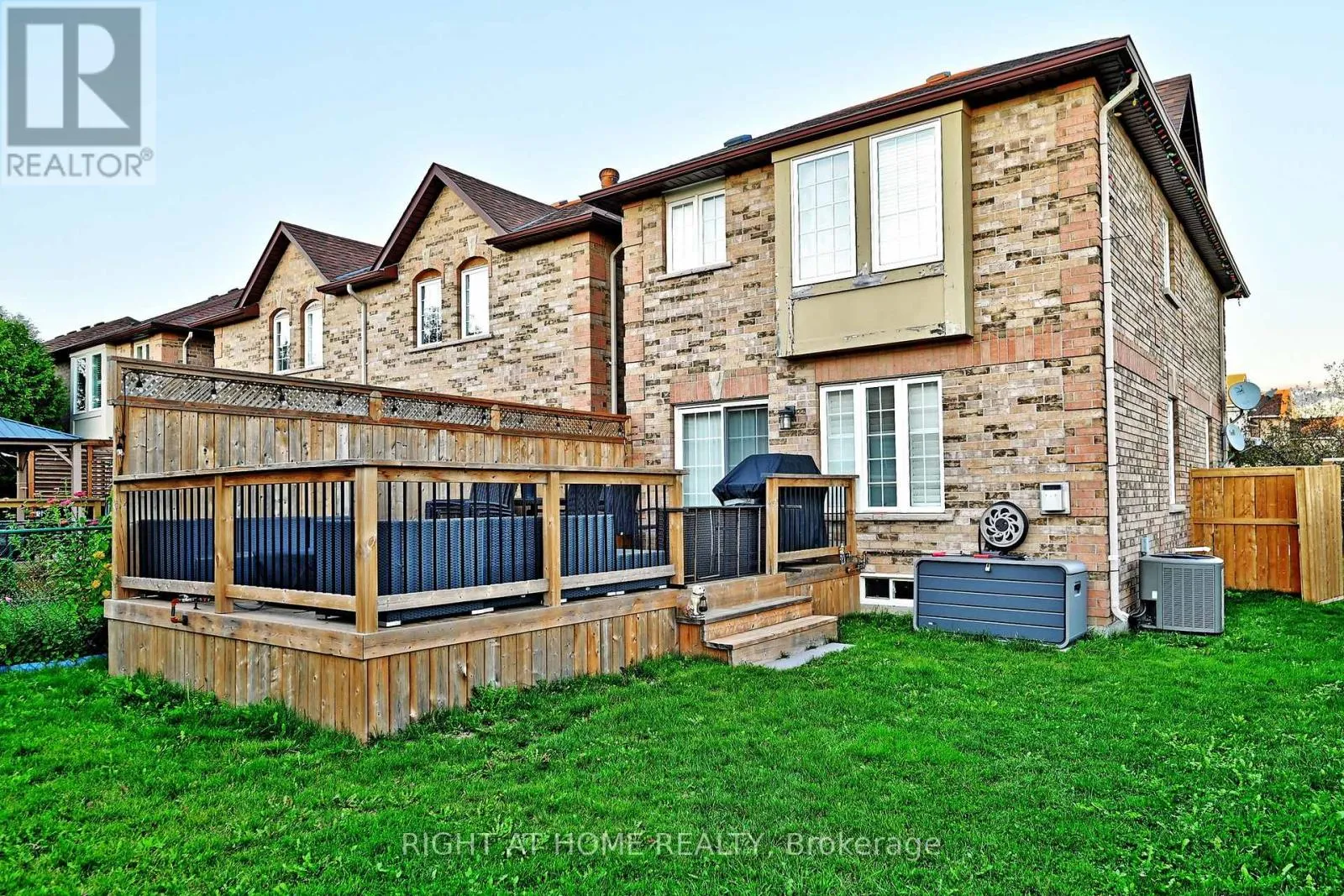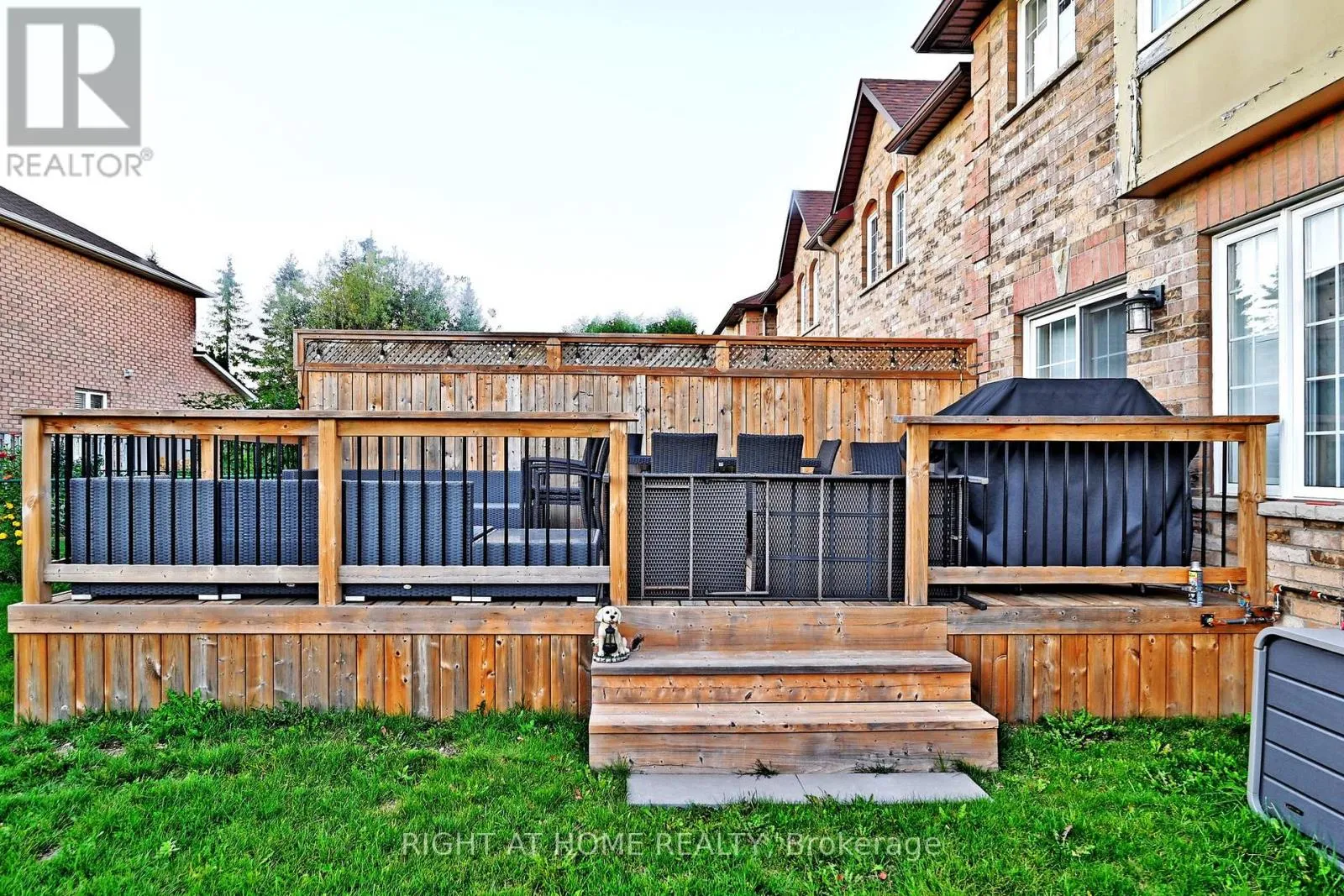 Bloomington/Bathurst Step into this stunning end-unit townhomebeautifully maintained and thoughtfully upgraded throughout! It is like semi-detached house. Located in the desirable Humberlands neighbourhood, this sun-filled home boasts a modern newer kitchen with ample cupboard space, brand new dishwasher, oven, and fridge, plus stylish updates including new flooring on the main level, a freshly stained oak staircase, and a completely renovated main-floor powder room.Enjoy the spacious layout featuring generously sized bedrooms, a bright and airy ambiance with plenty of natural light, and elegant strip hardwood & ceramic flooring on the main floor. The double door entry welcomes you into a space that truly shows pride of ownership.Step outside into your private, professionally landscaped yard, complete with a new 12x12 ft deck, ideal for entertaining, and a new fence on the left side for added privacy. Additional major upgrades include a new roof, new air conditioning system, and morejust move in and enjoy! (id:27476)