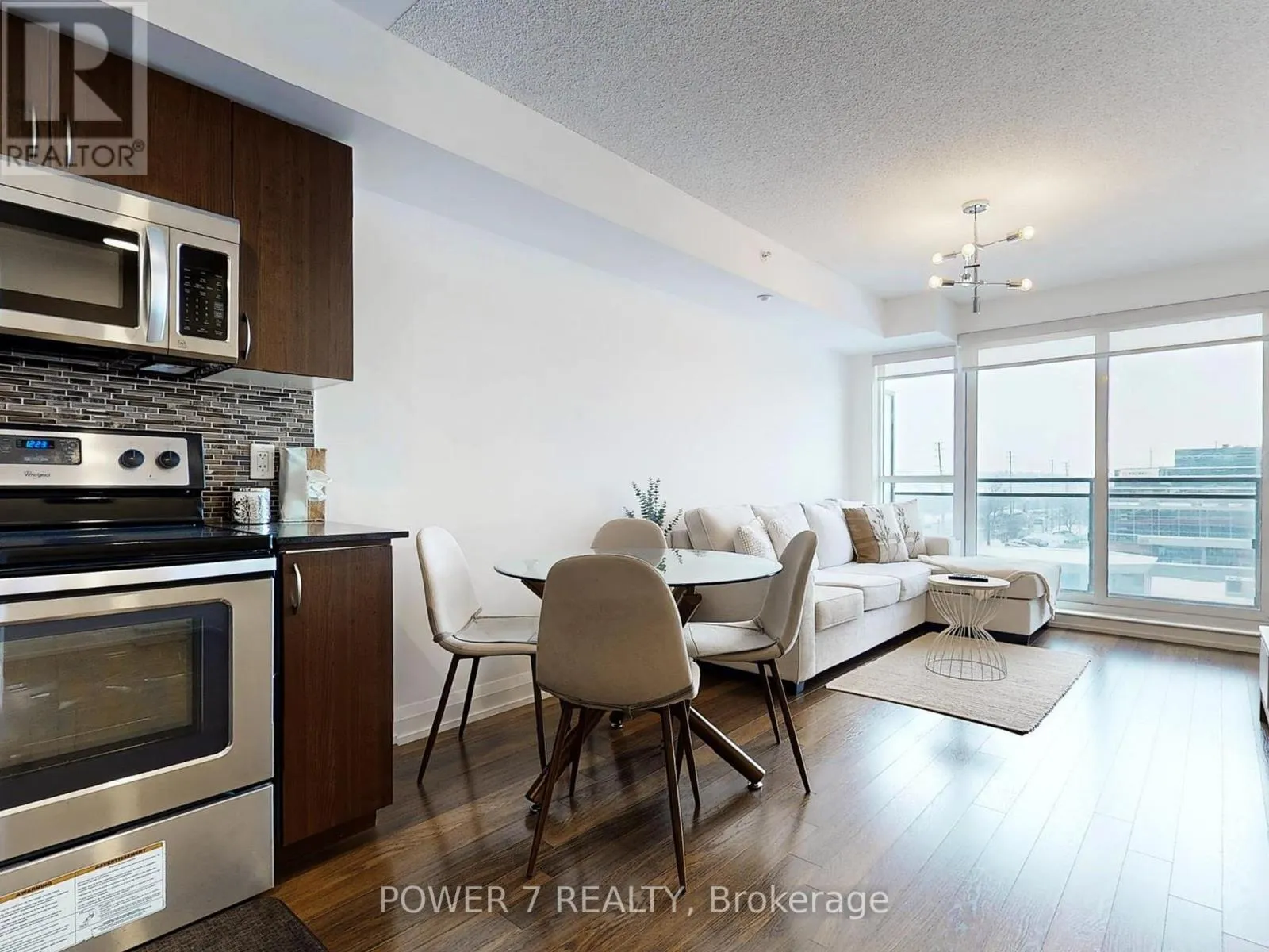 Bayview / HWY 7 Step into a sun-filled sanctuary defined by its airy 9-foot ceilings and open, flowing layout. The generous living and dining room is the heart of the home, extending seamlessly to a west exposure balcony for fresh air and an unobstruced views. Cook and connect in the stylish open-concept kitchen, complete with contemporary stainless steel appliances. Discover added versatility in the comfortable den-an ideal space for a home office, library, or convertible second bedroom. Practicality meets convenience with a full 4-piece bathroom, in-suite laundry, and your own underground parking spot. Embrace a lifestyle of ease, located within walking distance of all your daily needs, vibrant restaurants, and green space at the nearby park. (id:27476)