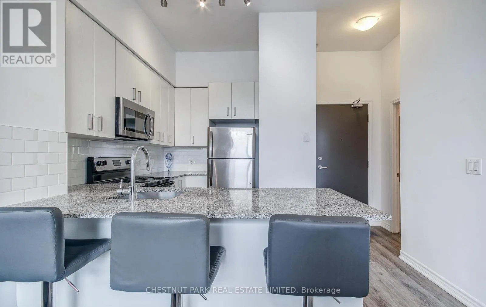 Cross Streets: 19th Ave / Gamble Rd. ** Directions: North of Elgin Mills. Client RemarksBright And Airy 1 Bedroom Condo With Private Terrace, Owned Parking And Locker! Step Into This Main Floor Gem At The Bristol Condos. With 10 Foot Ceilings And A Loft-Style Feel, This Spacious Suite Is Perfect For First Time Buyers, Downsizers Or Professionals Looking For Comfort And Style. Entertain Or Relax Outdoors On Your Large Private Terrace, Ideal For Morning Coffee, Evening Drinks Or Weekend Gatherings. Modern Interior Features Laminate Flooring Throughout, Breakfast Bar, Granite Counter Tops And Stainless Steel Appliances. Owned Parking And Locker Included For Convenience And Storage. Building Amenities Include Rooftop Patio With West Facing Views, Gym, Party Room, All Just Steps From Your Door. Prime location, Walk To Public Transit, Shopping And All The Best Of Richmond Hill. A Perfect Combination Of Functionality, Style And Lifestyle. Dont Miss This Rare Ground Floor Suite! (id:27476)