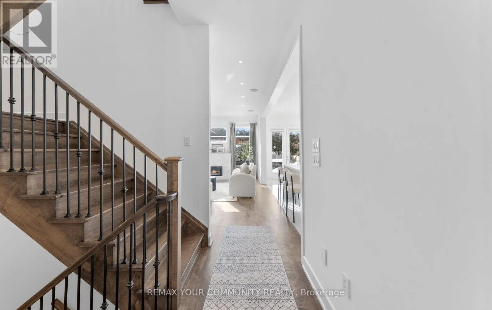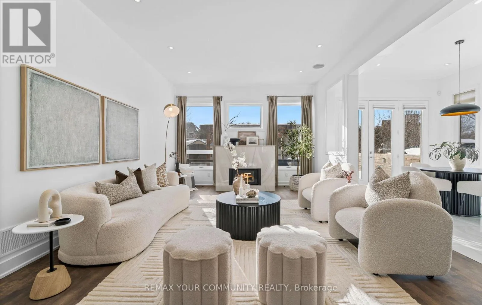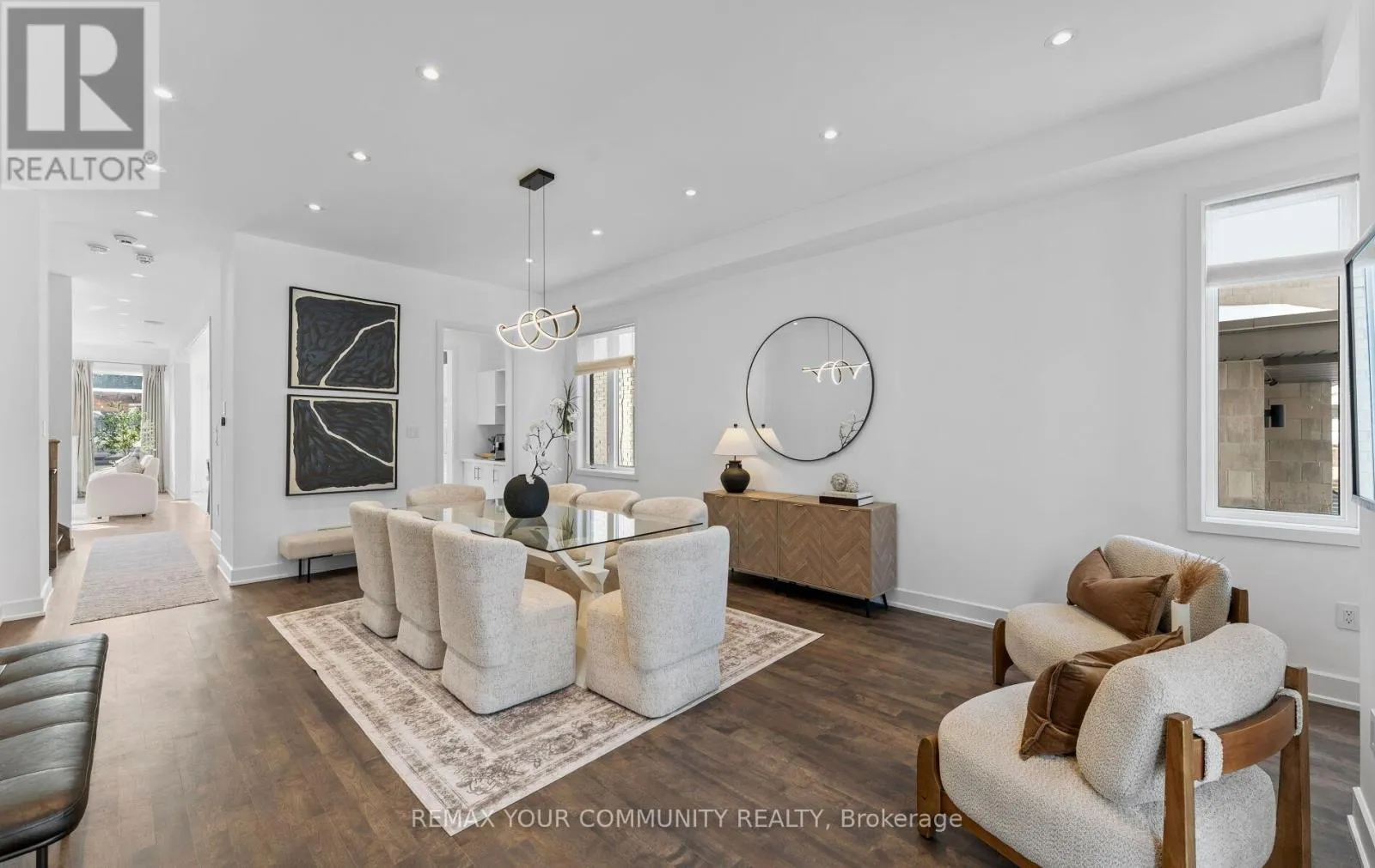 Bathurst & King Rd Experience modern sophistication in this architectural gem located at 10 Kent Matthew. Luxurious 3650 square feet + finished walk up basement offers endless opportunities for an expanded family oriented lifestyle. An airy, open concept design boasts soaring 10 ft ceilings and expansive windows showcasing modern craftsmanship & contemporary lines. At its heart, the kitchen is equipped with premium Miele & Subzero appliances, sleek cabinetry, Island with waterfall Quartz & a separate functional servery with walk-in pantry. The sun filled breakfast room with South/West views steps out to a large entertainer's stone patio complete with Pergola and relaxing spa hot tub. Spacious family rm with gas fireplace + main floor separate library. Combined living/dining area is perfect for large family gatherings or grand entertaining. Step inside the primary retreat featuring a double sided fireplace overlooking a spa inspired ensuite & a large his & her dressing rooms. 3 additional generous bedrooms each serviced with ensuite baths & a 2nd floor laundry. Coveted walk up basement features 8' 8" ceilings, rec rm with roughed in bar/kitchen, games & exercise area, 5th bdrm & 3pc bath offer a versatile footprint for a growing family & separate Nanny/Granny suite. (id:27476)