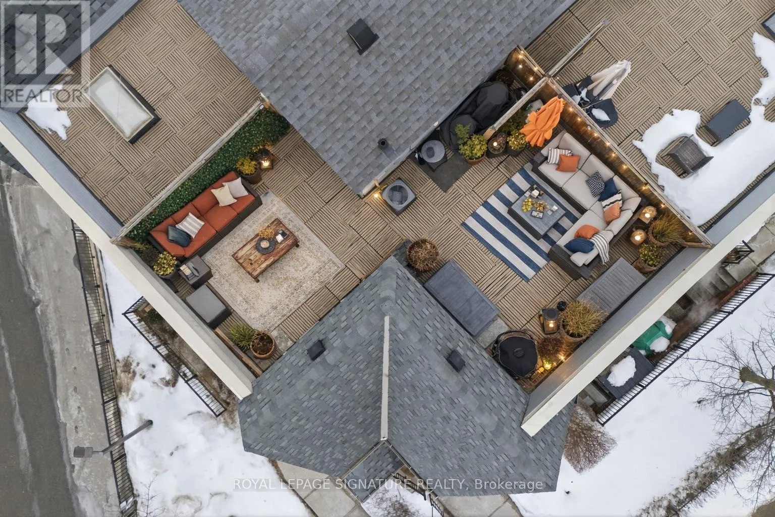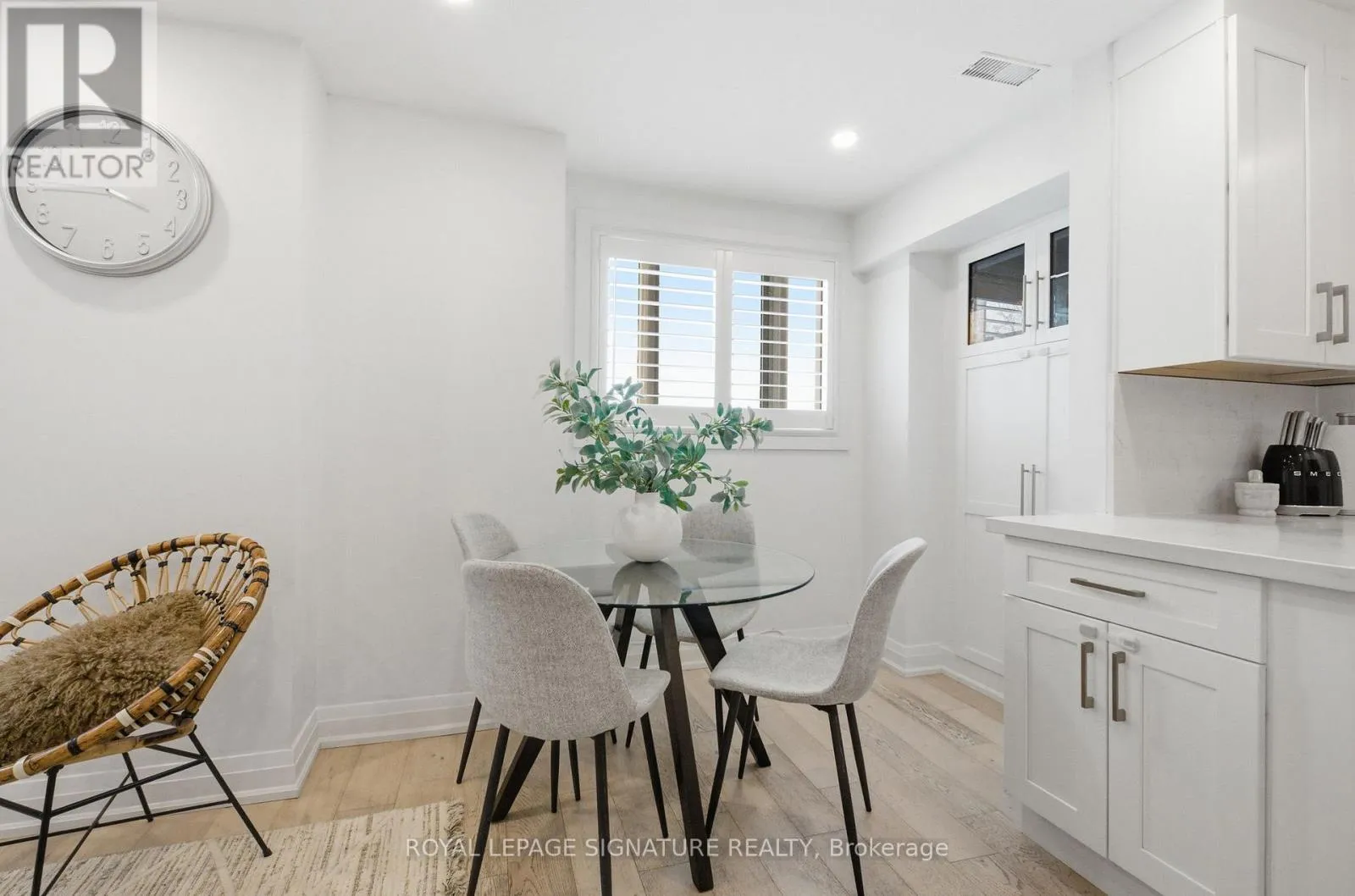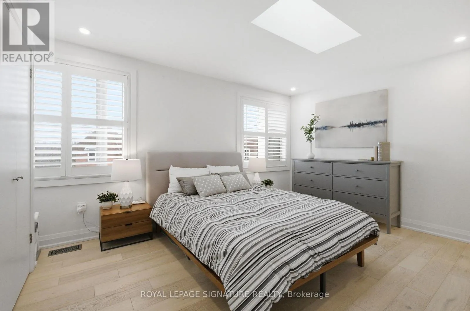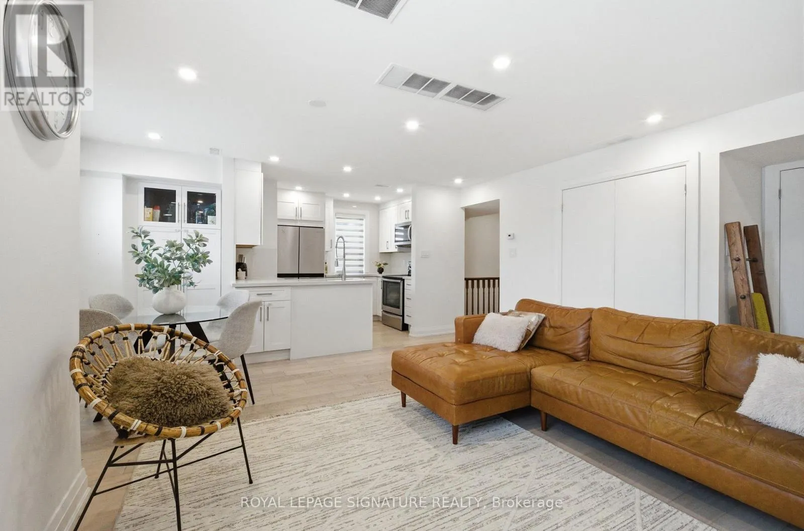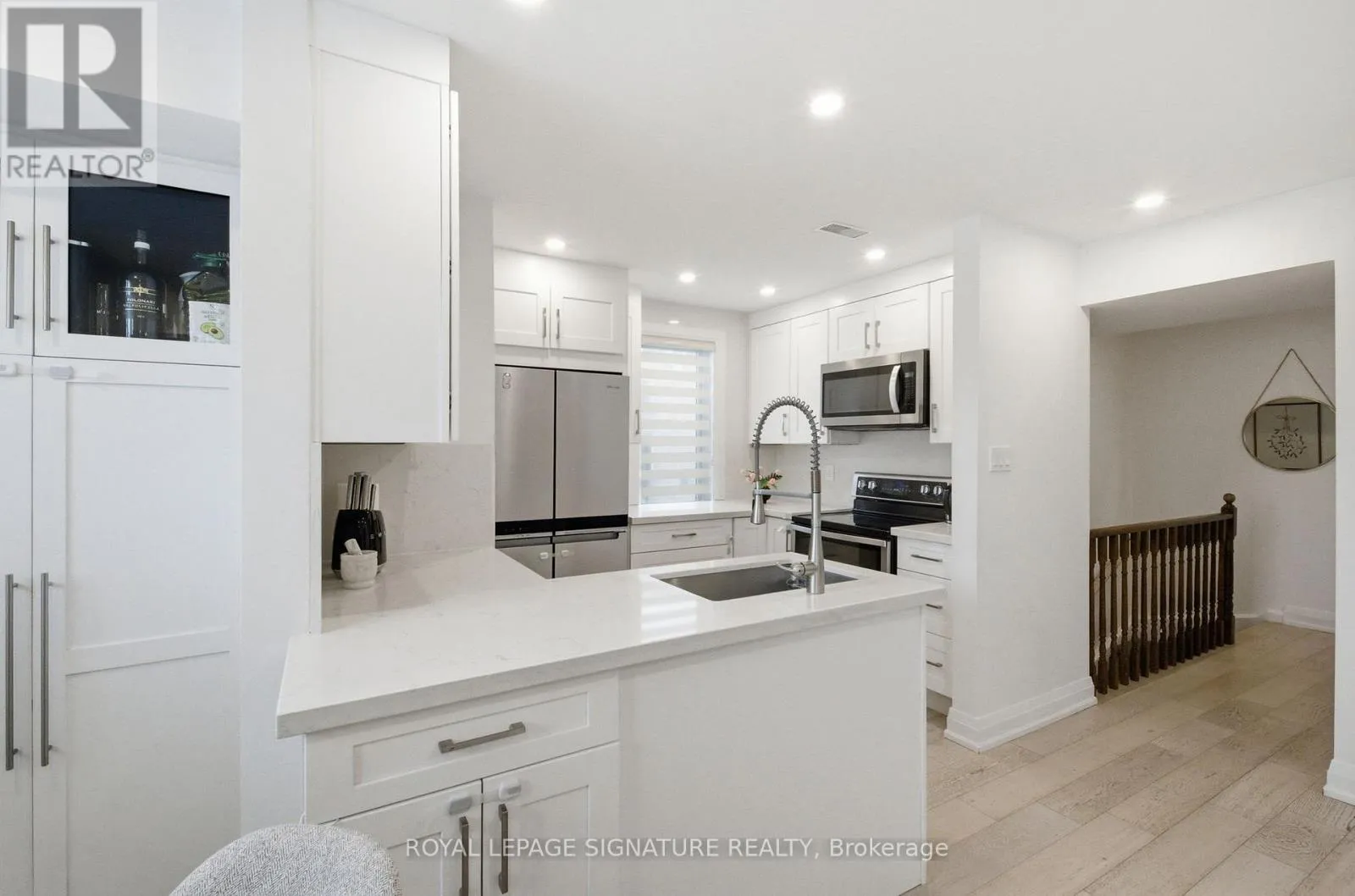 Church and Weldrick One of the larger end-unit townhomes in the community, offering an exceptional layout and an expansive rooftop terrace. This beautifully updated 3-bedroom, 3-bathroom home features a bright open-concept floor plan with no wasted space and spacious principal rooms designed for comfortable everyday living and effortless entertaining.The main level showcases a beautifully updated kitchen with quartz countertops, and thanks to its corner-unit position, the kitchen enjoys wonderful natural sunlight throughout the day. The space opens seamlessly into the living and dining areas, creating an ideal layout for botheveryday living and entertaining. Pot lights throughout the space adds a clean, modern touch and enhance the bright, airy feel of the home.Upstairs, you will find three generous bedrooms including a primary retreat with a skylight that brings in beautiful natural light. The standout feature of this home is the oversized private corner rooftop terrace, perfect for summer BBQs, family dinners, entertaining friends, or simply relaxing outdoors in your own private space. Situated on a premium corner position within this well planned community, the home is surrounded by parks and green space and is just steps to everyday conveniences. Enjoy walking distance to the mall, grocery stores, and the public library, making errands and weekend outingseasy and convenient. Complete with two parking spaces and a locker, this rare end unit offers both space and lifestyle in one of the area's most desirable communities. Replaced HVAC system (2023) (id:27476)