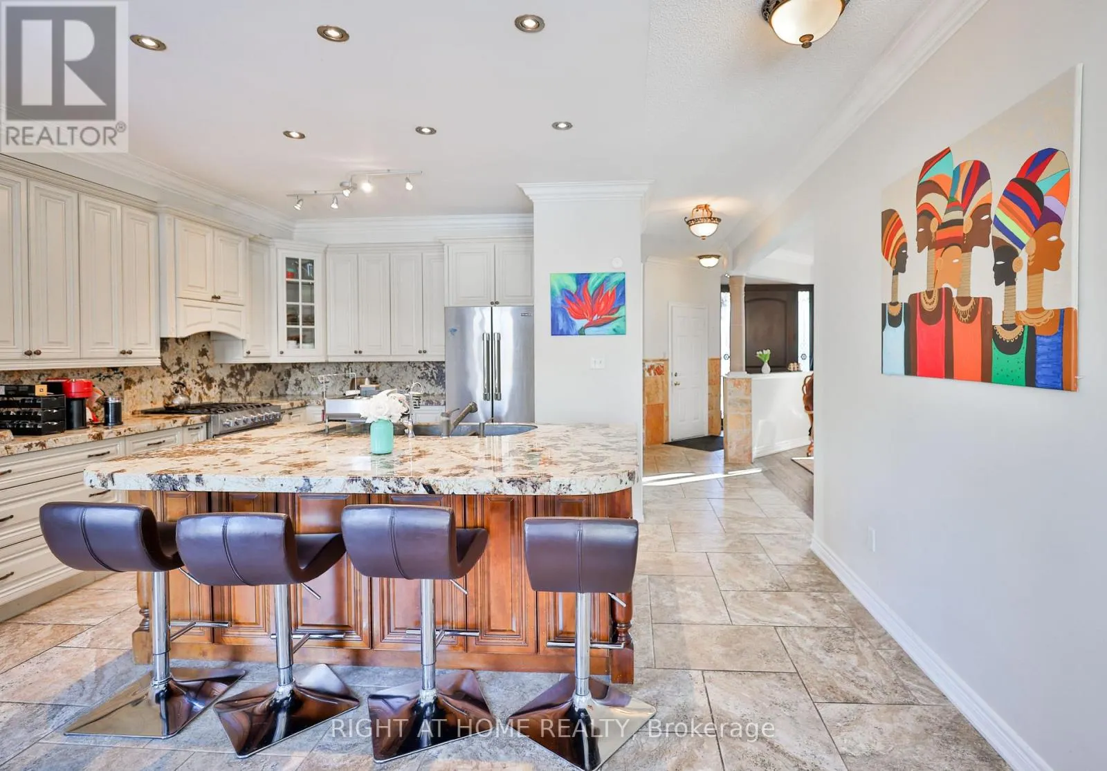 Cross Streets: Bathurst And Bloomington. ** Directions: Bloomington & Red Cardinal Trail. Welcome to your private oasis at 122 Red Cardinal Trail. Nestled on a premium pie-shaped lot in the heart of Oak Ridges, this residence defines luxury with over 4,200 sq. ft. of total living space. The exterior is a showstopper, featuring a New Metal Tile Roof (2015) with a 55-year warranty, professional landscaping, and an oversized heated saltwater inground pool encased in elegant interlock and Armour Stone. Enjoy ultimate privacy with a heightened rear fence and mature trees surrounding the entire property. Step through the custom entrance door into a grand 40 sq. ft. foyer. The main floor boasts soaring 10 ft. ceilings, hand-scraped hardwoods, crown moulding, and a gas fireplace with a limestone mantle. The Chef's Gourmet Kitchen is a masterpiece, featuring an oversized center island, premium cabinetry, a KitchenAid built-in dishwasher, and a specialized water purification system. The second level offers 9 ft. ceilings and a convenient upstairs laundry room. The Massive Primary Suite is a true retreat, featuring a spa-like ensuite with a Light Therapy Jacuzzi, bidet, and a custom-tinted frameless glass shower. All second floor bathrooms have been completely redone with designer fixtures and custom cabinetry and heated towel warmers. The professionally finished basement adds two additional bedrooms, high-end German laminate with premium insulation, and a private sauna for the ultimate wellness experience. Additional features include a double-car garage with a pre-installed EV Charger, 3-car driveway, outdoor security cameras, and custom window treatments throughout. This is a rare opportunity to own a turnkey, high-specification home on one of the largest lots in the area! (id:27476)