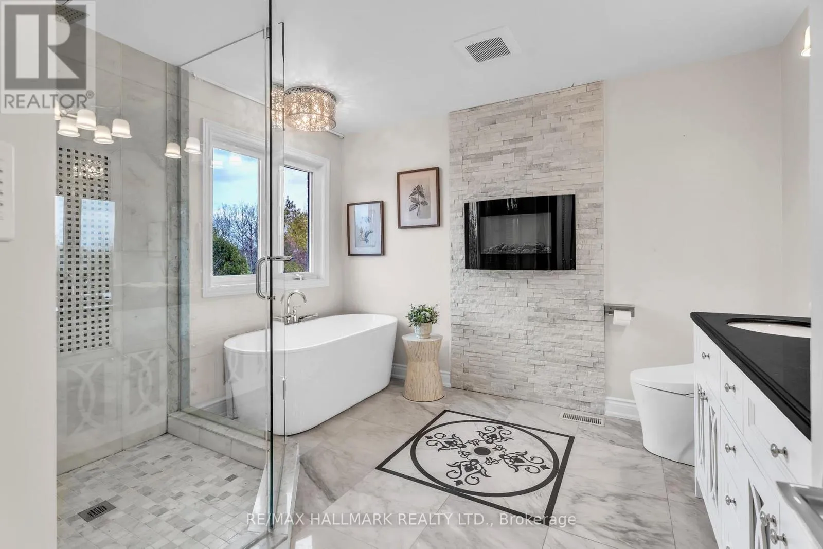 Bathurst Street & King Rd Exceptional ravine-backing detached residence in the prestigious Oak Ridges community, offering refined luxury, privacy, and timeless appeal. Extensively renovated in 2025, this sophisticated home showcases a reimagined open-concept layout with wide-plank hardwood flooring, smooth ceilings, bespoke entertainment centre, and curated designer finishes throughout the main and second levels.The main floor presents elegant, light-filled principal rooms with pot lights and a statement chef's kitchen featuring custom cabinetry, an oversized waterfall quartz island, and premium Jenn-Air and Bosch appliances. Enjoy uninterrupted ravine views from the family room or step out to the glass-railed deck and stone patio for seamless indoor-outdoor living.The upper level offers four generous bedrooms and three spa-inspired bathrooms, anchored by a luxurious primary retreat with fireplace, custom walk-in closet, and a refined ensuite. The finished lower level provides expansive recreation spaces, a full bath, and a versatile multipurpose room ideal for executive office, guest suite, or additional living quarters.A truly rare offering delivering elevated design, natural serenity, and executive living in one of Oak Ridges' most exclusive enclaves. (id:27476)