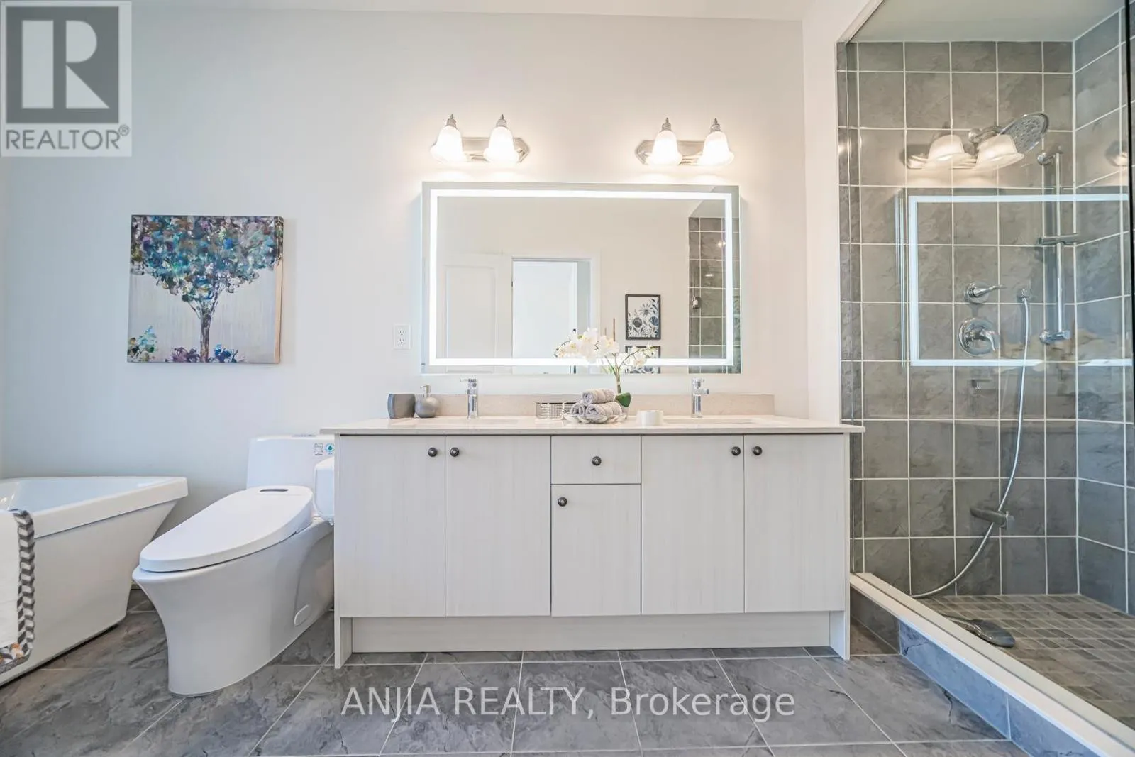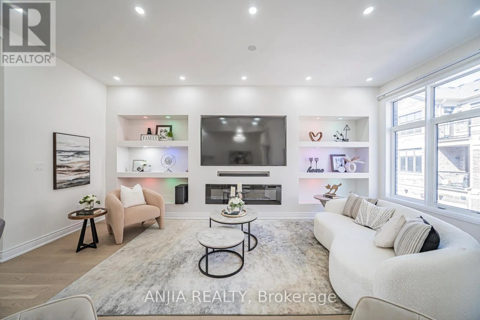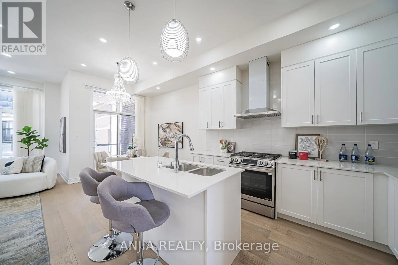 Leslie Street & 19th Avenue A modern-designed three-storey townhouse with approximately 2,056 sq. ft. of living space, featuring 4 bedrooms and 4 bathrooms. Over 150 K has been invested in design and upgraded materials. Premium 7.5-inch engineered hardwood flooring runs throughout all three levels. Both the dining room and breakfast area are elegantly finished with crystal chandeliers, while pot lights are installed throughout the family room, breakfast area, and dining room. The Lower Floor Offers A Private Bedroom With Its Own Ensuite Bathroom, Perfect For Guests, In-Laws, Or A Home Office. Open-concept kitchen with quartz countertops, breakfast bar, and upgraded cabinetry. Spa-inspired primary ensuite with upgraded double vanity & Heated Bidet& 60 ' LED Bathroom Mirror. The kitchen is equipped with a five-stage purified water filtration system and a water softening system for use throughout the entire house. The family room features an 85-inch Sony TV. A 72-inch electric fireplace offers seven different flame effects, complemented by 12 colour-changing LED lights installed on the TV feature wall. A premium Samsung Dolby surround sound bar with subwoofer completes the entertainment setup.The basement is fully finished with high-quality waterproof laminate flooring and includes a walk-in closet and a bedroom. The garage features an epoxy resin floor, an EV charger, and walls finished with high-end fibreglass panels. (id:27476)
