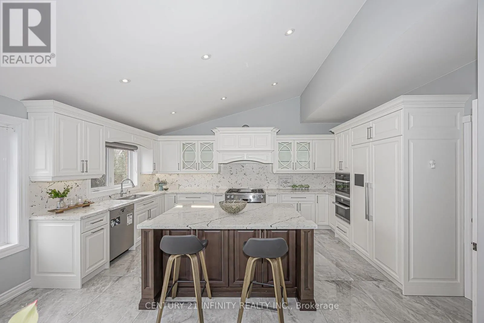 Cross Streets: Weldrick Rd E/ Bayview Ave. ** Directions: 16th/Bayview. Amazing family home with nearly 5,000 sqft. of finished living space, including a fully finished walk-out basement. Features 9-ft ceilings, a soaring vaulted roofline in Family Room and Kitchen; Fireplace with accent wall, hardwood flooring throughout, and elegant large tile flooring on the main level. High-end customized kitchen with premium quartz counters, centre island, backsplash, and top-of-the-line German-made Miele appliances. Main-floor large bedroom ideal for seniors, guests, or office use. A stunning spiral hardwood staircase with elegant iron railings leads to a spacious and sunlight-filled second-floor landing and hallway. Spacious primary suite with upgraded ensuite featuring free standing tub and spacious walk-in shower, and Large size walk-in closet with built-in organizer. Two bedrooms with semi-ensuite 3pc washroom; large bedroom with bay window and extra size closet. Fully finished Walk-out basement comes with extra size L-shape recreation room, bedroom, den and cooler room, and 3-pc bathroom; beautiful Wainscoting in basement wall; walk-out to patio and fenced yard, custom-built triple-tier deck for outdoor time; professionally finished interlock driveway with extra parking. Minutes to sought-after Bayview Hill P.S. and top-ranked school boundary. (id:27476)