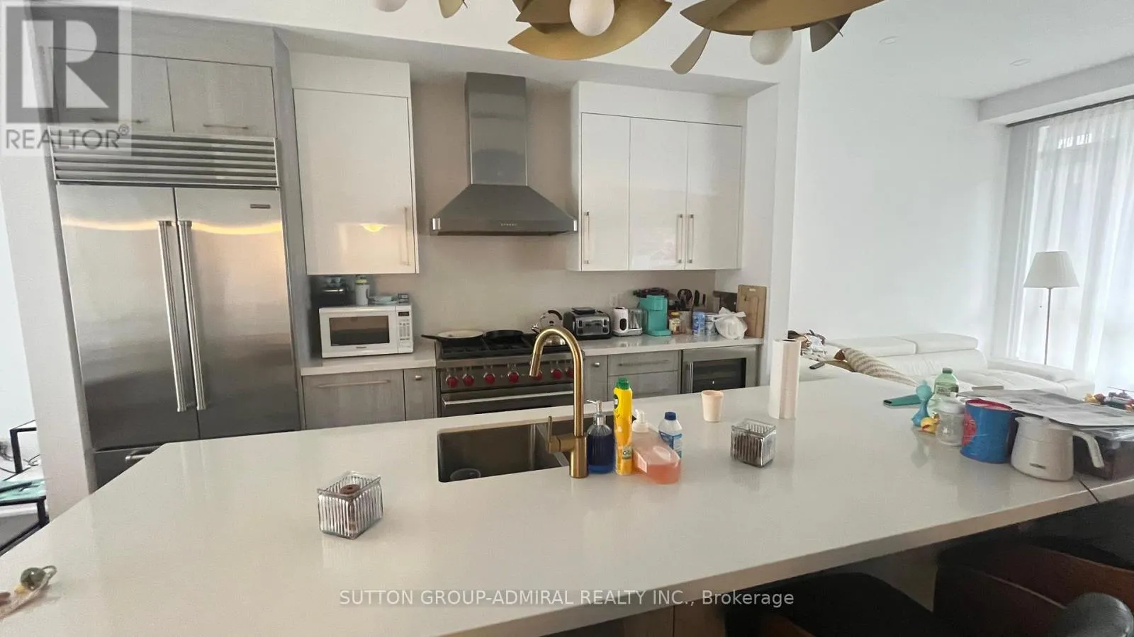 Cross Streets: Yonge & King. ** Directions: Yonge/King. Attention to Multigenerational families! Luxury Townhome in the Sought-After Yonge & King Neighbourhood!Experience over 2,300 sq. ft. of modern, upgraded living space in this stunning residence. Featuring 10' ceilings on the main level and 9' ceilings on the ground and upper floors, with upgraded tiles and hardwood throughout. Elegant 8' doors and archways enhance the sophisticated design. The main floor offers a bright living room with a walkout to a covered balcony and a dining area with a walkout to a private terrace-perfect for entertaining. The chef's kitchen showcases a premium Sub-Zero & Wolf appliance package, quartz countertops with a waterfall island, and matching backsplash. Enjoy the convenience of a full smart home system. The spacious primary bedroom includes a luxurious 5-piece ensuite retreat, while both the second and third bedrooms have walkouts to a large balcony. The ground-level bedroom provides direct access to the backyard and functions as a private in-law suite complete with its own kitchen, laundry, and full bathroom-ideal for multigenerational living. (id:27476)