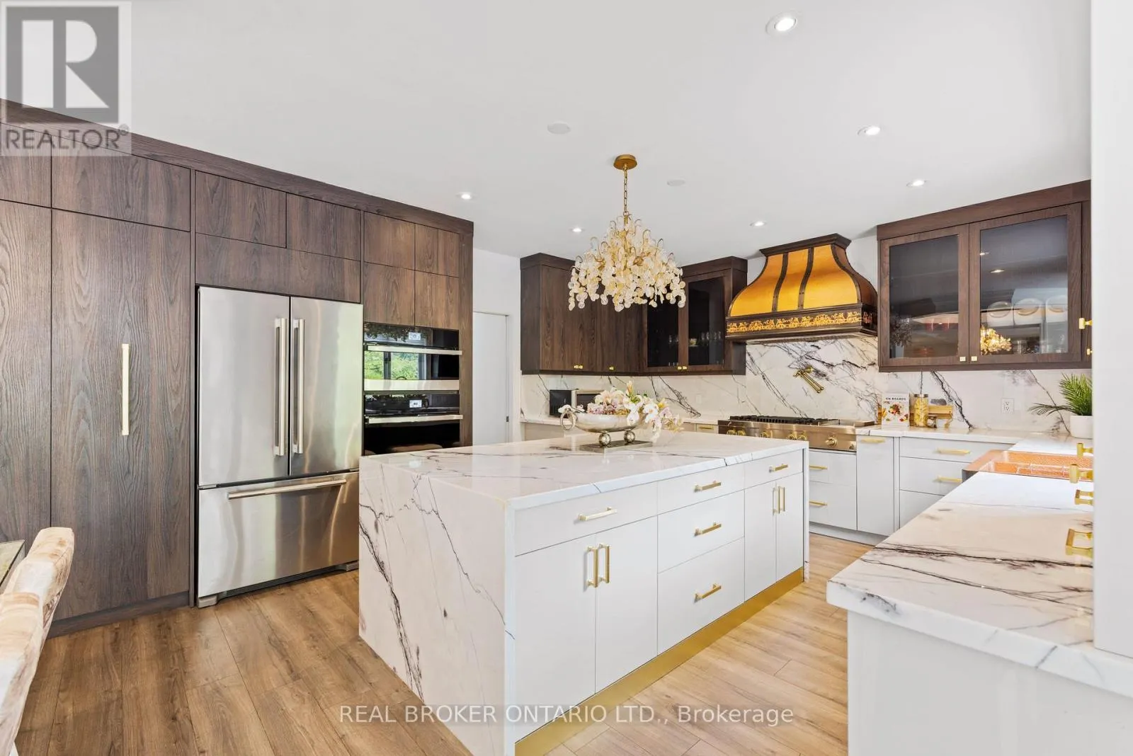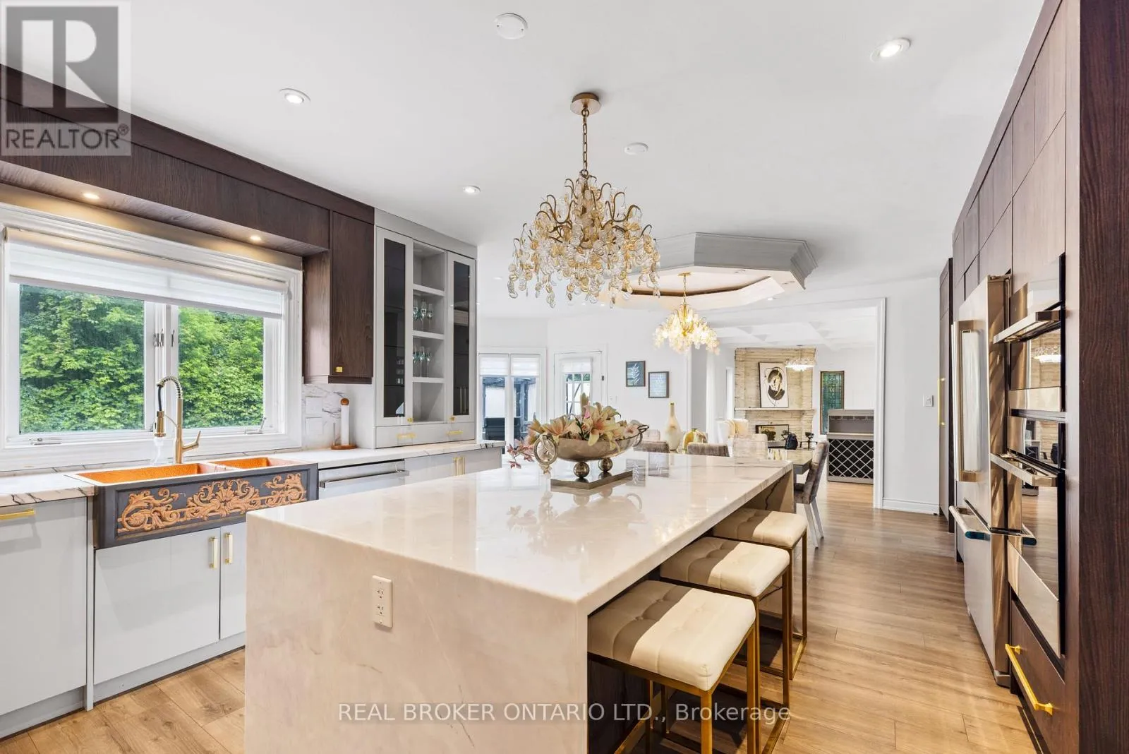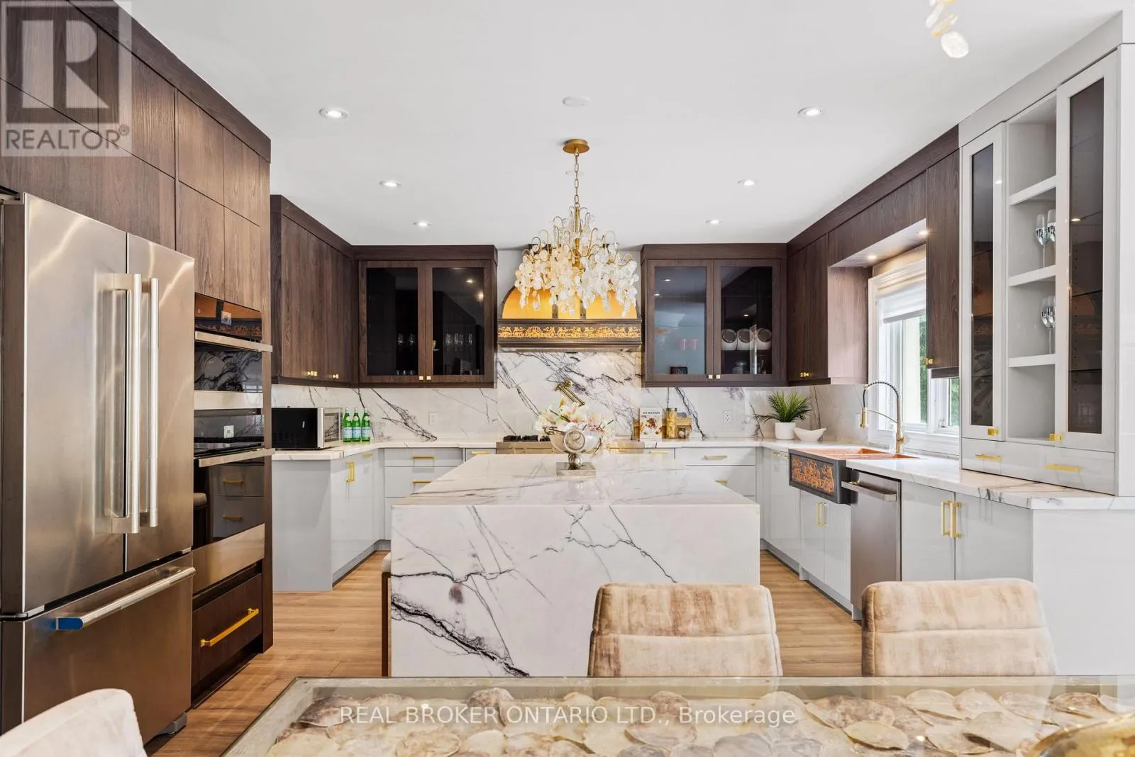 Bathurst & Teefy Avenue Prestigious South Richvale Estate | Iconic Lot | Timeless Luxury" Welcome To One Of South Richvales Crown Jewels A Rare Opportunity To Own A Landmark Estate On An Extraordinary 140 Ft x 140 Ft Corner Lot, Nestled Among The Most Luxurious Homes In Richmond Hill. Located On One Of The Areas Most Prestigious Streets, This Residence Offers Nearly 8,000 Sq Ft Of Total Living Space And Defines What It Means To Live With Distinction. From The Moment You Arrive, The Home's Presence Commands Attention. A Circular Driveway Accommodates Over Eleven Vehicles With Ease, Leading To A Spacious Three-Car Garage. Inside, The Home Unfolds Into Multiple Living Spaces Designed For Both Grand-Scale Entertaining And Comfortable Family Living. Every Detail Reflects Timeless Craftsmanship And Modern Luxury, From The Soaring Ceilings To The Custom Finishes Throughout.The Home Features Four Fully Renovated Kitchens With Premium Jenn-Air Appliances, Sleek Cabinetry, And Contemporary Design, Perfectly Suited For Multigenerational Living Or Seamless Entertaining. Three Laundry Rooms Offer Practical Convenience Across Different Levels. The Bathrooms Have Also Been Thoughtfully Updated With Spa-Like Features And Refined Finishes. Outdoors, The Resort-Like Backyard Is A Private Sanctuary. Mature Trees Offer Natural Privacy, Surrounding An In-ground Pool With A Connected Hot Tub And A Fully Equipped Cabana Kitchen For Effortless Summer Living. An Indoor Sauna Adds To The Homes Wellness Appeal, Making This Estate A Retreat In Every Season.This Home Is Not Just A Residence..Its A Rare Statement Of Opulence, Privacy, And Prestige In One Of The GTAs Most Sought-After Neighbourhoods. (id:27476)
