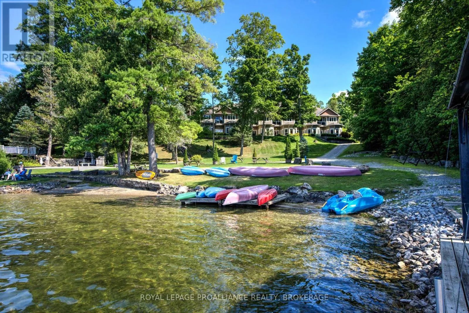 Cross Streets: Bedford Road and 10th Concession Road. ** Directions: West of Westport on Bedford Road to 10th Concession Road. Welcome to Wolfe Springs Resort! Enjoy fractional ownership at this 4-season vacation property with the use of all the resort amenities and enjoyment of beautiful Wolfe Lake near Westport, Ontario. This two-storey, waterview villa features 2 bedrooms, 3 bathrooms, large kitchen with granite countertops, stainless steel appliances, sunken living room with propane fireplace and beautiful views of Wolfe Lake. The master bedroom on the upper level is expansive and features a soaker tub and ensuite bath. The villa comes fully furnished and stocked with all you need to enjoy your 5 weeks at the lake including a washer and dryer tucked away in a hallway closet on the upper level. Make use of the recreation room, theatre room, boat house, canoes, kayaks, paddle boats, bicycles, shared golf carts and barbecue and fire pit area. The waterfront is perfect for swimming or boating with a sandy beach and dock available. This unit has the desirable interval 5 as the fixed summer week of mid July each year. (id:27476)