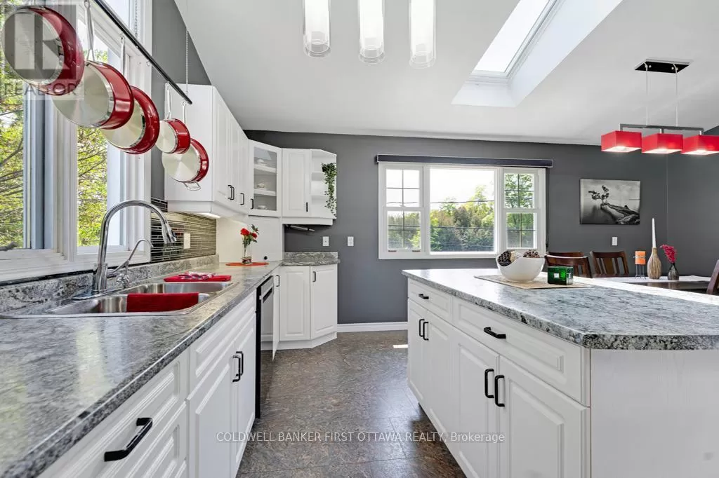 Cross Streets: Highway 15 & Poonamalie Rd. ** Directions: From Smiths Falls, head South on Highway 15. Property will be on your right. Mailbox has a large S on the post. Set on just under an acre at the edge of Smiths Falls, this well-maintained and updated home offers versatility, space, and country charm without the country commute. The main residence features two bedrooms, 1.5 baths, and a large, light-filled kitchen/dining area with vaulted ceilings, skylights, and a flexible layout. The detached island allows you to customize the space to your needs, and generous cabinetry keeps everything within reach. Downstairs, a south-facing picture window fills the living room with warm natural light. The in-law suite, which is connected but fully separate, provides a private, self-contained space, ideal for family, guests, or rental income. With its own entrance, full kitchen, living room, bright bedroom, and 4-piece bath, it is move-in ready. The two units share a laundry area with stacked washer and dryer, and heating/cooling is efficiently shared through a central electric furnace (2023) and A/C system (2021). The thoughtful layout allows for easy future conversion back into a unified 3+ bedroom single-family home should the need arise. Downstairs, the basement, with 6-foot ceilings, has long served as a hobbyist's woodworking shop and remains well laid out for projects or storage. The attached double garage provides even more utility, and a 23' x 13' outbuilding at the rear of the property awaits your vision, whether for a workshop, storage, or full renovation into additional living space. Recent updates include new shingles (2024), kitchen skylights (2022), siding and windows (2020), additional insulation in the attic, and spray foam insulation in the crawl space (2021). Whether you're looking for multi-generational living or a property with income potential, this home offers space to grow and room to breathe, just minutes from town. (id:27476)
