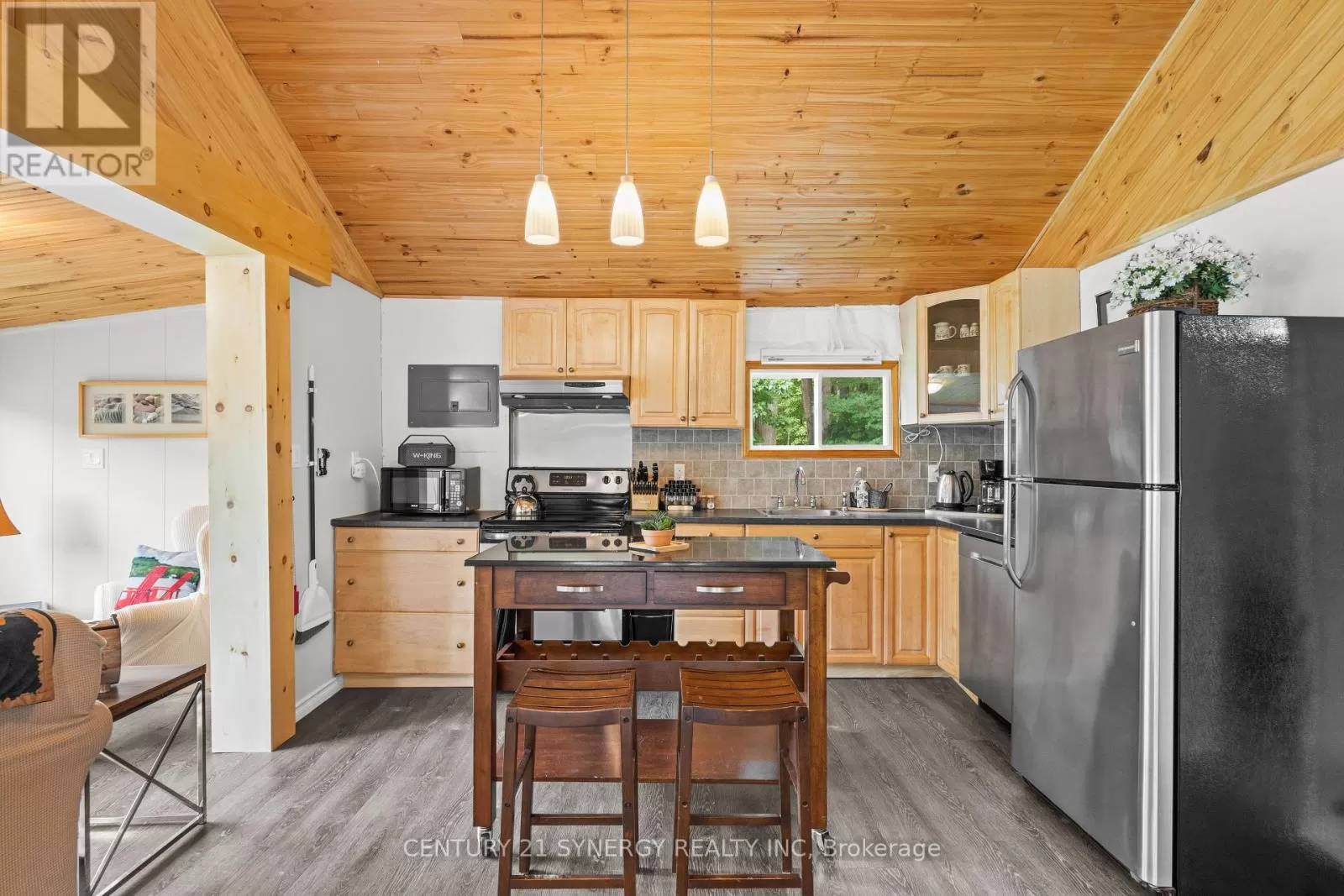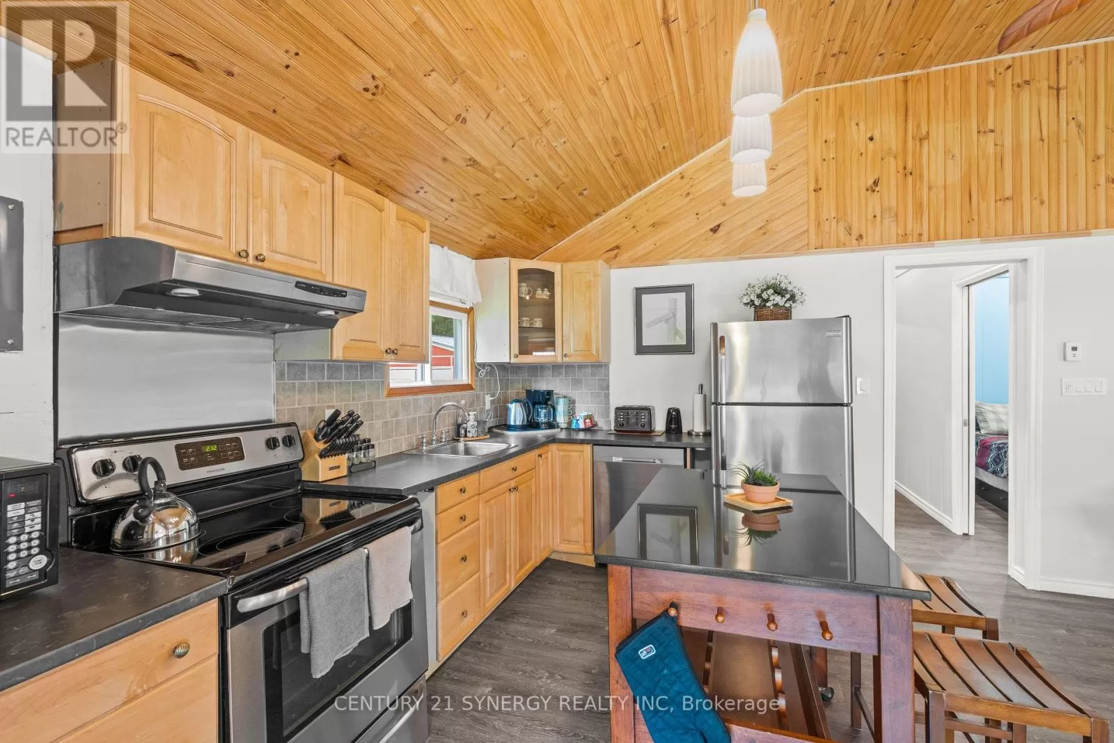 Cross Streets: Lake Street. ** Directions: From Hwy 15 drive south on County Road 5, Turn right onto Lake Street, Turn right onto UB 8 and property will be at the bottom of the hill on the right hand side. Sign is on the property. Welcome to this stunning 3-season cottage that has been thoughtfully and extensively renovated in 2023. This turn-key, 3-bedroom retreat perfectly blends modern comfort with the timeless charm of a classic cottage escape. From the moment you step inside, you'll be impressed by the bright, open-concept layout that seamlessly connects the kitchen, dining, and living areas. Soaring vaulted ceilings throughout add a sense of spaciousness and airiness, while a cozy fireplace and efficient heat pump ensure comfort during cooler evenings. No detail has been overlooked in the recent renovations. The updates include a brand new kitchen, fresh flooring throughout, upgraded insulation and plumbing, a beautifully redone bathroom, new windows, a newly paved driveway, and eye-catching vinyl board and batten siding with updated skirting. This cottage is truly move-in ready, offering peace of mind and effortless enjoyment from day one. Situated just across the road from your private swimming area and boat launch, the location is ideal for enjoying lake life all summer long. And that's not all included in this sale is an additional lot down the lane to the west of the cottage, measuring 50' x 115' with your own private dock. Whether you're looking for a serene family getaway or a savvy investment opportunity with potential for weekly rentals, this property checks every box. With the simple addition of a heat line to the water line, year-round use is well within reach. This property offers a drilled well and full septic system. A low $50/year road maintenance fee completes the package. Don't miss your chance to own this beautifully renovated, stylish, and versatile lakeside gem! (id:27476)