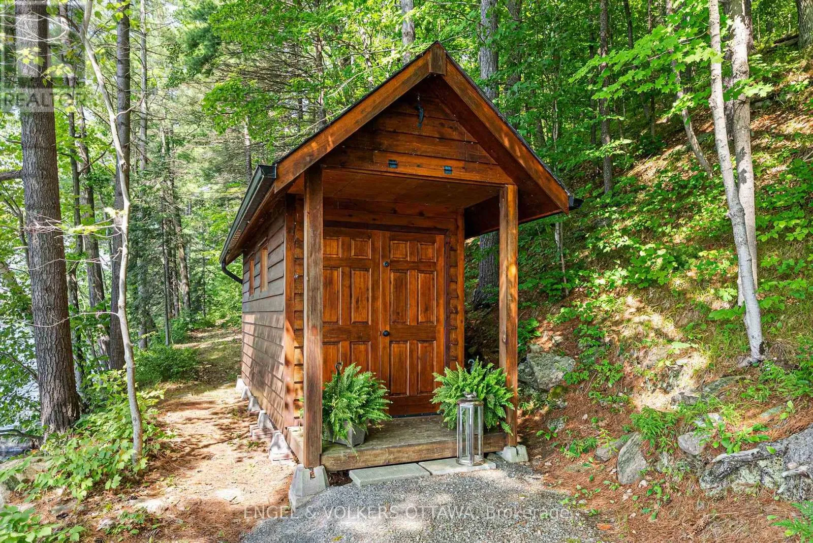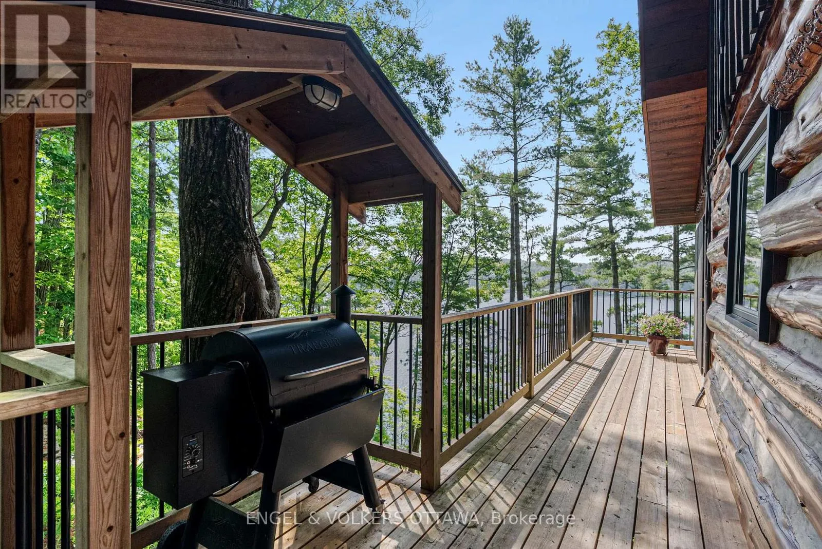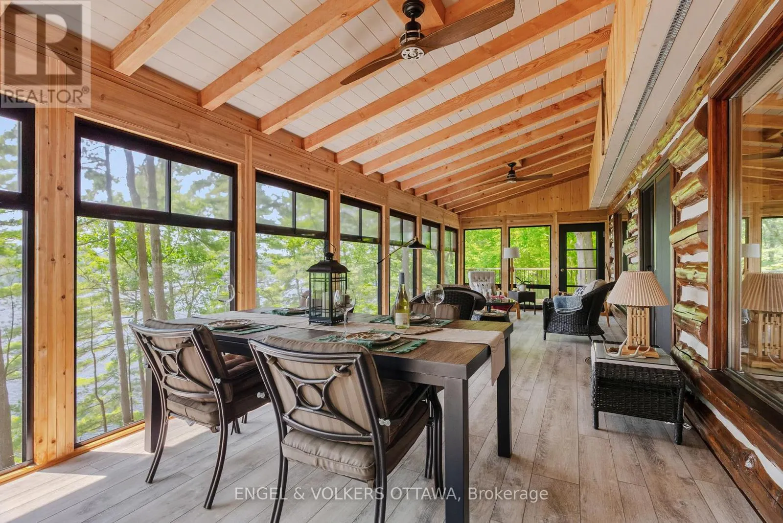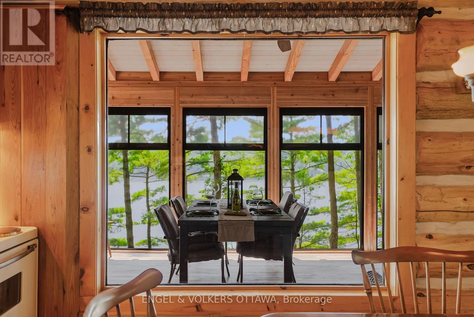 Cross Streets: Connies Ln & Coco Ln. ** Directions: From Althorpe Rd, turn right onto Connies Ln. 300.47 ft of waterfront property nestled on a quiet private lane along the pristine shores of Big Crosby Lake, in a welcoming and well-established gated lakeside community! This custom-built log home provides a four-season tranquil retreat, ideal for nature lovers and outdoor adventurers on a 299.79 ft x 260.65 ft lot. The main level welcomes you to a spacious foyer with tile flooring and tongue-and-groove hardwood walls, which leads to an open-concept family room and eat-in kitchen, unified by hardwood flooring, exposed beams, and a freestanding wood stove with a stacked stone surround. The custom Butternut kitchen looks out to both the treed property and the beautiful lake, while the sliding glass door leads to the massive 3-season screened-in porch. Upstairs, the primary bedroom has soft carpeting, natural wood accents, and dual closets, while the expansive second-level living area has flexibility as additional bedrooms, a workspace, or a creative studio. A bathroom on each level, both updated in 2021, completes the interior of the home. Outside, a large wood storage shed, a firepit area, walking paths, and a three-car detached garage are all found in the wooded portion of the property. On the lakeside, wide elevated decks run along both sides of the home, while just below the sunroom, a gravel terrace provides a shaded gathering area with access to the private, low-maintenance stone path leading to the lakeside deck and private dock. Big Crosby Lake is spring-fed and home to bass, pickerel, and a variety of panfish, offering exceptional swimming, fishing, and boating. Located just 1 km from pavement, Connies Lane is a quiet, walkable road with only 12 cottages and no further development - maintained by a stable group of long-term owners, making this home a quiet, unforgettable lakeside experience. Some photos have been virtually staged. (id:27476)