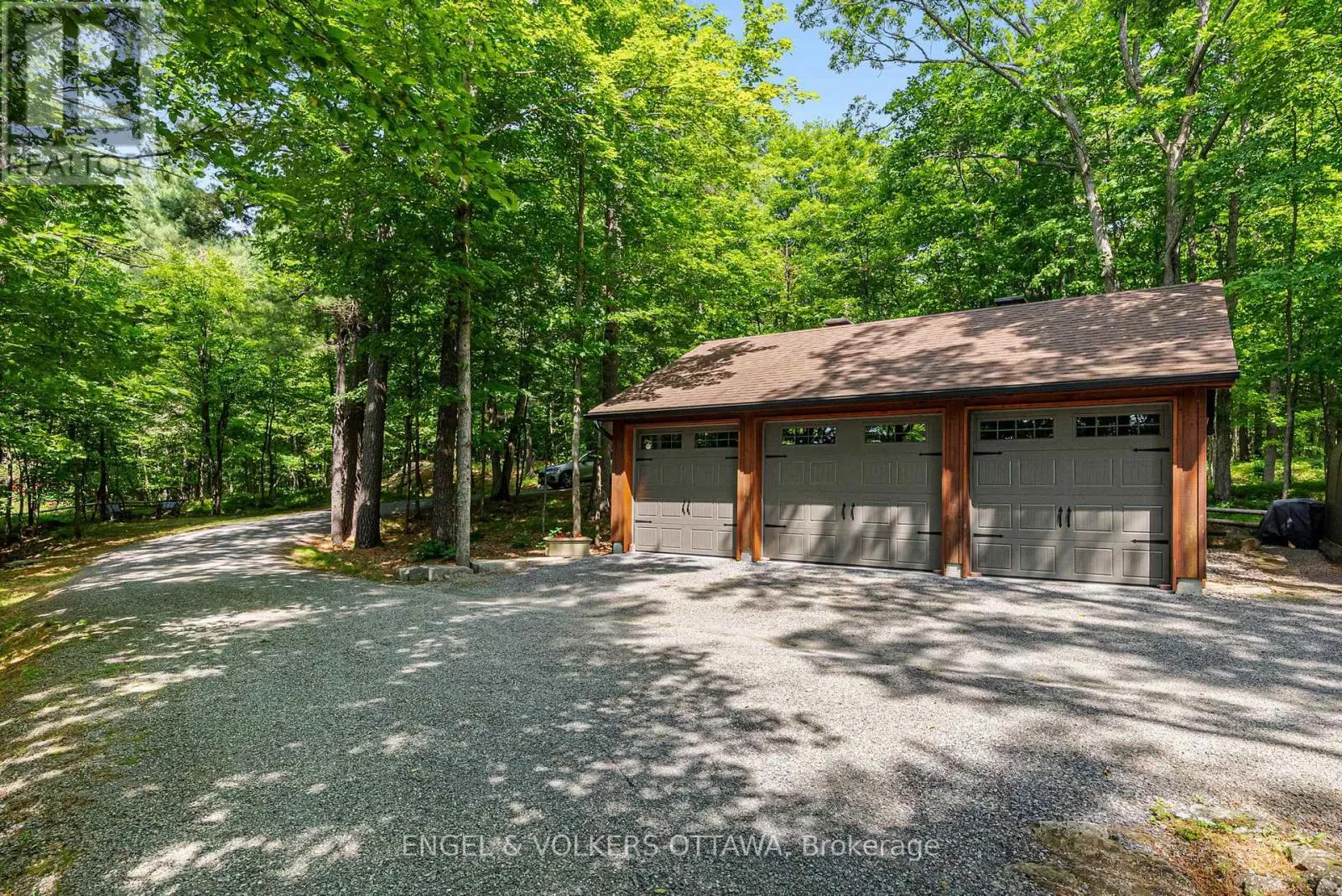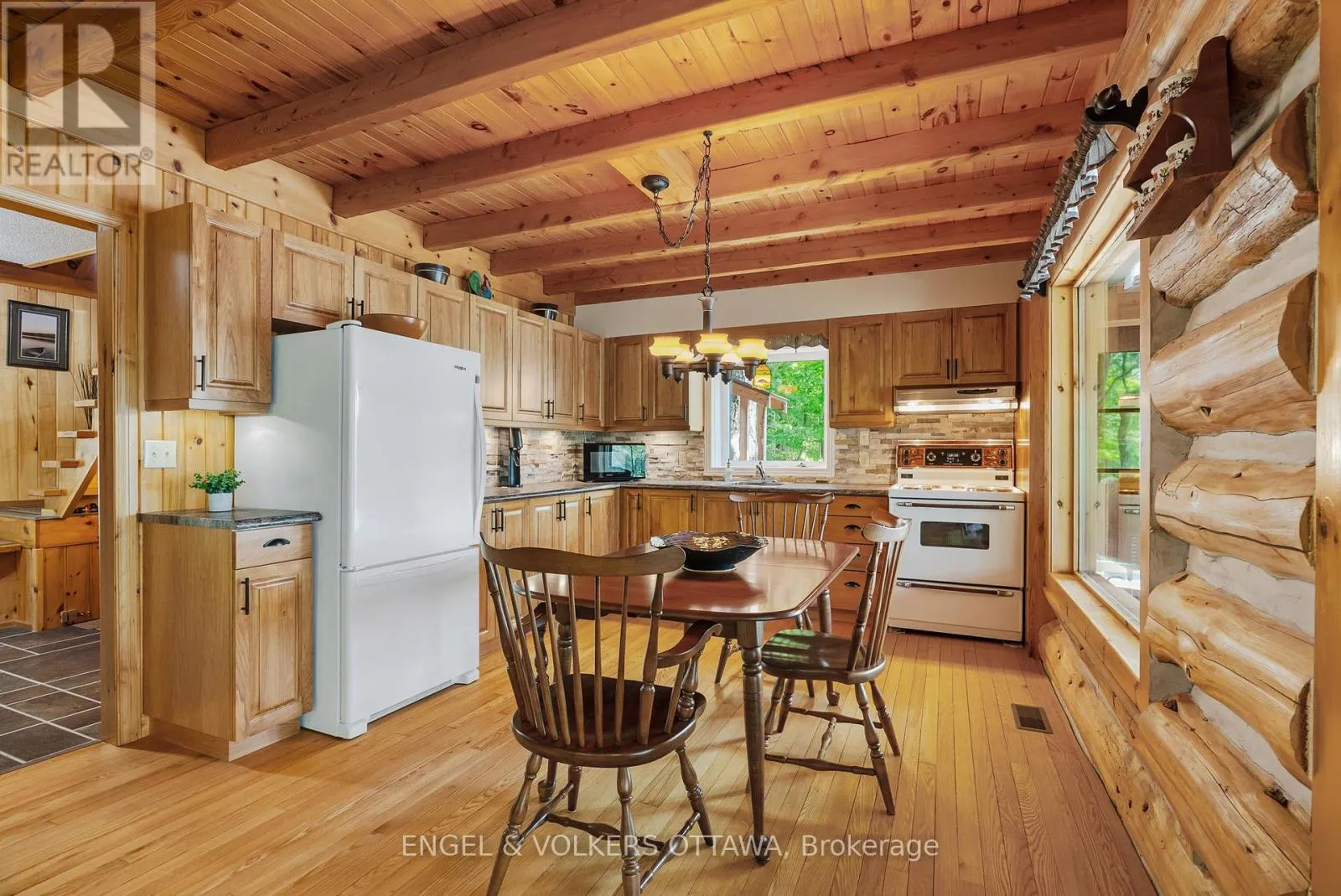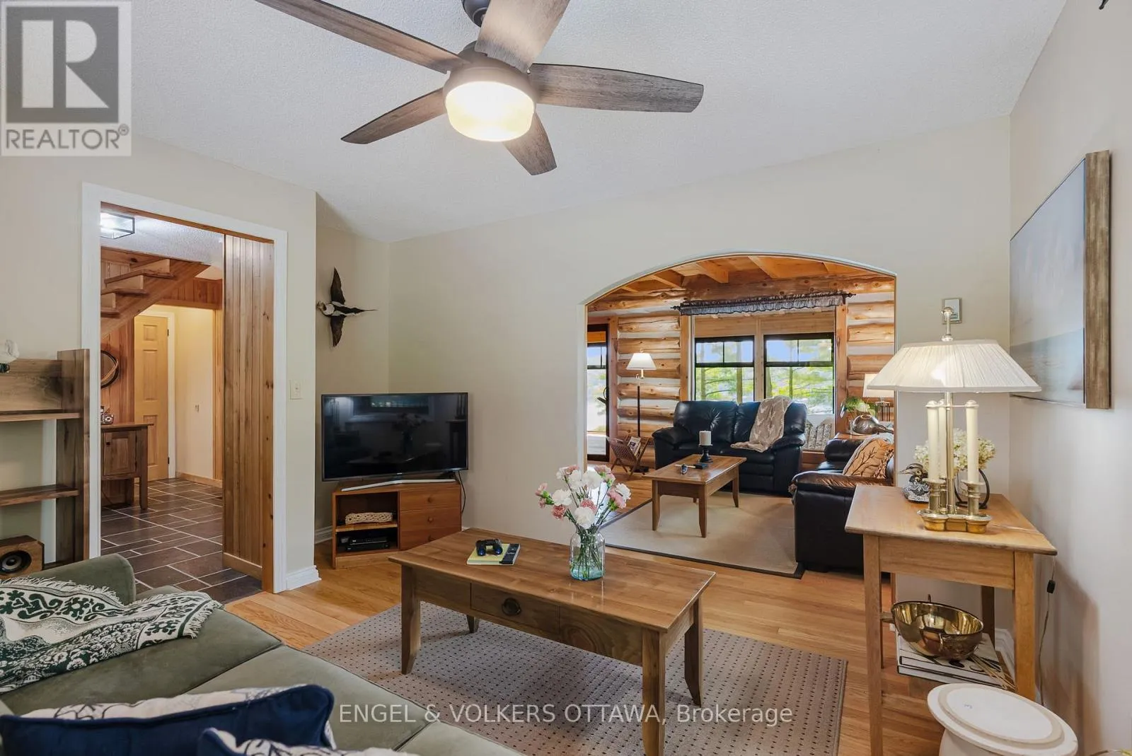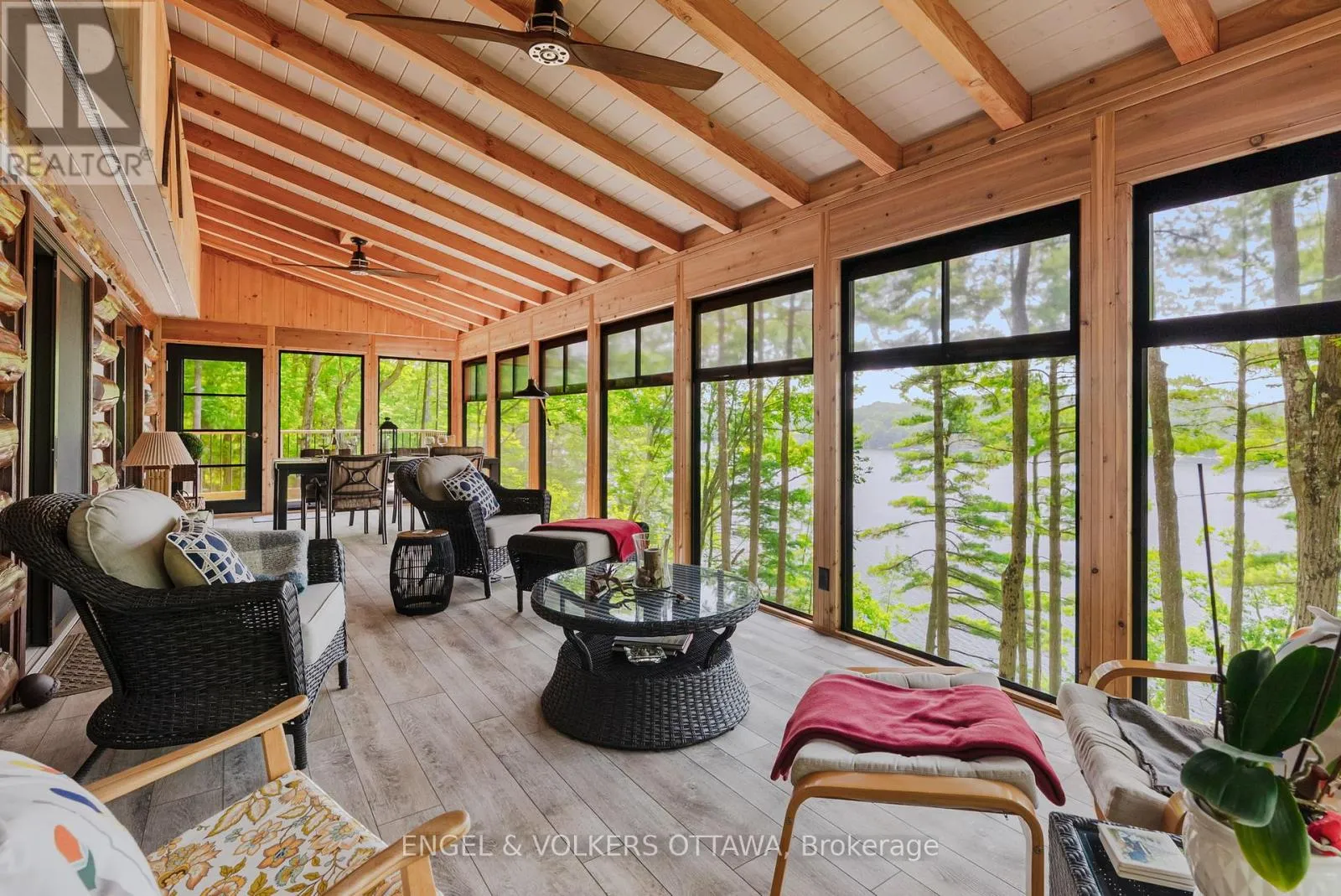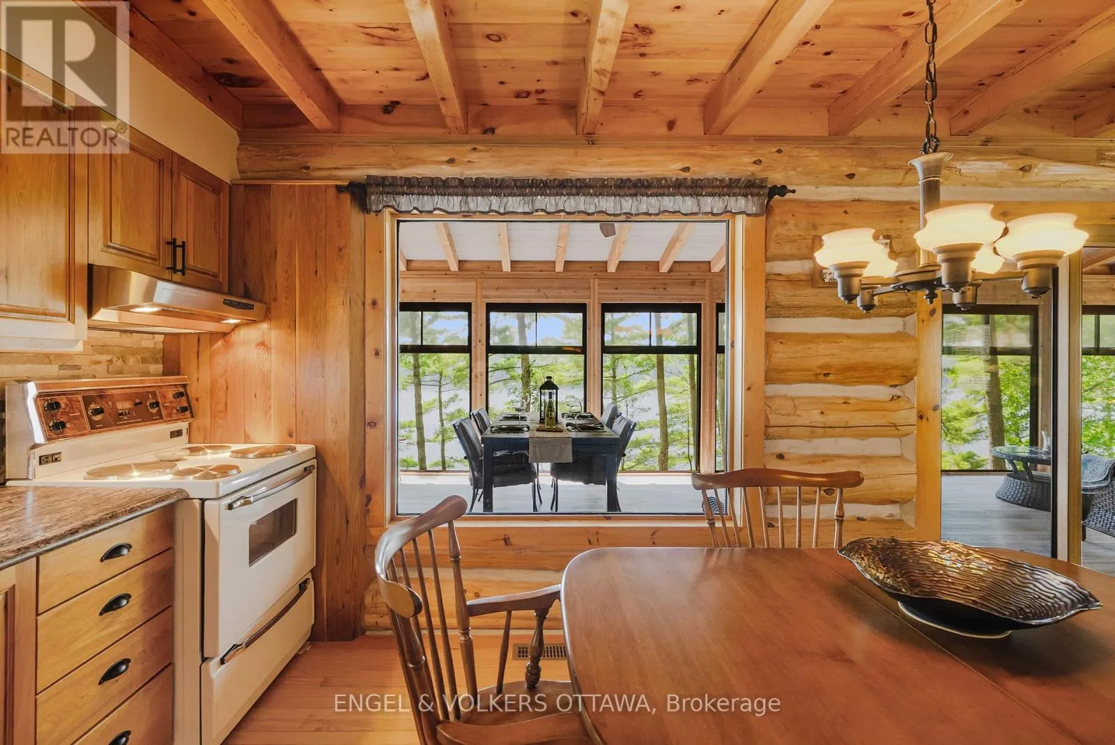 Cross Streets: Connies Ln & Coco Ln. ** Directions: From Althorpe Rd, turn right onto Connies Ln. 300.47 ft of waterfront property nestled on a quiet private lane along the pristine shores of Big Crosby Lake, in a welcoming and well-established gated lakeside community! This custom-built log home provides a four-season tranquil retreat, ideal for nature lovers and outdoor adventurers on a 299.79 ft x 260.65 ft lot. The main level welcomes you to a spacious foyer with tile flooring and tongue-and-groove hardwood walls, which leads to an open-concept family room and eat-in kitchen, unified by hardwood flooring, exposed beams, and a freestanding wood stove with a stacked stone surround. The custom Butternut kitchen looks out to both the treed property and the beautiful lake, while the sliding glass door leads to the massive 3-season screened-in porch. Upstairs, the primary bedroom has soft carpeting, natural wood accents, and dual closets, while the expansive second-level living area has flexibility as additional bedrooms, a workspace, or a creative studio. A bathroom on each level, both updated in 2021, completes the interior of the home. Outside, a large wood storage shed, a firepit area, walking paths, and a three-car detached garage are all found in the wooded portion of the property. On the lakeside, wide elevated decks run along both sides of the home, while just below the sunroom, a gravel terrace provides a shaded gathering area with access to the private, low-maintenance stone path leading to the lakeside deck and private dock. Big Crosby Lake is spring-fed and home to bass, pickerel, and a variety of panfish, offering exceptional swimming, fishing, and boating. Located just 1 km from pavement, Connies Lane is a quiet, walkable road with only 12 cottages and no further development - maintained by a stable group of long-term owners, making this home a quiet, unforgettable lakeside experience. Some photos have been virtually staged. (id:27476)