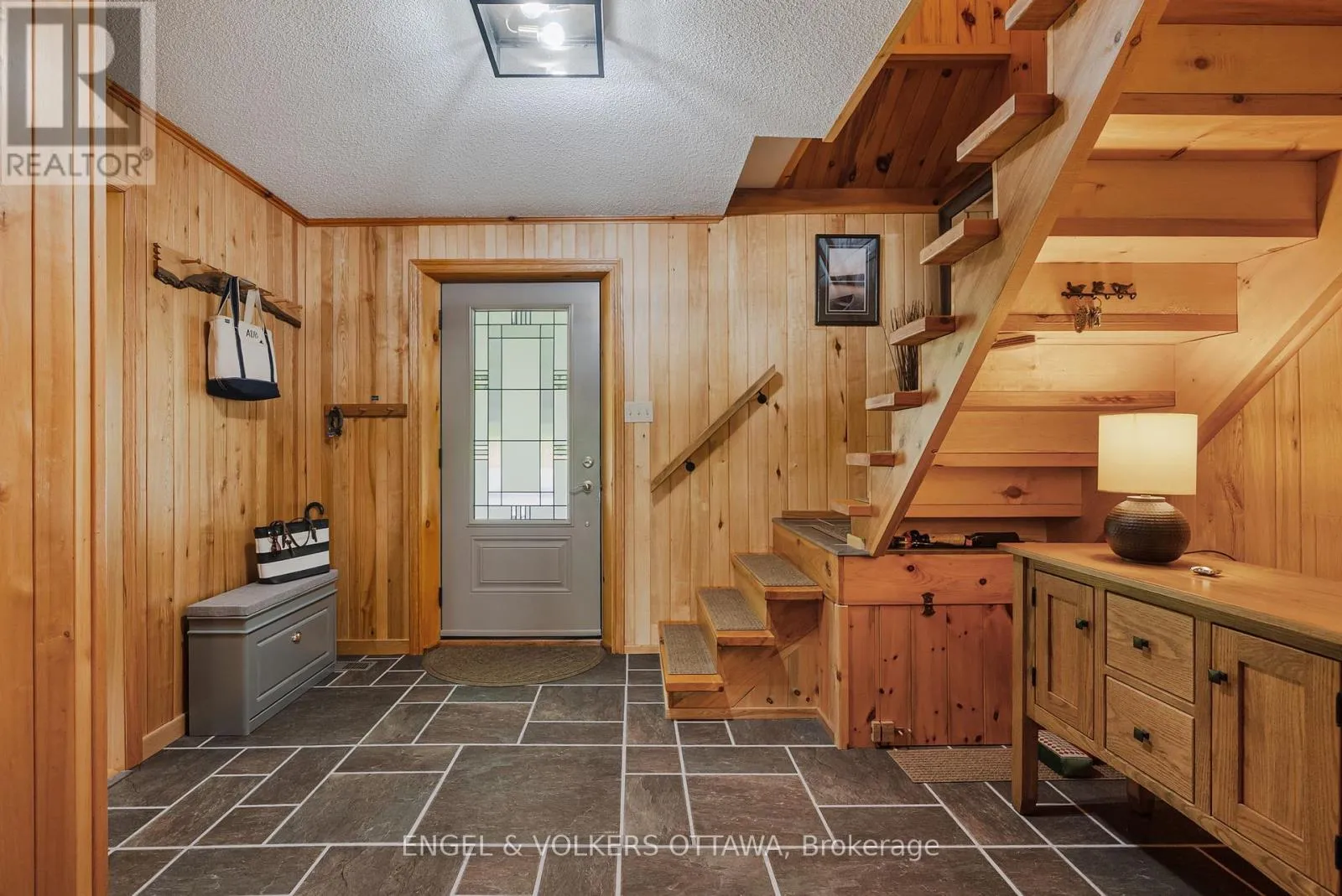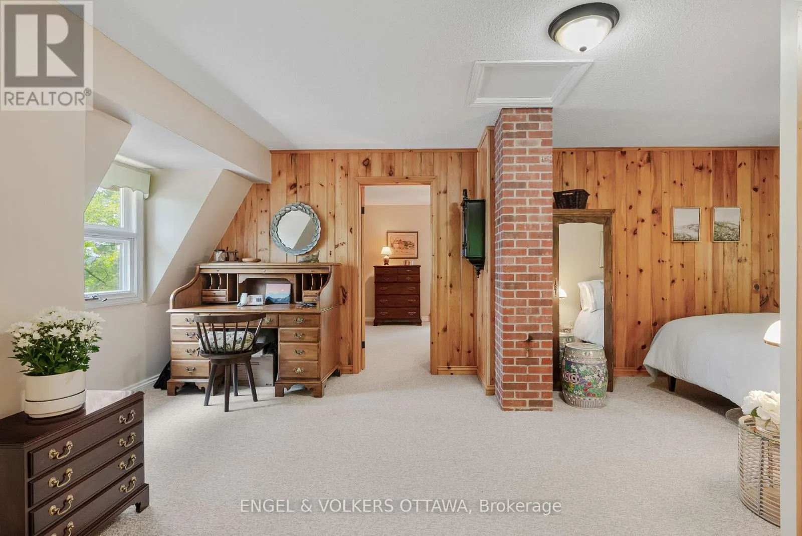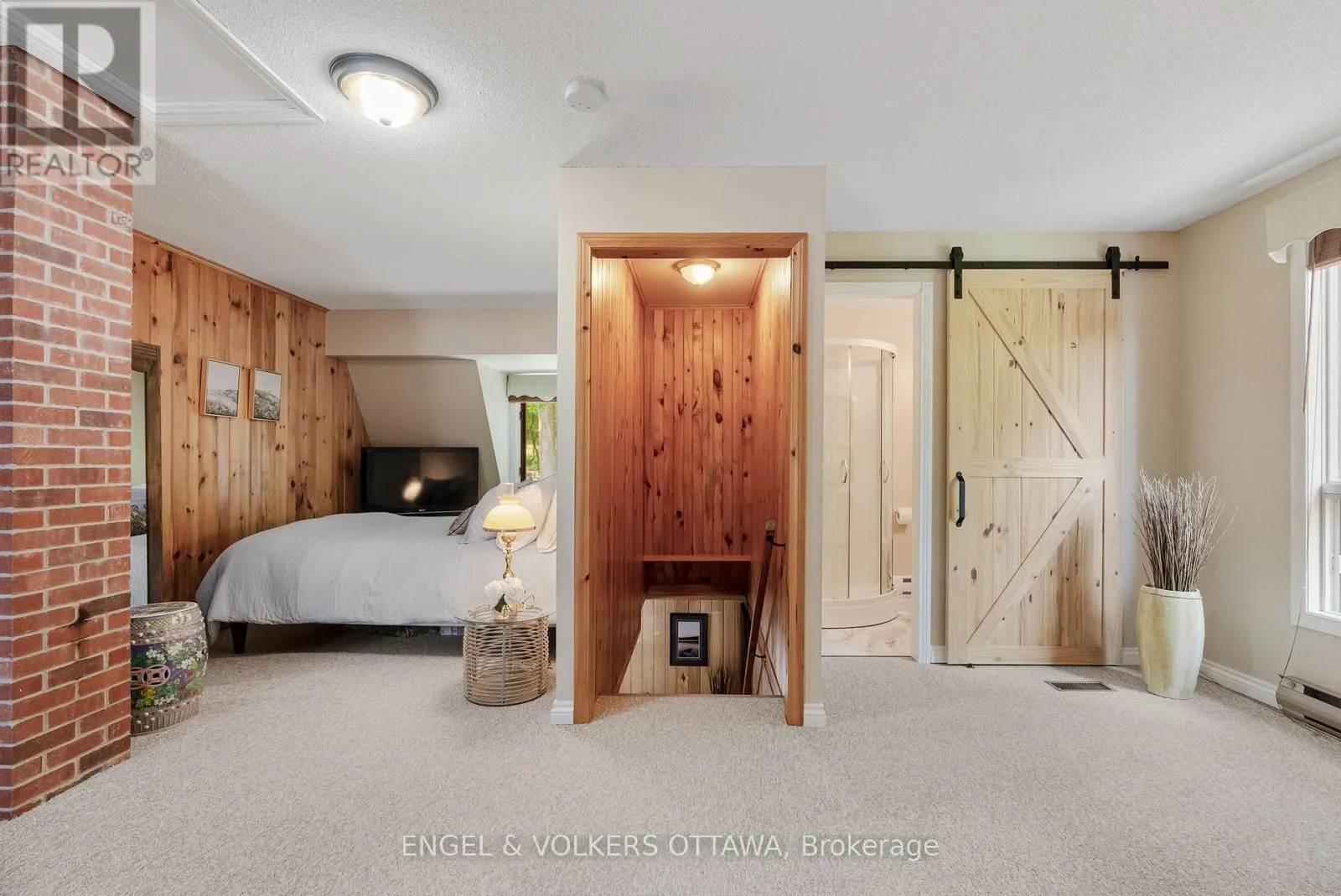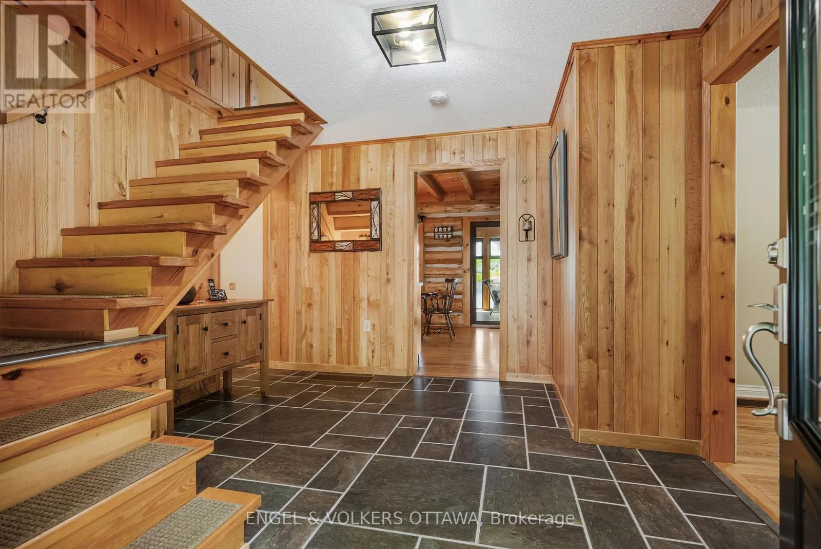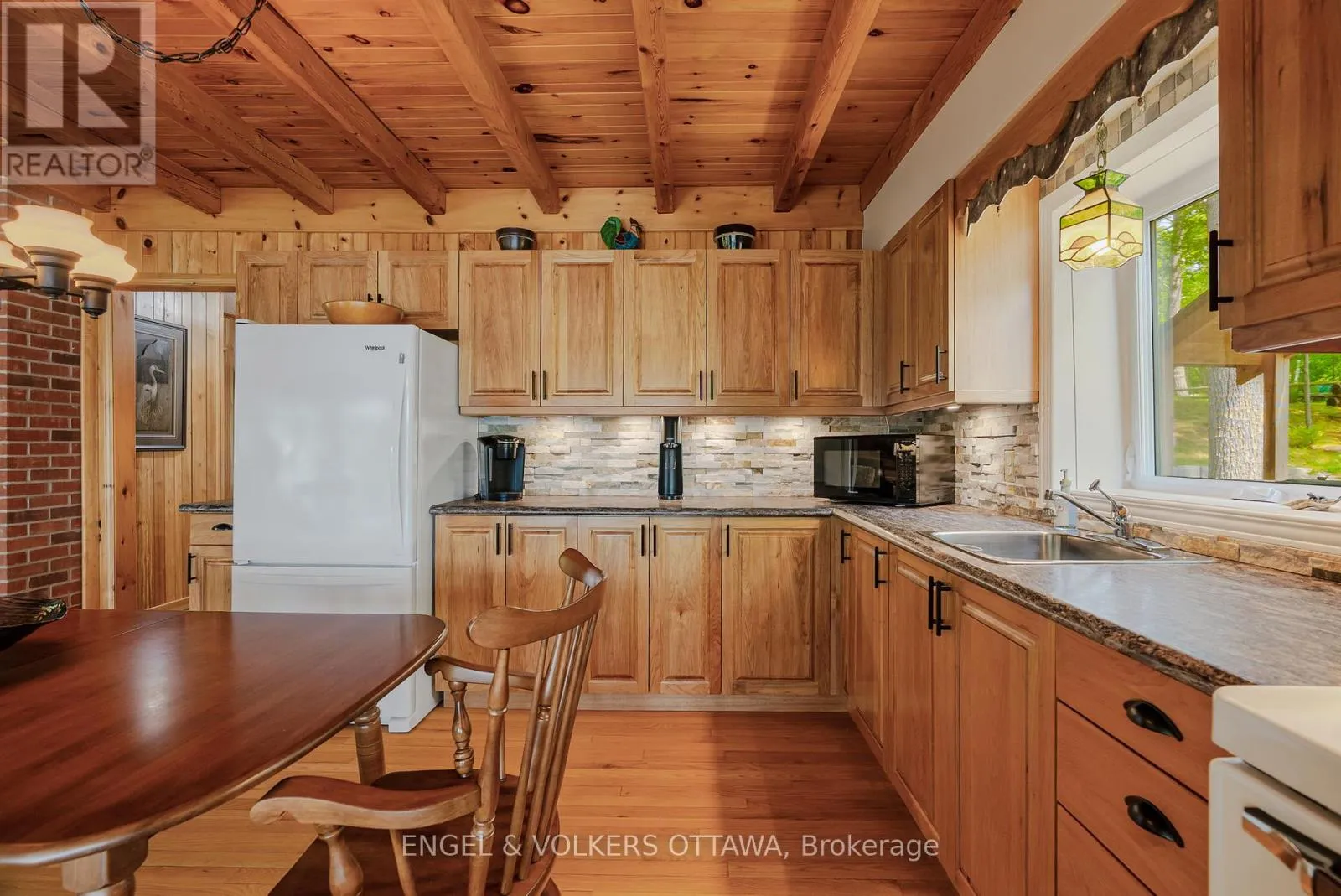 Cross Streets: Connies Ln & Coco Ln. ** Directions: From Althorpe Rd, turn right onto Connies Ln. 300.47 ft of waterfront property nestled on a quiet private lane along the pristine shores of Big Crosby Lake, in a welcoming and well-established gated lakeside community! This custom-built log home provides a four-season tranquil retreat, ideal for nature lovers and outdoor adventurers on a 299.79 ft x 260.65 ft lot. The main level welcomes you to a spacious foyer with tile flooring and tongue-and-groove hardwood walls, which leads to an open-concept family room and eat-in kitchen, unified by hardwood flooring, exposed beams, and a freestanding wood stove with a stacked stone surround. The custom Butternut kitchen looks out to both the treed property and the beautiful lake, while the sliding glass door leads to the massive 3-season screened-in porch. Upstairs, the primary bedroom has soft carpeting, natural wood accents, and dual closets, while the expansive second-level living area has flexibility as additional bedrooms, a workspace, or a creative studio. A bathroom on each level, both updated in 2021, completes the interior of the home. Outside, a large wood storage shed, a firepit area, walking paths, and a three-car detached garage are all found in the wooded portion of the property. On the lakeside, wide elevated decks run along both sides of the home, while just below the sunroom, a gravel terrace provides a shaded gathering area with access to the private, low-maintenance stone path leading to the lakeside deck and private dock. Big Crosby Lake is spring-fed and home to bass, pickerel, and a variety of panfish, offering exceptional swimming, fishing, and boating. Located just 1 km from pavement, Connies Lane is a quiet, walkable road with only 12 cottages and no further development - maintained by a stable group of long-term owners, making this home a quiet, unforgettable lakeside experience. Some photos have been virtually staged. (id:27476)