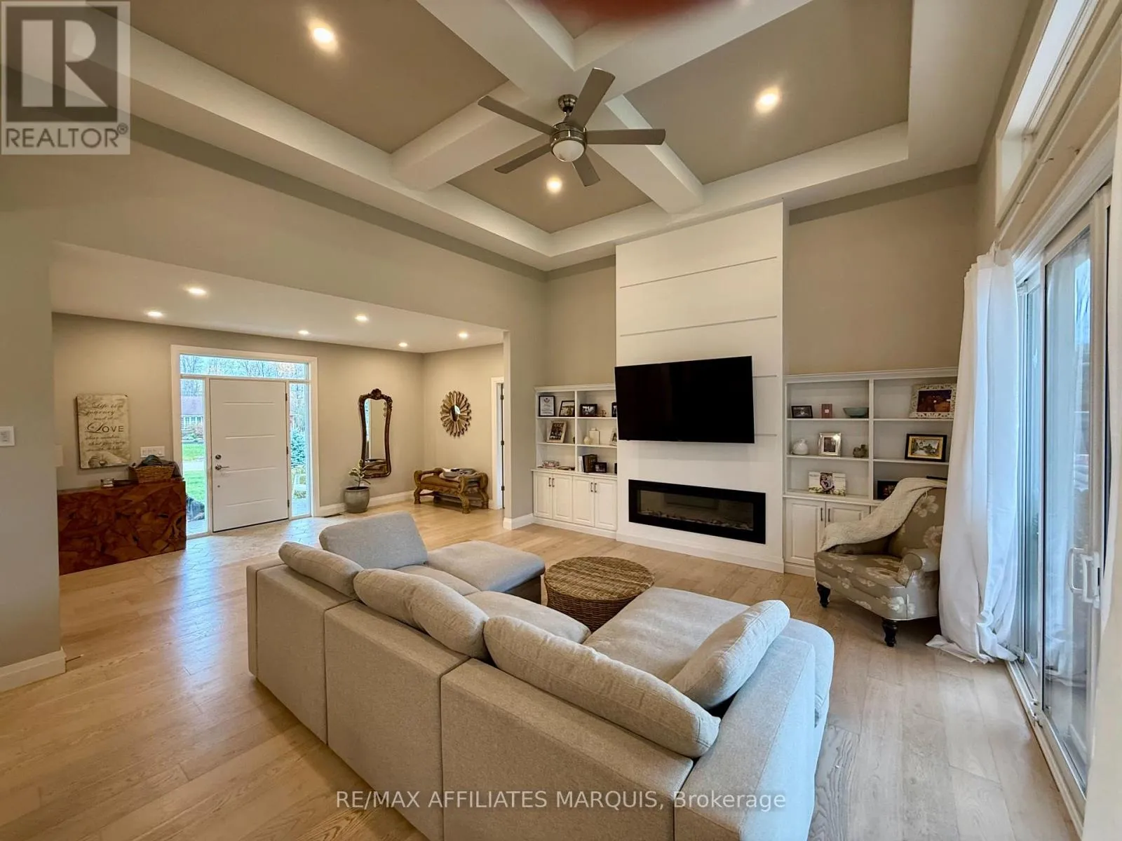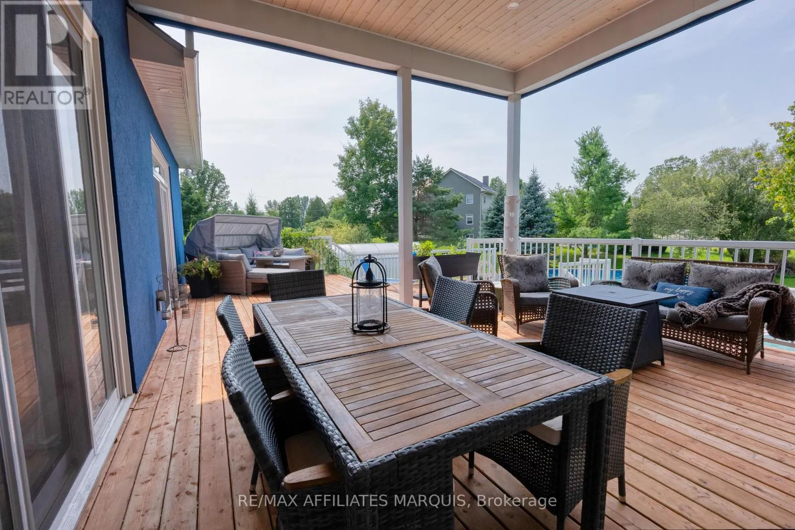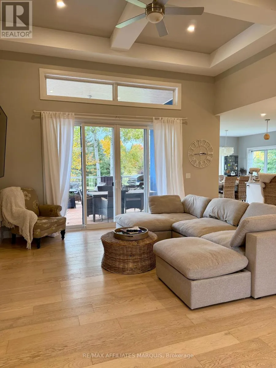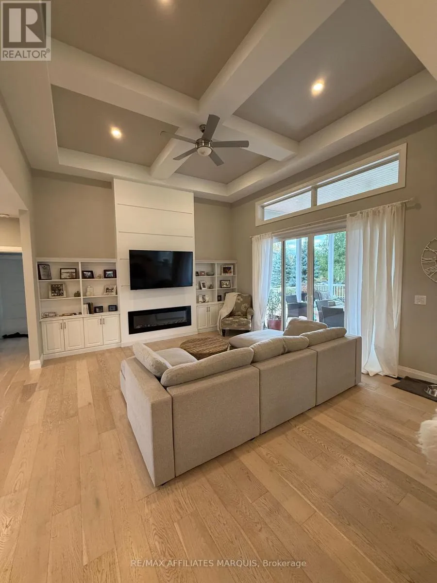 Cross Streets: Take Hwy #15 out of Smiths Falls or from Kingston and turn onto Kelly's Road, turn left onto Tudor Circle and drive around to #23. No sign due to the snow, but look for the new blue stucco home. ** Directions: Take Hwy 15 to Kelly Road and turn onto Tudor Circle. Striking modern home was custom built in a mature neighbourhood nestled into Lombard Glen Golf Course and surrounded by mature sugar maple trees. The light and airy living space blends seamlessly with the beauty of the outdoors with the elegance of well thought out interior design. Primary suite offers that "wow" factor with Italian Tile bathroom, sunsoaked walk in closest and garden doors that lead to a stunning pool and outdoor oasis area. The additional offset 2 bedrooms provide cozy retreats with walk-in closet and shared 4pc bathroom. The living room boasts 14' coffered ceilings, modern fireplace design and and opens onto spacious covered deck allowing you to feel one with nature. The kitchen is a delight with abundant cupboard and counter space perfect for hosting special dinners. The dining area, surrounded by pretty views on all sides is an idyllic setting for intimate gatherings. The large entrance foyer offers room to greet your guests while the bright office and laundry room with a feature wall make daily living a breeze. Add to that the bonus of a large above ground basement with ample windows for light and separate entrance and you could easily turn this home into one with an incredible in-law suite or income generating apartment. Basement is already partially drywalled and bathroom is roughed in ready for your own design downstairs. Woodstove added in 2023 for what could be a cosy reading nook in the basement alongside the large potential family room. Paved driveway with lots of parking, stamped concrete walkways, professionally hydroseeded yard, greenhouse, small orchard and raised bed gardens to enjoy. Pool, hot tub, hydrolink included. (id:27476)
