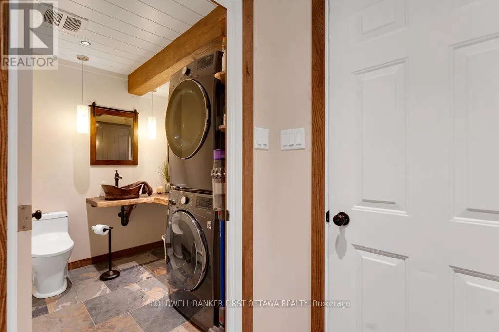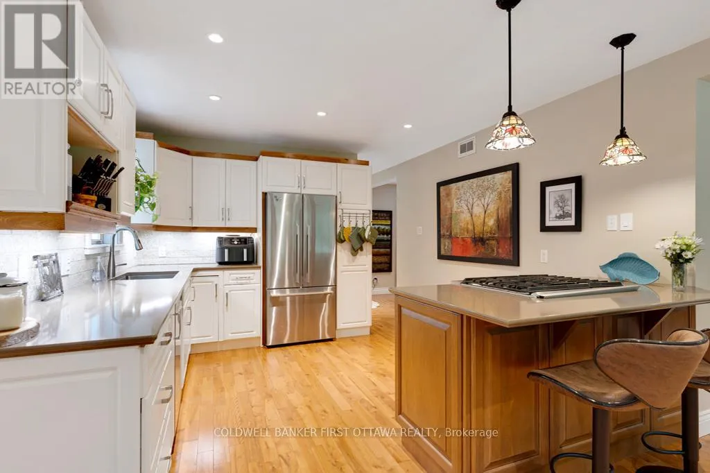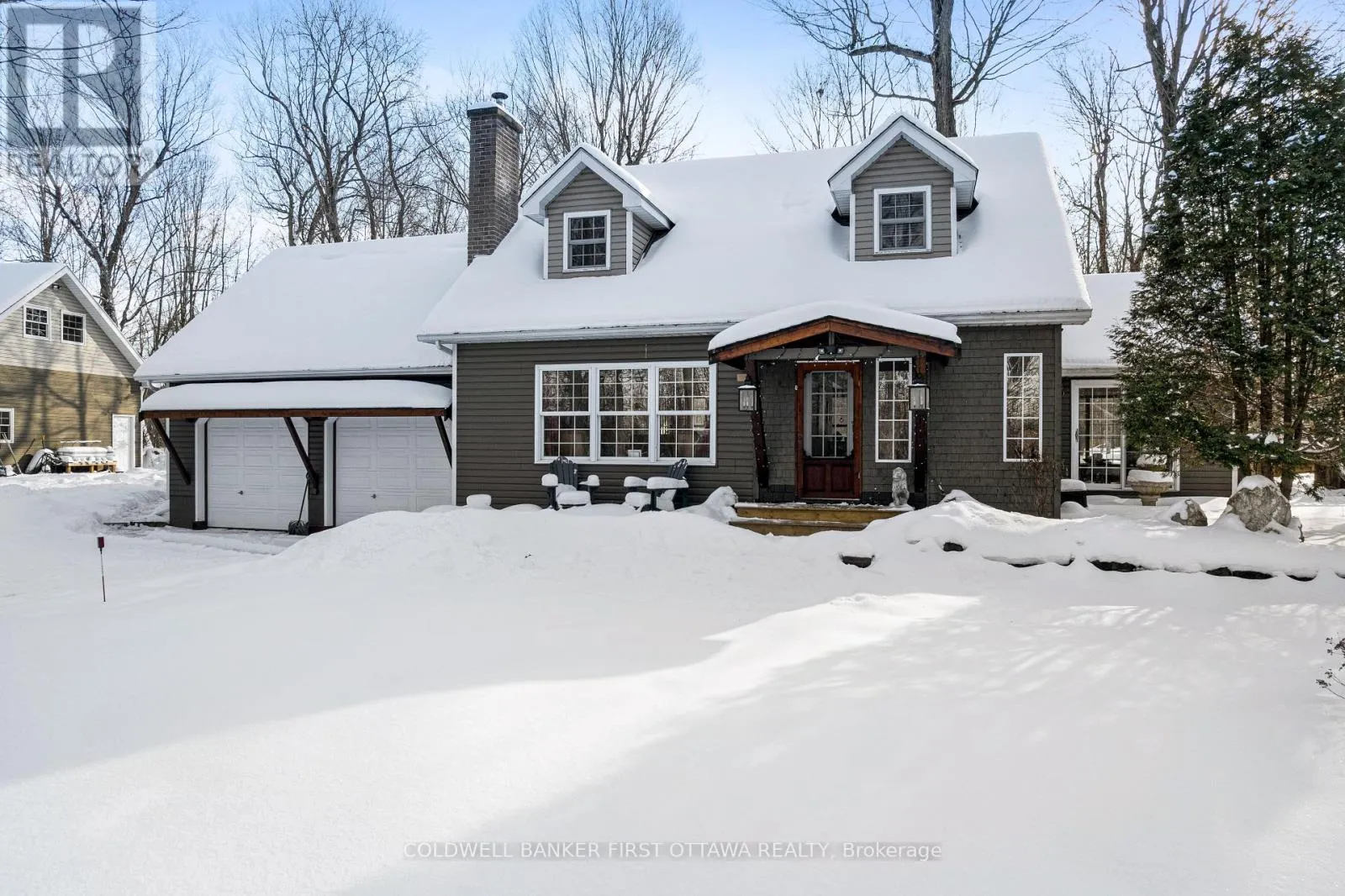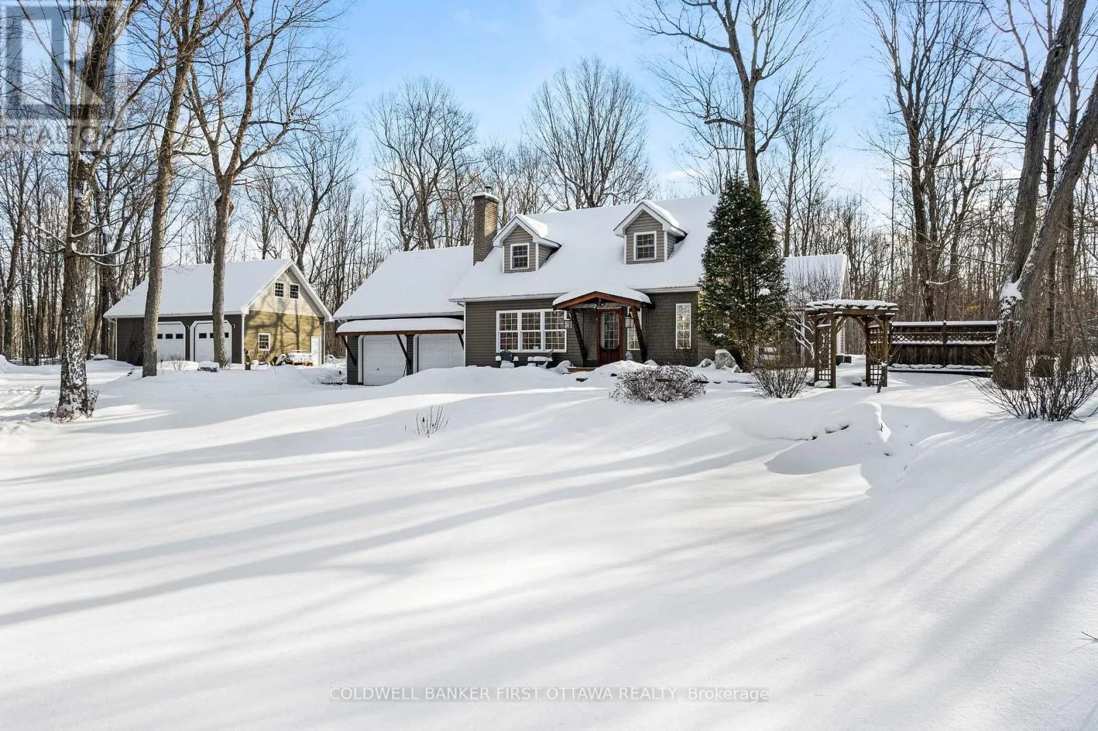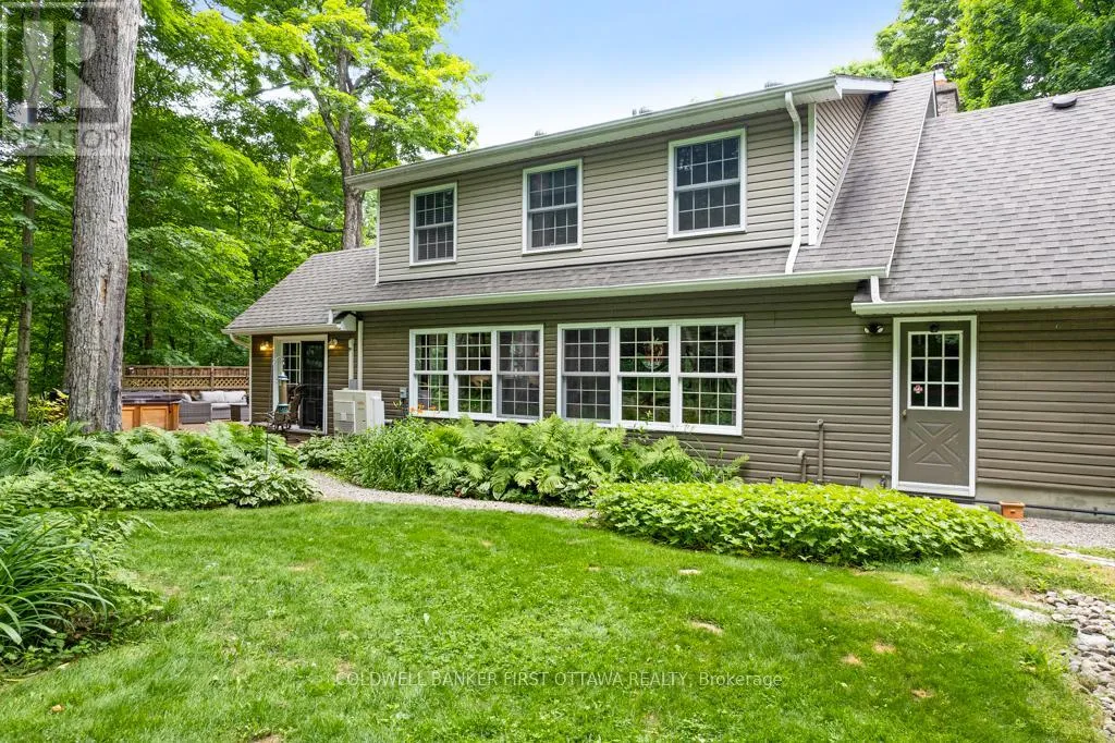 Cross Streets: Rideau Ferry Road. ** Directions: Hwy 7 to Perth. South thru Perth. Continue south on Rideau Ferry Rd (County Rd #1). Right on Old Kingston Road to Pin #99. Or from Smiths Falls, south on Hwy 15. Right on Rideau Ferry Rd. Left Old Kingston Rd to Pin #99. Easy to fall in love with this irresistible Cape Cod home and its landscaped gardens blending into the surrounding tranquility. On private acre that feels like a park, the three bedroom home has attached double garage plus detached double garage-workshop. The front walkway has deck perfectly designed for quiet times, watching spring perennials bloom and birds sing. Light-filled foyer adjacent to coat room with large windows. Open floor plan offers defined family spaces; never-ending walls of windows, maple floors and 8' ceilings with high-end recessed lights. Livingroom full of natural light flowing in from oversized windows and has stone fireplace with Jotul woodstove insert. Dining room wall of windows frame great outdoors. Contemporary 2022 kitchen with quartz counters, ceramic matte backsplash, island-breakfast bar, upscale appliances and Tiffany lights. Dinette has full-length windows giving you views of backyard oasis. Family room three sets of patio doors open to wrap-about deck with 2023 salt-water Artic Spa hot tub. Combined powder room & laundry station renovated 2024 with slate-like tile floor, decorative copper sink, custom wrap-about counter & shiplap ceiling. Mudroom door to garage and also door to yard. Upstairs, you have office/flex room. Sunny spacious primary bedroom deep window dormers with built-in bench and, walk-in closet with window. Two more large bedrooms, one with walk-in closet. Second floor bathroom a delight; all renovated 2023 with gorgeous custom vanity & luxury rain-head glass shower. Home has radiant hot water heating with wall radiators and 2025 propane boiler. Mini-split 2019 A/C. Hot water on demand 2025. Auto Generac can power whole home. Attached garage has epoxy floor & 240 V. Detached garage insulated, 250V, hoist, floor drains, windows & big loft. Hi-speed. Cell service. Located on paved township paved road with garbage pickup & school bus route. Just 4 mins to Lower Rideau Lake boat launch. 10 mins to Smiths Falls or Perth. (id:27476)