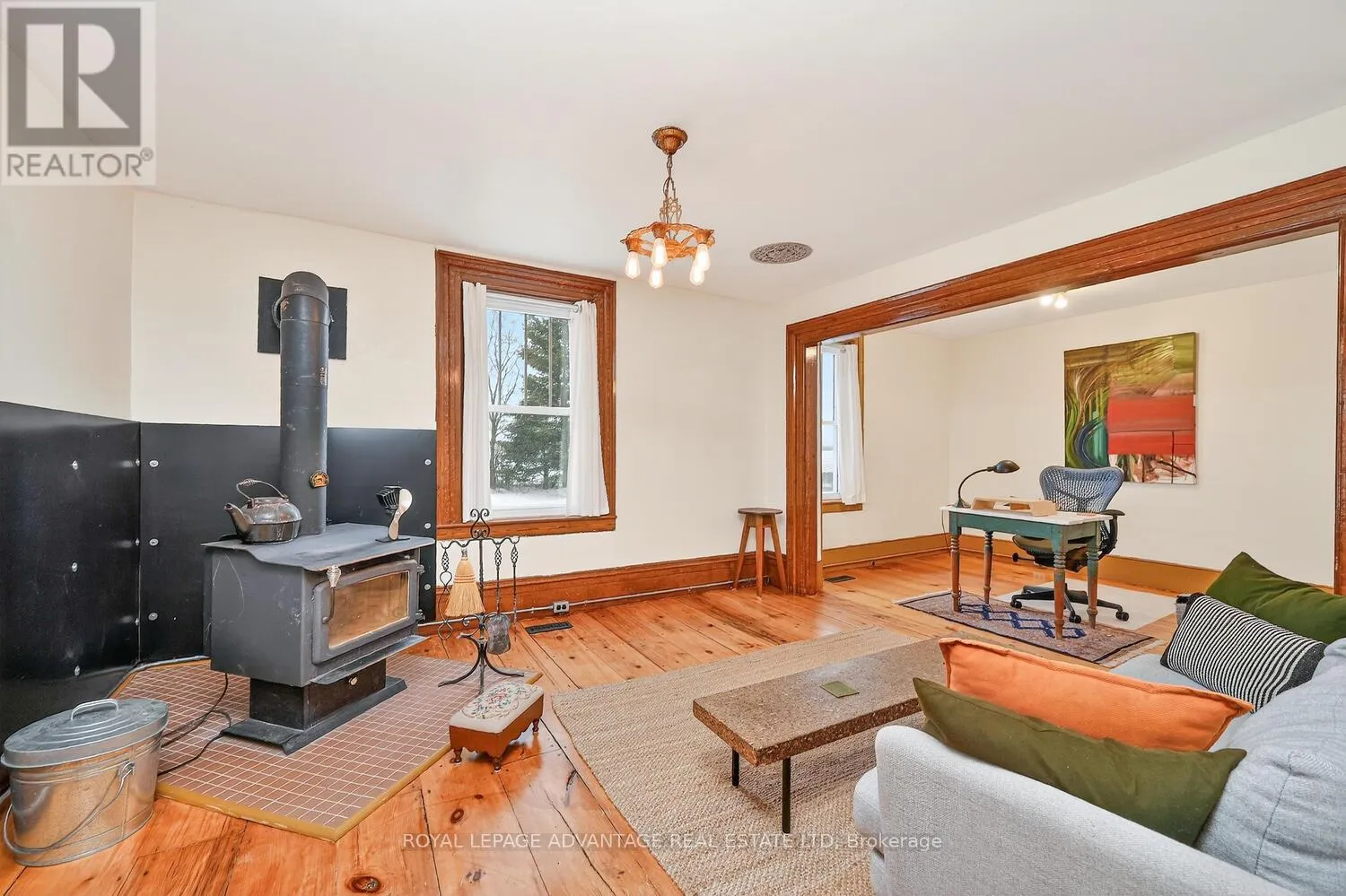 Cross Streets: Highway 15 And County Rd. 5. ** Directions: From Smiths Falls follow Highway 15 then left on County Rd. 5, right on Groulx Rd then right on Thousand Acre Rd and follow to property. From Portland tak Harlem Rd. to left on Thousand Acre Rd. Discover the perfect rural retreat in this beautifully maintained 1 1/2 story country home, ideally located just minutes from the village of Portland. Framed by farmland, this property makes a wonderful first impression with its white siding, durable steel roof, and a vibrant red front door that welcomes you into a large, bright sun porch. Inside, the home blends character with modern feel, featuring broad plank pine floors, original baseboards, and elegant "reproduction" tin ceilings throughout several rooms.The thoughtful layout offers 3 bedrooms and two updated 3-piece bathrooms (completed in 2023), including one with a soaking tub and another with a standalone shower. The primary suite provides exceptional flexibility, featuring an adjacent bonus room perfect for a nursery, home office, or a dream walk-in closet. For those who work from home, stay connected with high-speed internet provided by WTC, ensuring you never have to sacrifice productivity for peace and quiet.This home is as functional as it is beautiful, boasting significant mechanical and energy upgrades. A modern heat pump, supplemented by a cozy wood stove for those crisp winter nights. The home has been enhanced with updated windows and professional spray foam insulation in both the attic and basement. With a septic system, survey, and well documentation all on file, plus updated plumbing (2023) and additional outbuildings for storage, this turn-key property is ready for its next owner. (id:27476)