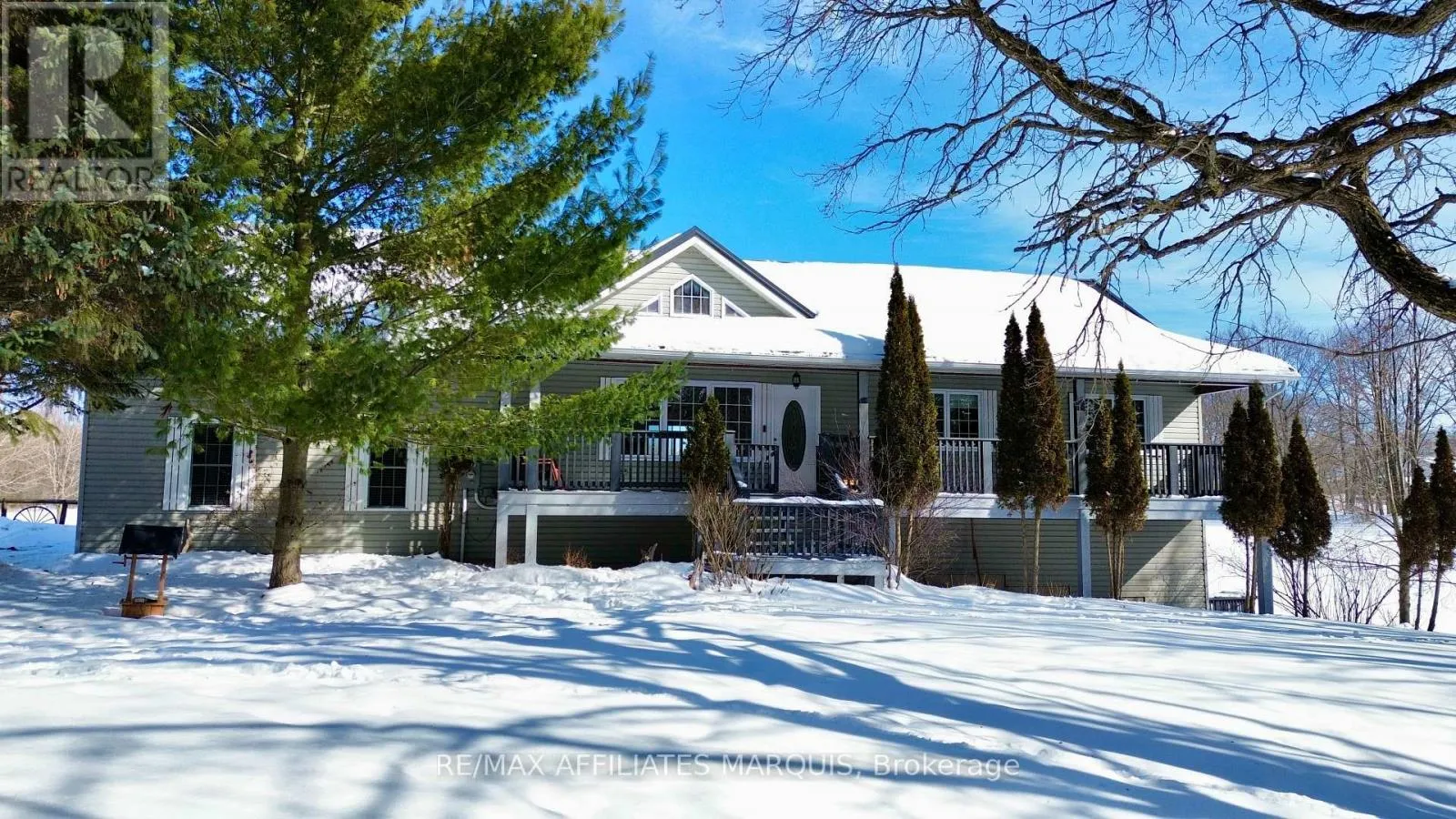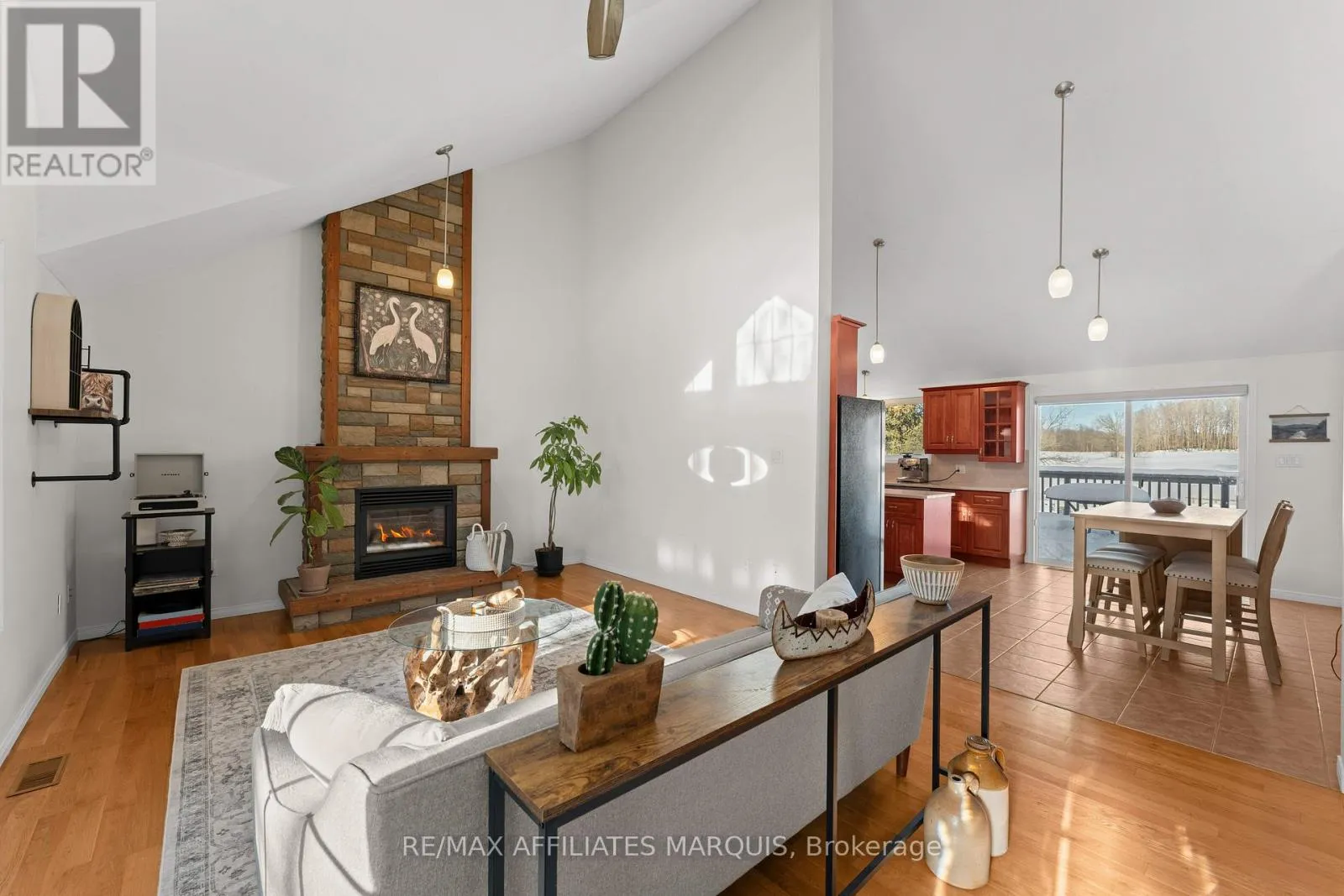 Cross Streets: 42. ** Directions: Heading North on 42 turn right on to Sunny Side Road. Welcome to 63 Sunnyside Road. Just minutes from the village of Westport, this immaculate raised bungalow offers the perfect blend of modern comfort and peaceful country living. This home is set on a picturesque lot surrounded by mature trees and open countryside. A covered front porch welcomes you into a bright sun filled home where soaring cathedral ceilings, expansive windows, and beautiful hardwood floors enhance the main living space with warmth and natural light. A striking propane fireplace serves as a beautiful focal point, adding character to the open concept design. The custom kitchen features quartz countertops, ample cabinetry, a well placed island and patio doors leading to a large rear deck ideal for entertaining or relaxing while enjoying views of local wildlife. The main level offers two generous bedrooms including a primary retreat with a 3-piece ensuite and a dedicated office space that provides an excellent work from home or hobby space. A full 4-piece bath, main floor laundry, and direct access to the oversized 21' x 26' attached garage add everyday convenience. The garage includes in floor radiant heat making it perfect for a year round workshop space. The lower level is bright and exceptionally versatile complete with in floor radiant heating for added comfort. It features a third bedroom with its own 4-piece ensuite, a spacious family room/recreation area and walkout access well suited for guests or multi generational living. Recent updates include paint, an architectural metal roof (2024), and several new windows (2024) adding peace of mind. Located minutes from Upper Rideau Lake, a public boat launch and the Westport Golf & Country Club, this property offers exceptional access to boating and golf while enjoying the privacy of a true country setting. (id:27476)