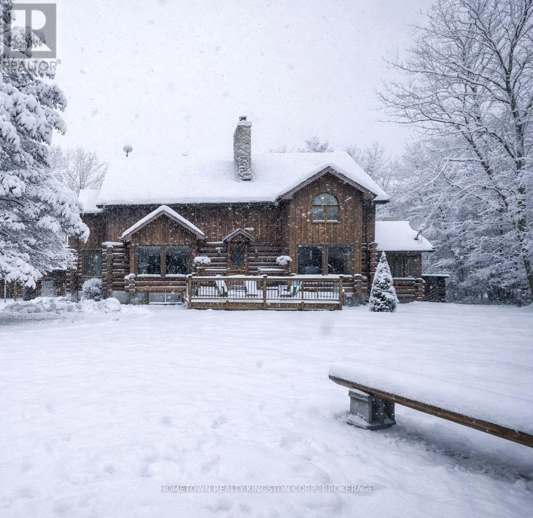 Cross Streets: Kitley South Elmsley Townline Rd. ** Directions: Best way: Highway 15 to Kelly's Rd. Welcome to Wildwood - a beautiful log home country retreat on 3.5 acres located in the Rideau Lakes area, only 10 minutes to Smiths Falls and equal distance between Kingston and Ottawa. Featuring kidney shaped inground pool, gorgeous landscaping, 2 screened in gazebos, firepit, upper & lower decks, plenty of places to relax & enjoy! Upon entry of this home you'll notice cathedral ceilings, 2 storey double sided stone fireplace, hardwood floors, country kitchen with walk in pantry, granite island, peaceful dining room, picturesque views from all the windows, 2 bedrooms & a bathroom on the main floor, Scarlett O'Hara staircase to the upper level with loft, primary suite with walk in closet & 4pc ensuite, a den with door to upper deck overlooking the pool & gardens. The lower level has plenty of space for rec room, storage, workshop & has multi generational living appeal or in law suite potential, with separate access to the backyard. There is also potential multi-generational use! The detached garage is amazing with room for 2 cars plus all the toys, radiant floor heating, hydro & water, another office space, mudroom area for the pool, and an upper loft that could be used as a games room, gym , studio or many other uses. (id:27476)