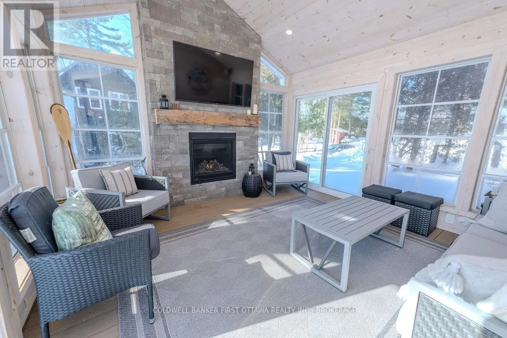 Cross Streets: King (County Road 42) and William. ** Directions: King Street to William Street to Railroad Street to LB 7A. There are waterfront homes, and then there are homes that feel inseparable from the water. This light-filled retreat on Lower Beverley Lake belongs firmly in the latter category. Completely transformed by a major renovation just six years ago, this property offers the rare combination of a like-new home built just steps from the shoreline. New loft, kitchen, windows and doors, siding, lighting, electrical, a metal roof, and a full-length composite deck spanning the front of the home ensure years of worry-free enjoyment. In 2024, a beautiful three-season sunspace with gas fireplace deepened the indoor-outdoor connection, followed by a new bathroom in 2025 and a brand-new ensuite in 2026. To call this home "like new" is no exaggeration.There is something about this property that invites slow mornings. Sunlight pours through a wall of windows, and catching the shimmer of the water from inside can quite literally take your breath away. A deep exhale. A quiet sigh. This is the kind of place that slows you down without asking.What truly sets this home apart is something that can no longer be recreated. You simply can't build this close to the water anymore. The lake feels present in every room, with expansive views across the bay and a powerful sense of connection whether you're inside or out.The large, level lot invites lawn games, gatherings, and relaxed afternoons by the water. A flagstone sitting area with fire pit offers space for a crowd and long evenings under the stars. Inside, the layout is equally accommodating, with two bedrooms and a spacious loft that easily fits multiple beds while still leaving room to move. Need even more space? A generous bunkie with wood stove is ready to host overflow guests in every season. Lower Beverley Lake is a gem, and this home is something truly special. Nothing to do but move in, exhale, and begin enjoying the lake life you've been dreaming of. (id:27476)
