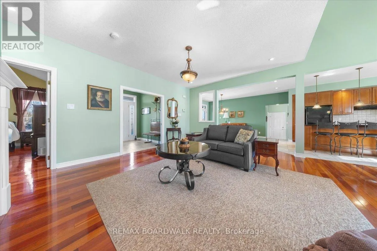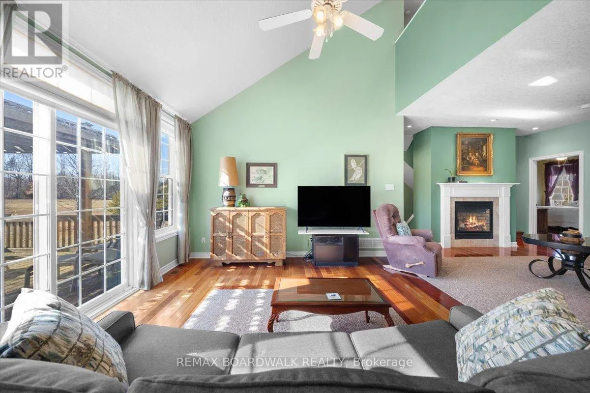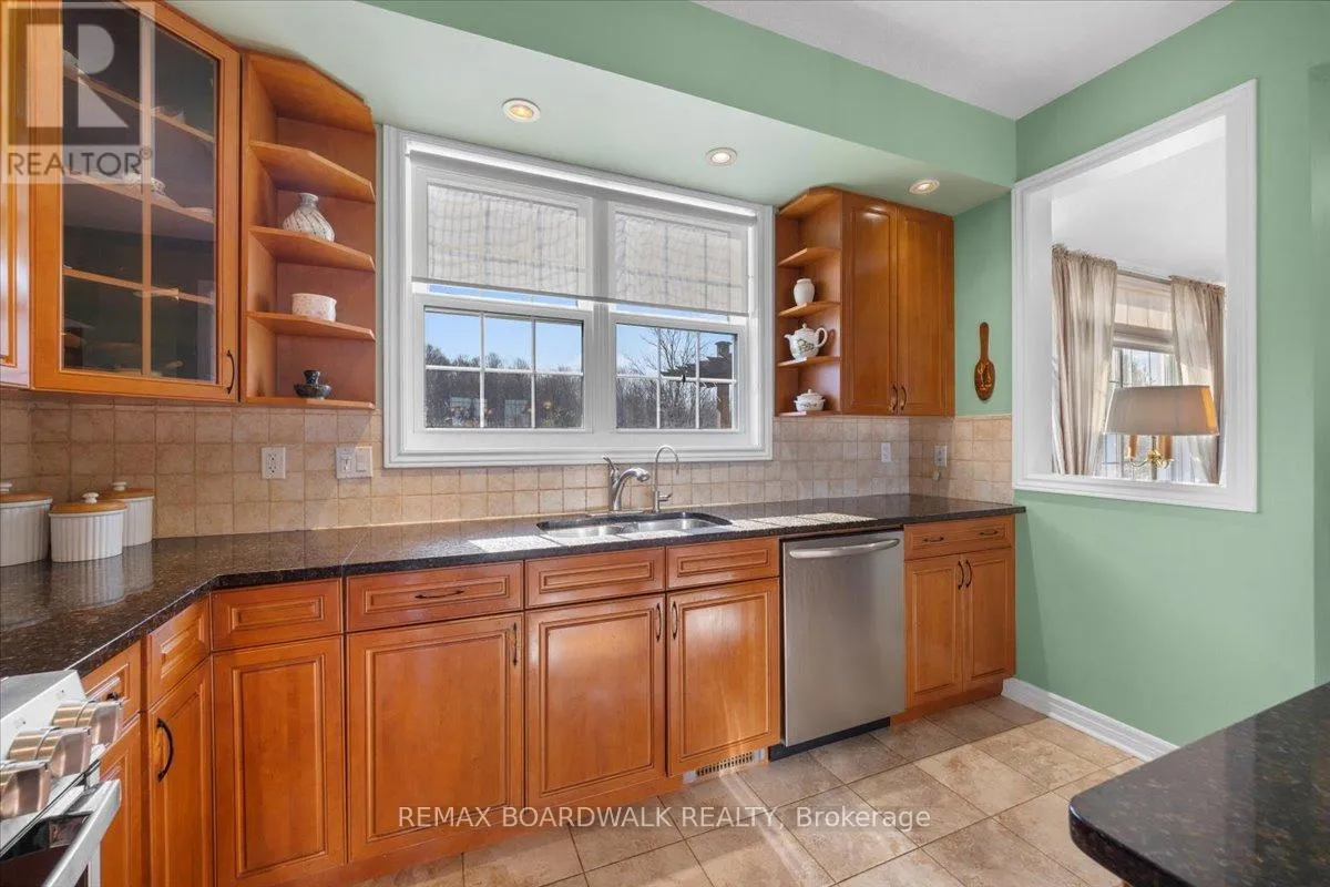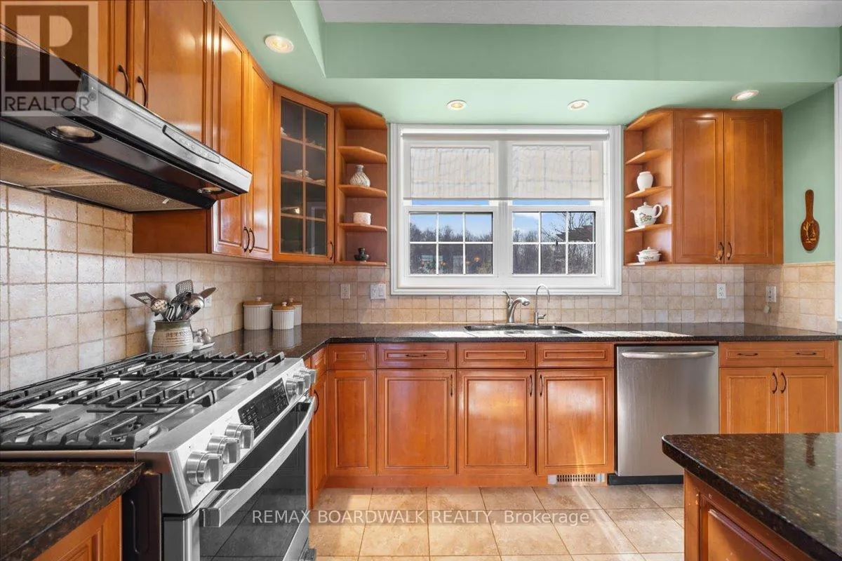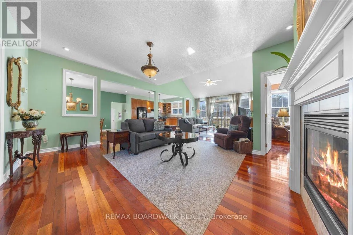 Cross Streets: Rideau Lakes. ** Directions: From Smiths Falls follow Hwy 15 south to Big Rideau Lake Rd. Turn right on Big Rideau Lake Rd. and follow to stop sign. At stop sign turn right onto Sheldon Rd. and follow to Horace Dr. on left. Sheldons Landing Estates on the Big Rideau. Positioned on a private 2.187 acre lot w/water views, this 4 bedroom bungalow loft is defined by its scale, proportion, & connection to the surrounding landscape, w/access to a private sandy beach, dedicated dock space, & boat launch. A covered front veranda w/lake view introduces a composed façade & leads to a tiled foyer w/French pocket doors. The main level is organized under 9 foot ceilings w/hardwood flooring & a balanced, open-concept plan. The centre island kitchen is appointed w/granite surfaces, tile backsplash, recessed sink beneath an overhead window, gas range, & extensive cabinetry, flowing directly into the dining area w/walk-in pantry & exterior access.Principal living spaces are anchored by a gas fireplace w/custom hearth, while the adjoining family room is distinguished by vaulted ceilings & a full wall of west-facing glazing, creating strong visual continuity w/the exterior & access to the rear deck w/pergola. The main floor primary suite is defined by cathedral ceilings, walk-in closet, & a private ensuite. A secondary bedroom or den, powder room, laundry, & direct access to the finished three car garage complete the main level. An open stair rises to a loft-style landing overlooking the lower level, leading to two additional bedrooms & a full bath. The lower level remains unspoiled, offering flexible future development. Site features include a paved driveway, interlock walkway, year-round road access, & high-speed internet. Located minutes to Portland amenities and the Rideau Lakes system. Annual water front lot fee of $250 includes beach access, insurance, & maintenance. 24 hour irrevocable on all offers. (id:27476)