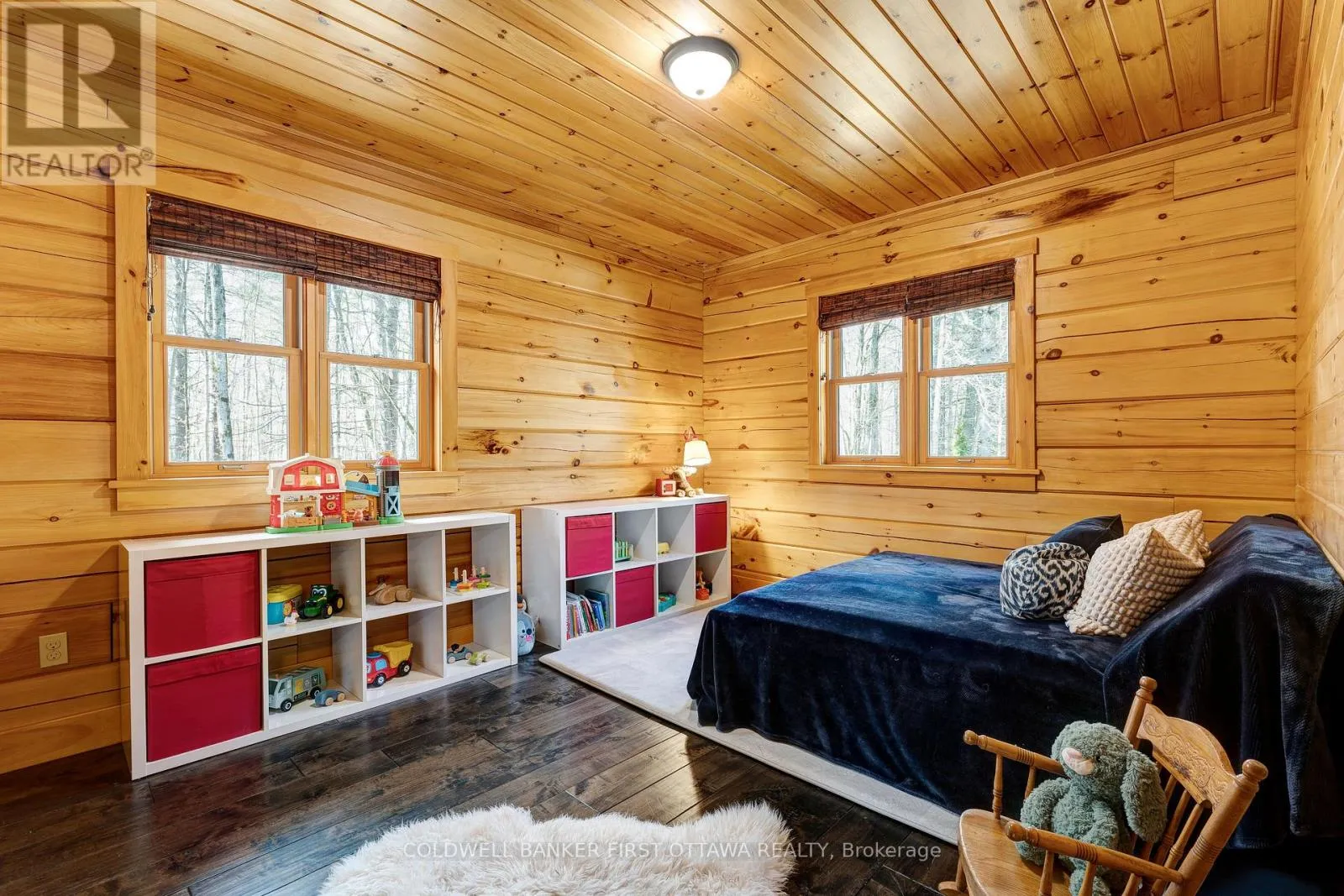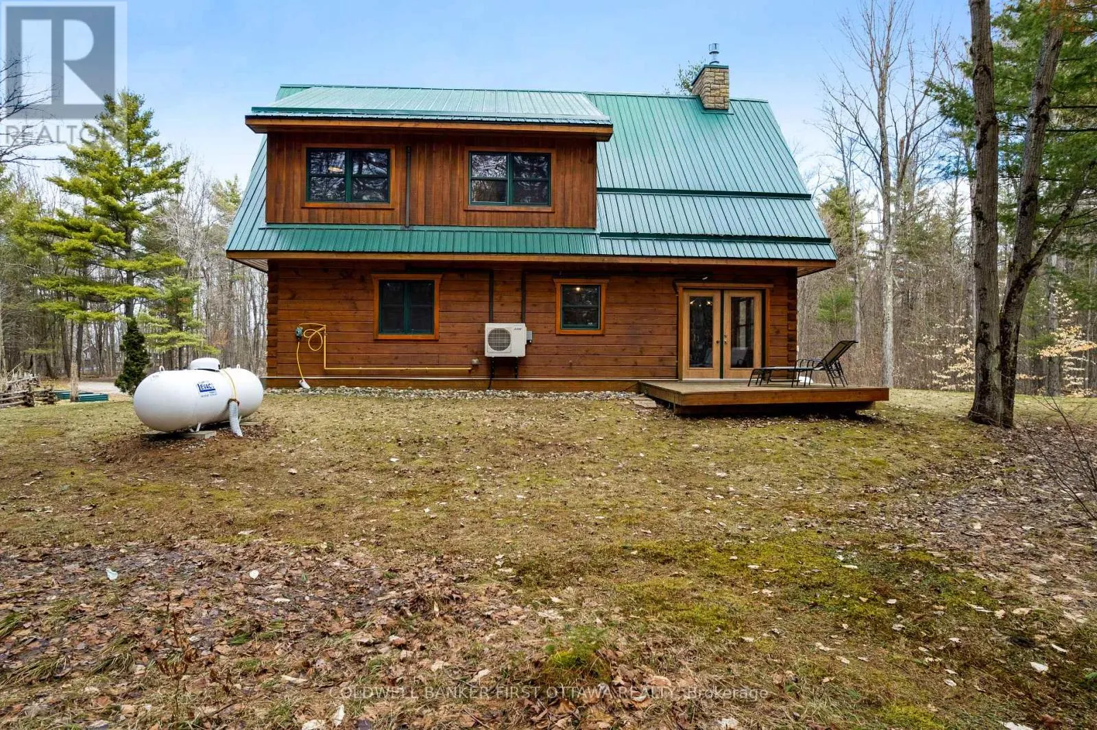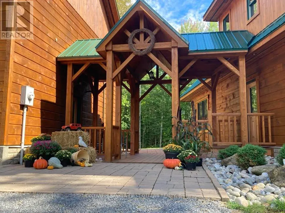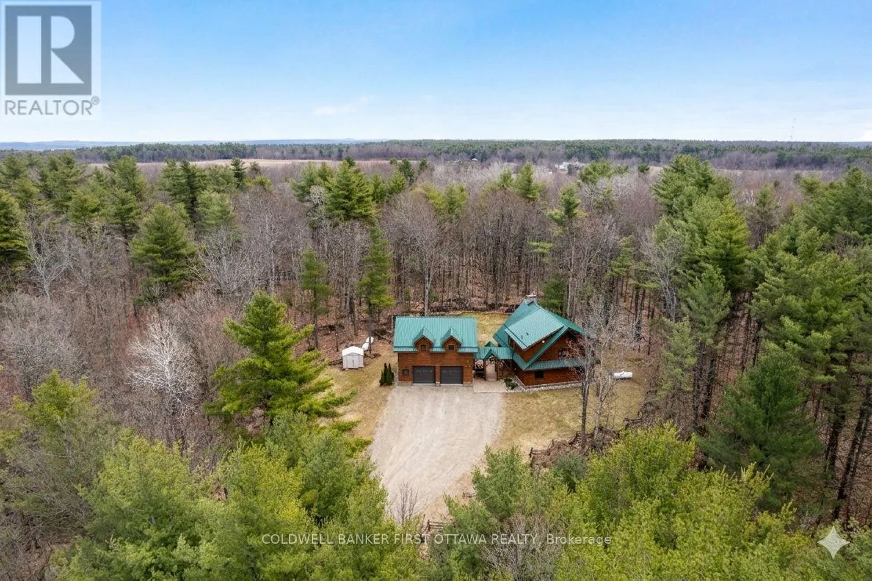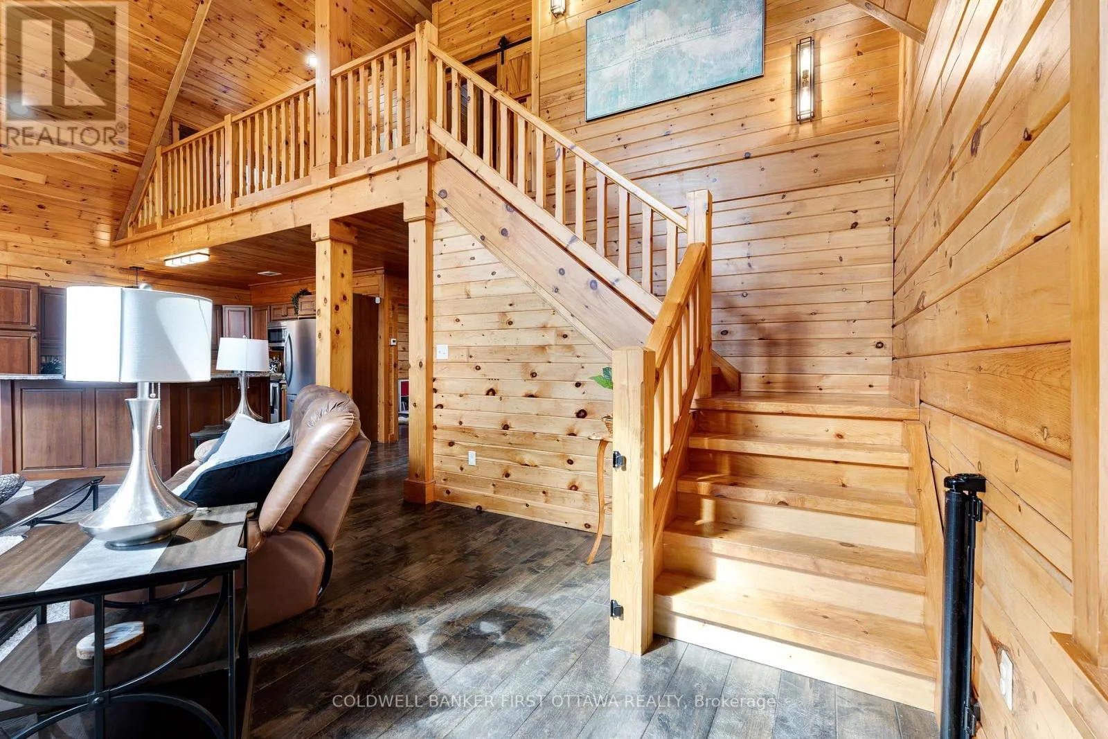 Cross Streets: HWY 15 & Mallens Rd. ** Directions: From Elgin, head south on HWY 15, turn right onto Mallens Rd. Tucked away on a quiet dead end road, this beautifully crafted log home offers the perfect blend of comfort, privacy, and year-round outdoor enjoyment on 8.7 acres of scenic woodland. Built in 2013, the home welcomes you with a stunning vaulted ceiling, a cozy fireplace, and expansive gable windows that frame the surrounding forest like living artwork, bringing in natural light and ever changing views of wildlife. The main level features two bedrooms, while the upper loft offers a versatile office or studio space, along with a spacious primary retreat complete with a full 4pc ensuite. A covered walkway connects the home to the oversized garage, which is much more than just parking! Above, you'll find a fully finished loft with a living room and bedroom, complete with its own heat and A/C (mini split and electric fireplace), making it ideal for guests, extended family, additional workspace, or potential for in-law suite. Both the home and garage are equipped with in-floor heating for efficient, year round comfort. Outside, explore your own private trail system winding through the trees, complete with charming wooden bridges. In the winter months, enjoy the rare luxury of skating through the forest right on your own property! Additional features include an EV charger outlet, exceptional privacy, and a setting that feels like a true escape, while still being within reach of everyday amenities - only 4 minutes to Elgin for groceries, schools, restaurants and shops. 7 minutes to Sand Lake, 20 mins to Westport, 41 mins to Kingston, 38 mins to Perth. (id:27476)