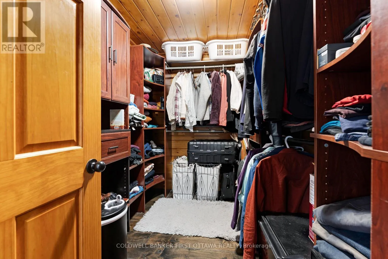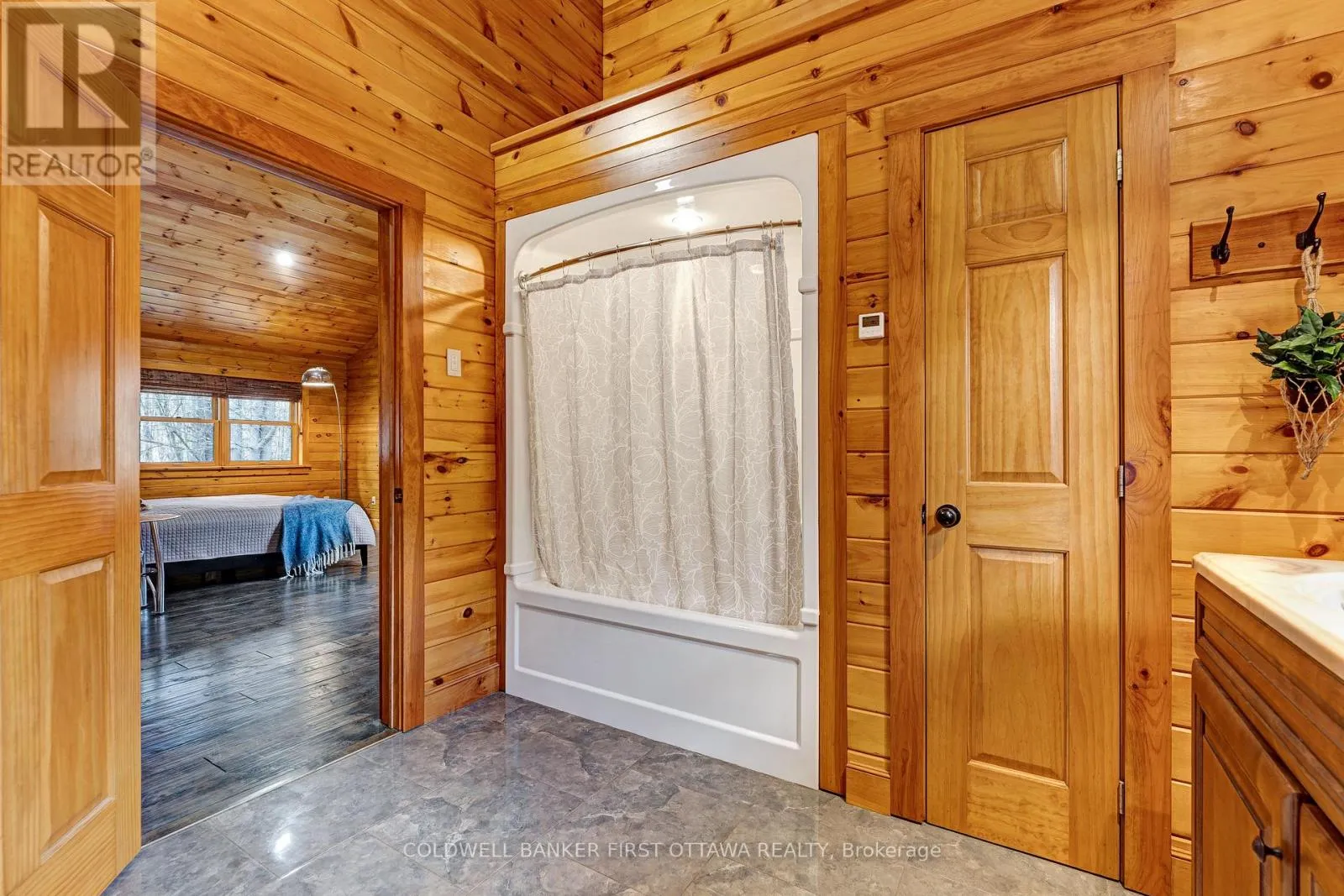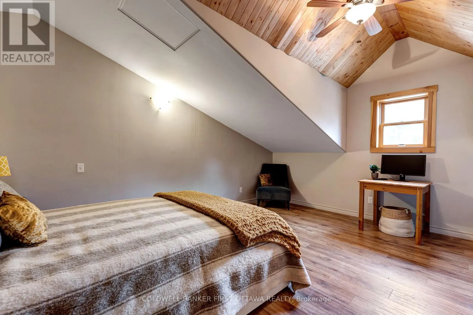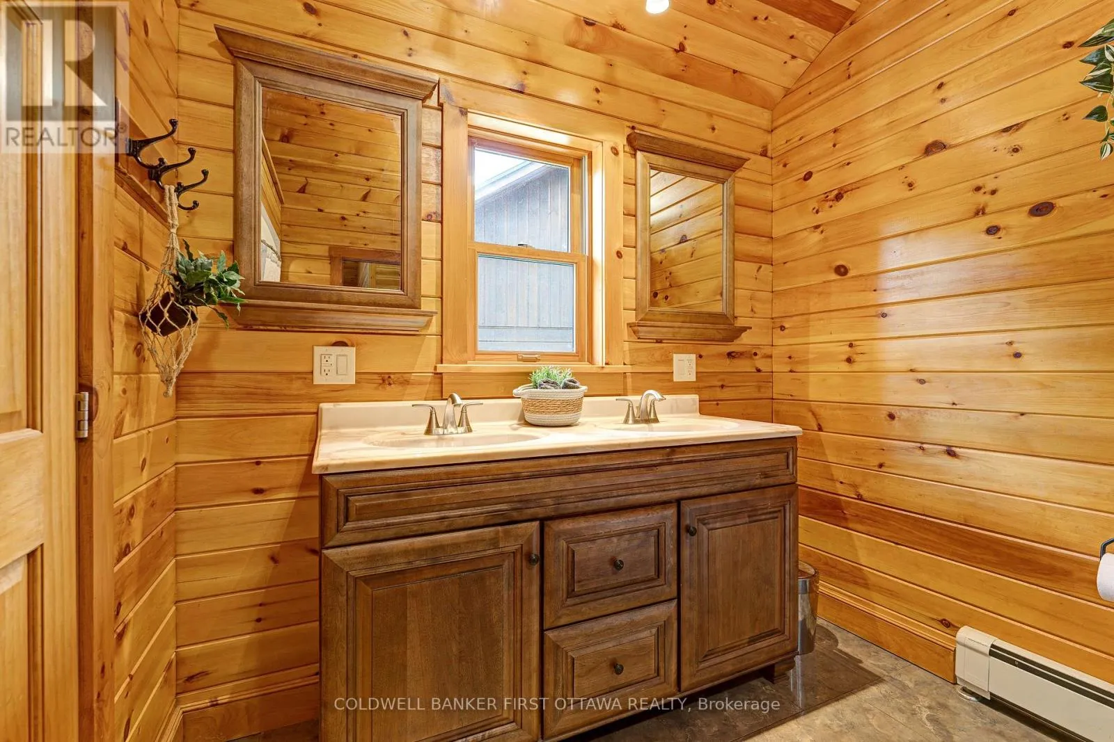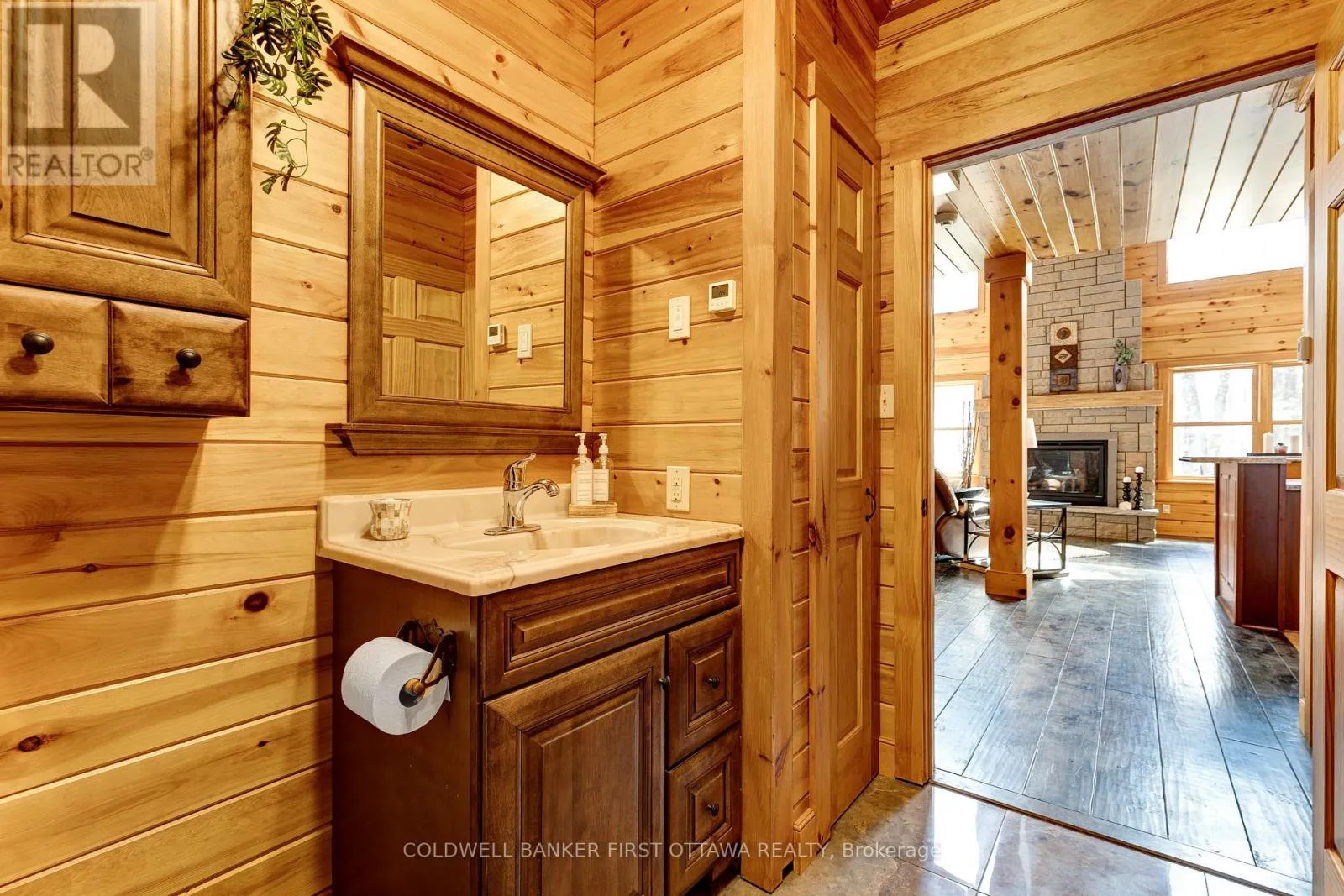 Cross Streets: HWY 15 & Mallens Rd. ** Directions: From Elgin, head south on HWY 15, turn right onto Mallens Rd. Tucked away on a quiet dead end road, this beautifully crafted log home offers the perfect blend of comfort, privacy, and year-round outdoor enjoyment on 8.7 acres of scenic woodland. Built in 2013, the home welcomes you with a stunning vaulted ceiling, a cozy fireplace, and expansive gable windows that frame the surrounding forest like living artwork, bringing in natural light and ever changing views of wildlife. The main level features two bedrooms, while the upper loft offers a versatile office or studio space, along with a spacious primary retreat complete with a full 4pc ensuite. A covered walkway connects the home to the oversized garage, which is much more than just parking! Above, you'll find a fully finished loft with a living room and bedroom, complete with its own heat and A/C (mini split and electric fireplace), making it ideal for guests, extended family, additional workspace, or potential for in-law suite. Both the home and garage are equipped with in-floor heating for efficient, year round comfort. Outside, explore your own private trail system winding through the trees, complete with charming wooden bridges. In the winter months, enjoy the rare luxury of skating through the forest right on your own property! Additional features include an EV charger outlet, exceptional privacy, and a setting that feels like a true escape, while still being within reach of everyday amenities - only 4 minutes to Elgin for groceries, schools, restaurants and shops. 7 minutes to Sand Lake, 20 mins to Westport, 41 mins to Kingston, 38 mins to Perth. (id:27476)