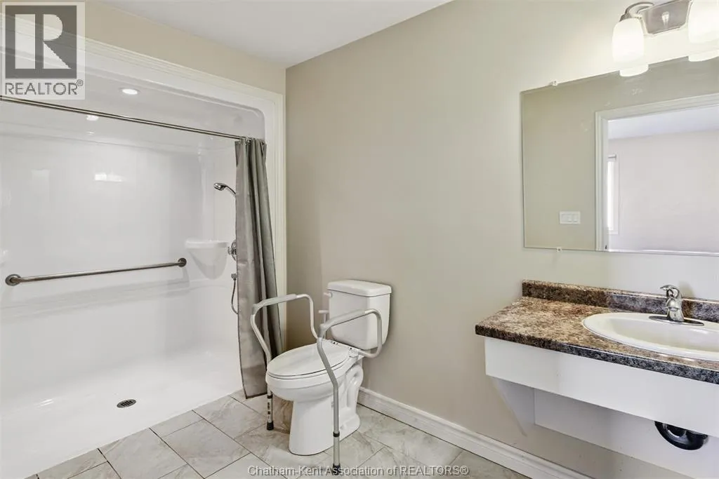 Main Street South on Maple turns to Goodal then to Kyle Searching for an accessible home? 23 Kyle Drive in Ridgetown is a perfect opportunity. 11 year old, one floor ranch style with wheelchair ramp access, wider doors, grab bars, open concept living space and a barrier free shower in the primary ensuite. The layout features the front entrance foyer with convenient laundry. Front room can be used as an office, reading room or the 3rd bedroom. Open concept kitchen, dining area and Living room with patio doors to rear wooden deck. 2nd bedroom also has access to the crawl space that is nice and high, concrete floor, neat and clean. Primary bedroom with double closet and the 3 pc ensuite. Ceramic and laminate flooring is ideal for this setup. The location is one of the best neighbourhoods with mainly local traffic, amazing walking trail nearby, mature trees and surrounded by unique homes in a high end subdivision. Concrete drive, custom shed, wooden deck and a natural gas generac generator in case of power outages. Although we have the accessible features this is a 3 bedroom home on one level, perfect for retirees and the location is top notch. Immediate possession if needed. (id:27476)