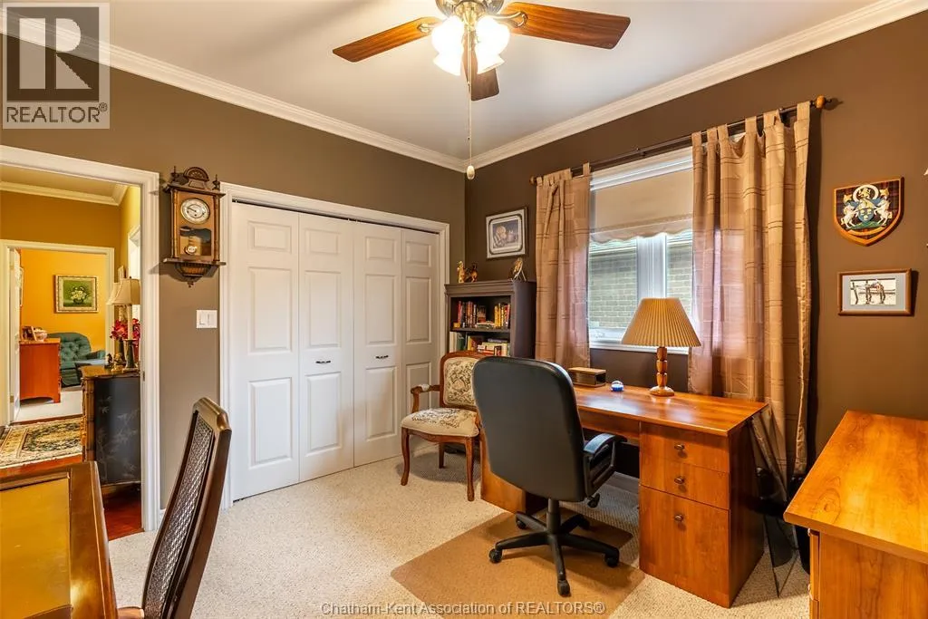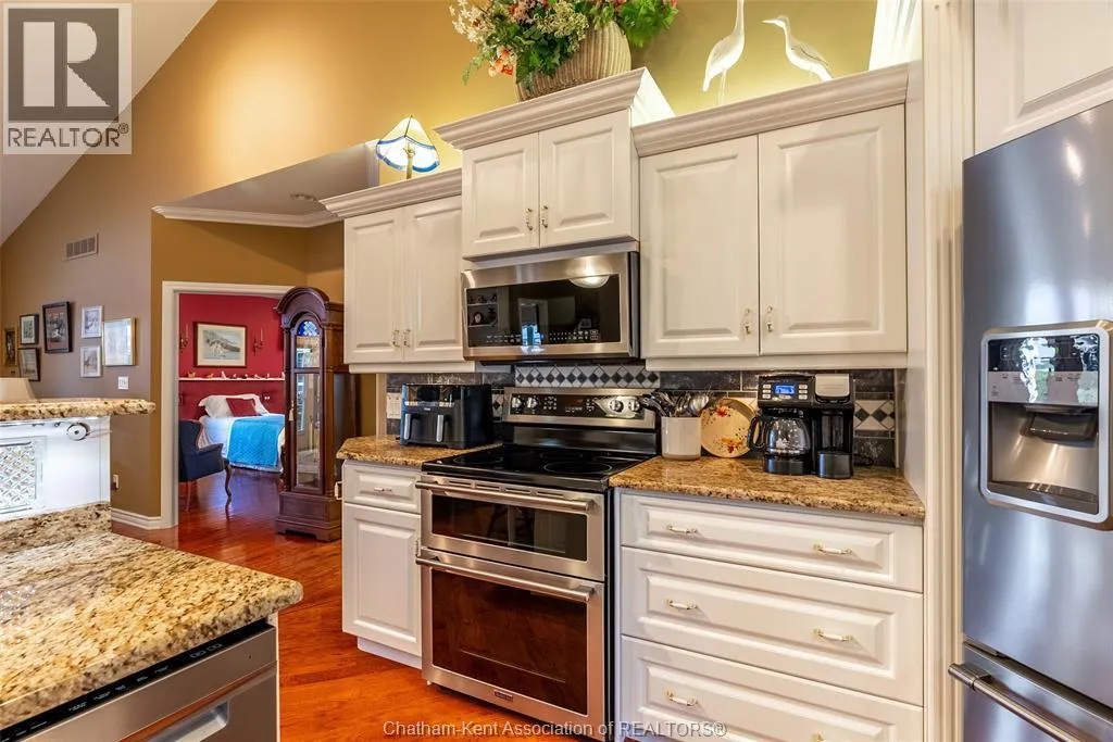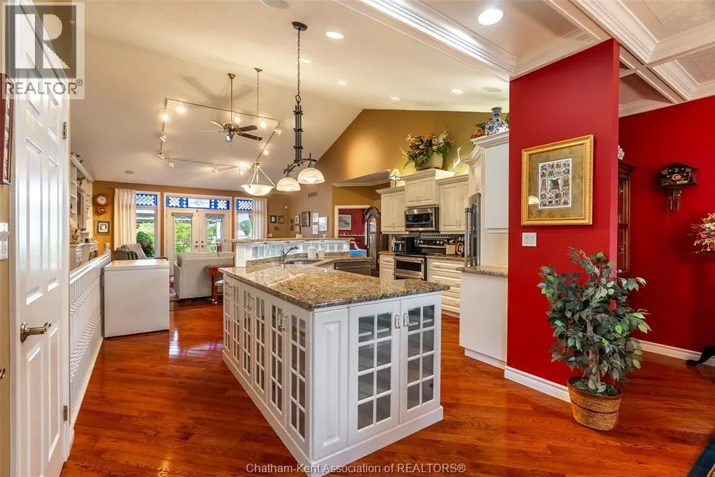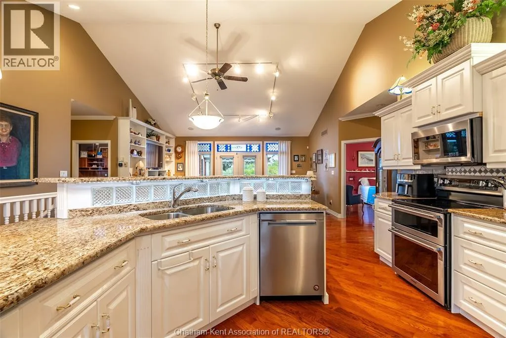 Exquisite 3 Bedroom, 3 Bath Brick Rancher on a Quiet Street with No Rear Neighbours Welcome to this stunning 2150 sq ft brick rancher that perfectly blends comfort, elegance, and practicality. From its timeless curb appeal to the thoughtful interior design, this home is sure to impress. Step inside to a bright, inviting layout featuring a central kitchen with granite countertops, an eat-at island, and seamless flow into the living and dining areas. A coffered ceiling, gas fireplace, and beautiful hardwood floors create an atmosphere of warmth and sophistication, while exquisite stained glass window accents throughout the home add timeless character. A charming family area with built-in shelving and a cathedral ceiling provides additional space to relax or entertain, with French patio doors leading to a beautifully manicured backyard complete with a pergola, and the peace of no rear neighboursâyour own private retreat. The primary suite boasts a walk-in his-and-hers closet and a luxurious 4-piece ensuite. Two additional bedrooms and a main 4 piece bathroom ensure space and convenience for family and guests.The four-season sunroom offers a light-filled space to enjoy the changing seasons, adding even more versatility to the main floor. Flooded with natural light the custom power window coverings in main living area provide privacy and control the amount of sunlight filtering in. The main level also features laundry with convenient access to the attached double garage. Basement entry from both inside the home and the garage provides easier accessibility and functionality. The unfinished portion of the basement offers incredible potential for future development to complete your dream home. The durable metal roof, power awning, sprinkler system and Generac generator add style, function, and piece of mind. Located on a quiet street yet close to all amenities, this home combines style, functionality, and privacyâtruly a rare find. (id:27476)