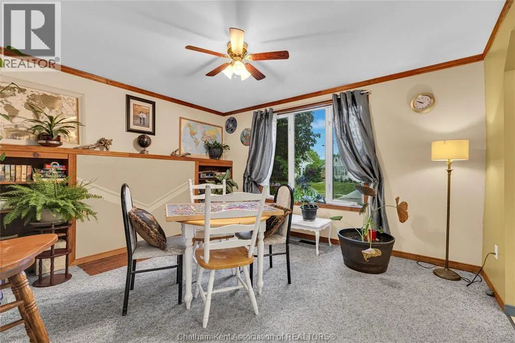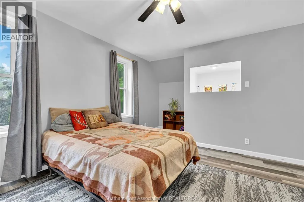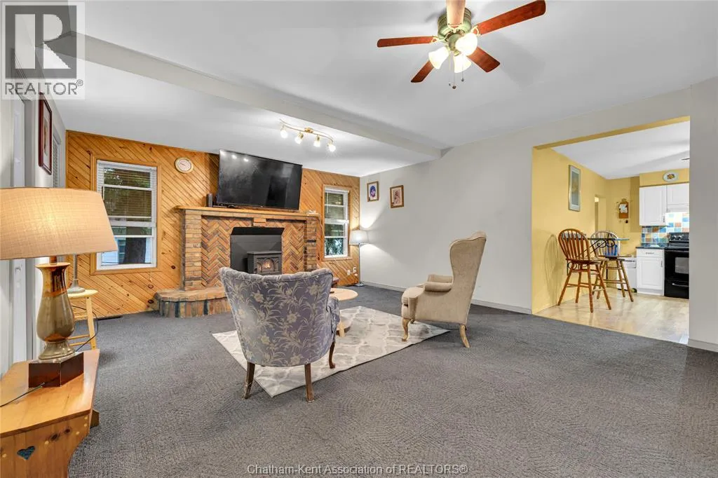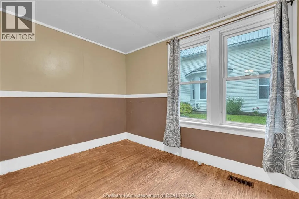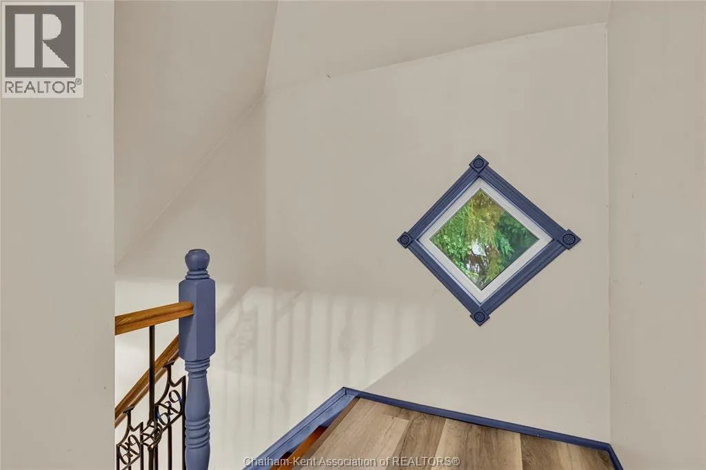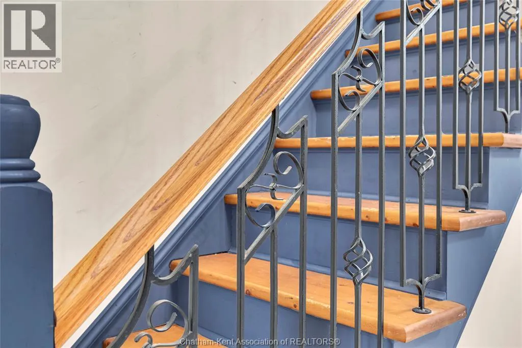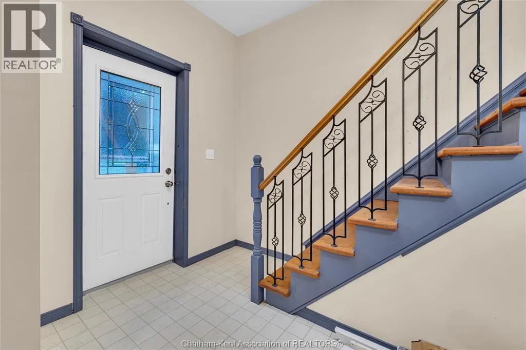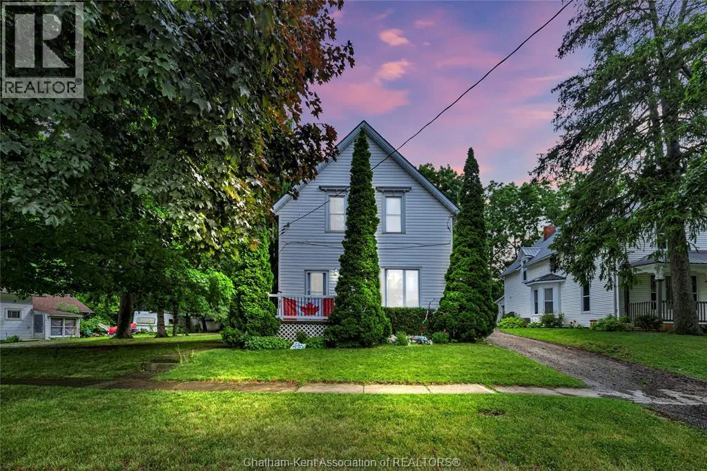 Escape the city to 25 Victoria Ave in Ridgetown, where architectural charm meets small-town living. Set on a mature, 1/3+ acre lot on one of Ridgetown's most desirable streets, this well-maintained 5-bedroom, 2-bathroom home offers a rare blend of history, space, and functionality. Walking into the generous foyer, you are greeted by an impressive original staircase and railing leading to the formal sitting room with a large bay window and a built-in library. A brick & stone wood-burning fireplace is an impressive feature of the large living room and is a timeless addition to this stately home. The functional kitchen offers plenty of space as well as an electric or gas stove hookup. Ground-level access to the backyard, 3 good-sized bedrooms, a 4-piece bath, and main floor laundry/mud room & access to the full basement round out the main level. The 2nd level of this grand home offers another 4-piece bathroom and 2 additional large bedrooms, each with large closets and plenty of natural light. The detached double garage is perfect for a mechanic or carpenter with hydro, fixed shelving, a long workbench, cement floor, and wood-stove chimney hookup, delivering all the modern amenities your handyman needs. The large back & side yard of this 1/3+ acre property is partially fenced and treed with perennial flowers & the large (partially shared) driveway has additional parking for 3+ vehicles. Additional features and upgrades include hardwood flooring throughout most of the main level, 200 AMP Service, bathrooms renovated 2023-2024, roof 2024, garage roof 2023, and new flooring on the 2nd floor 2024-2025. (id:27476)