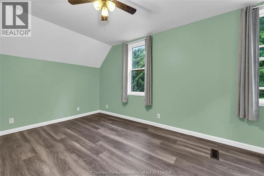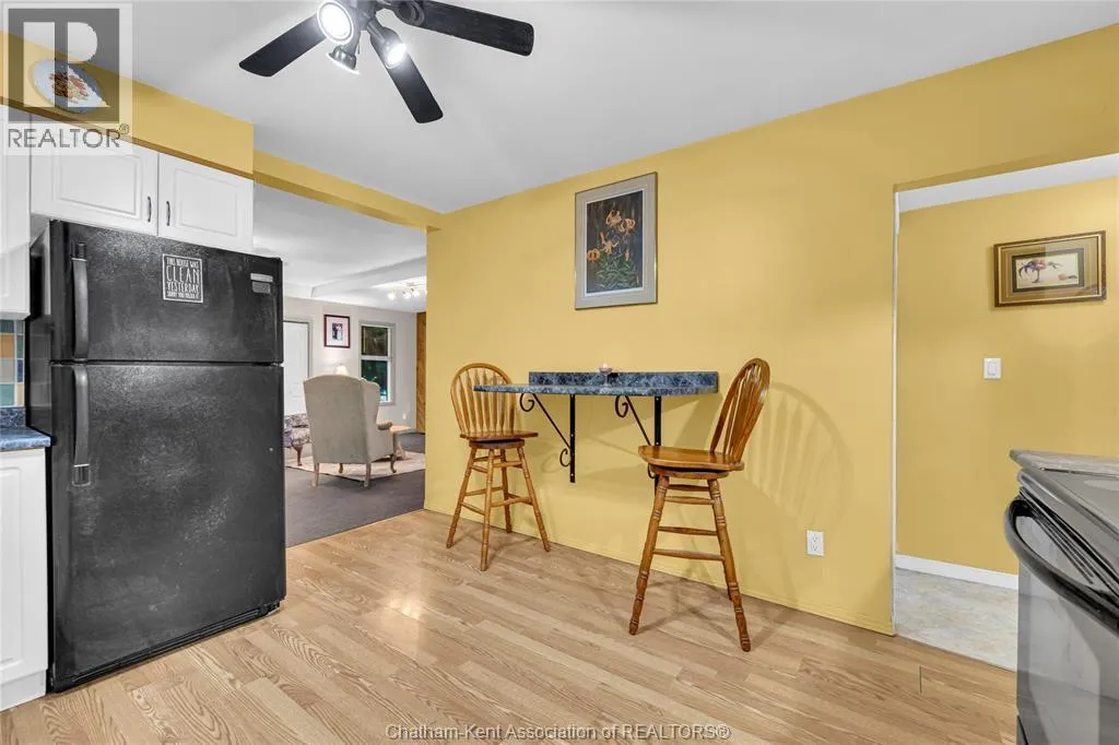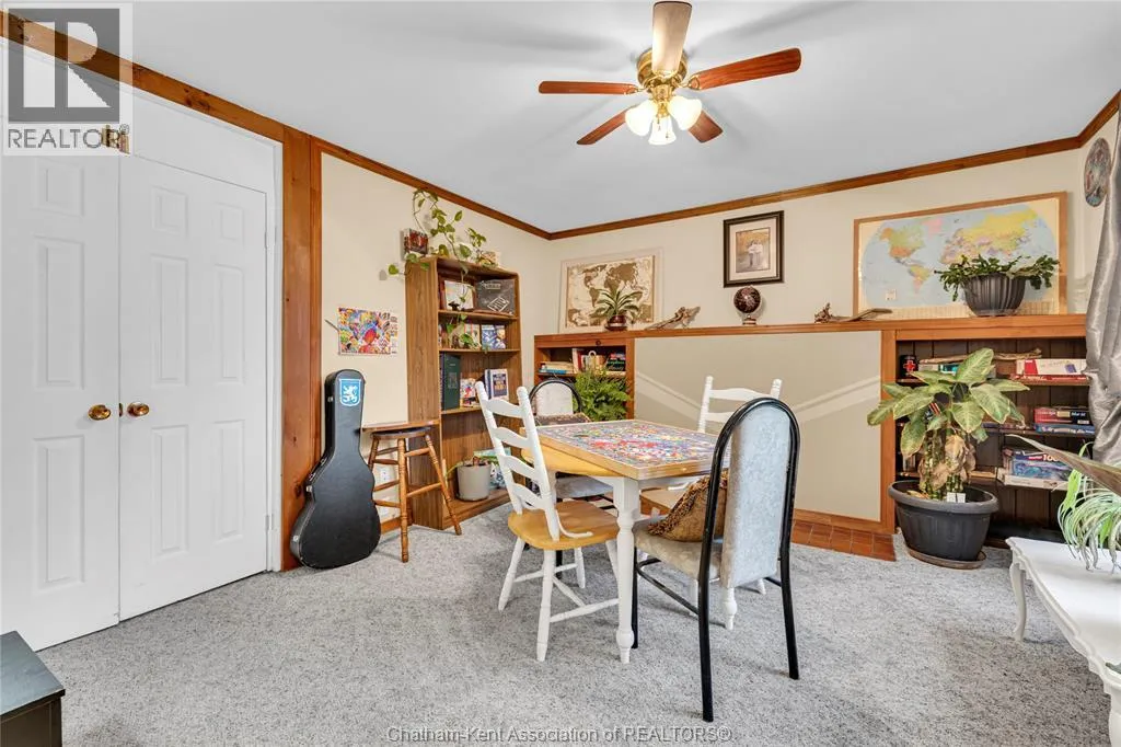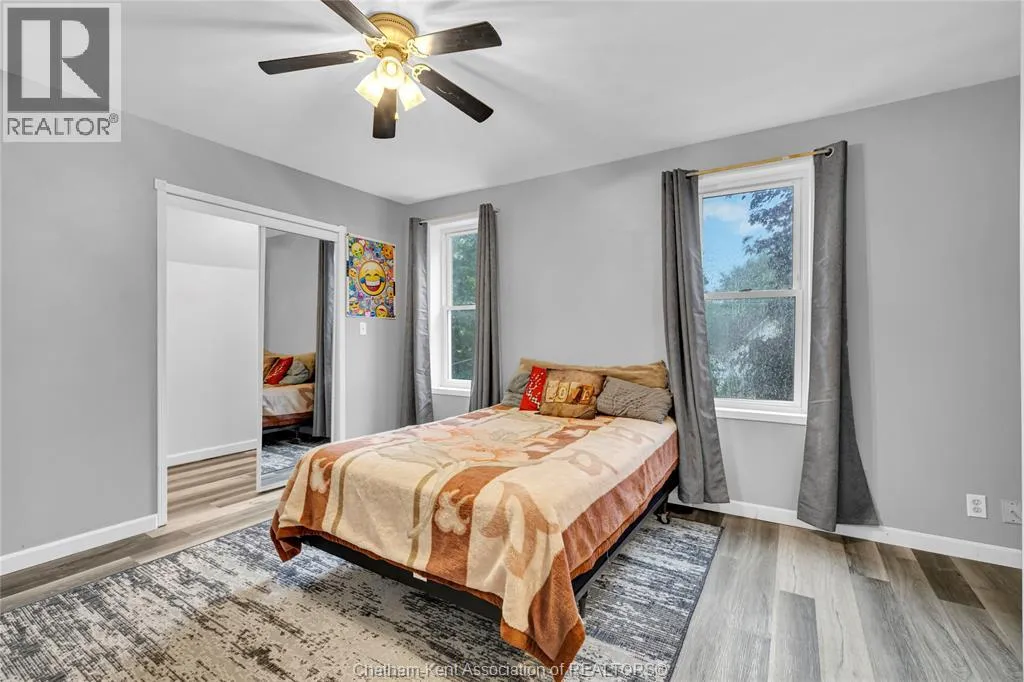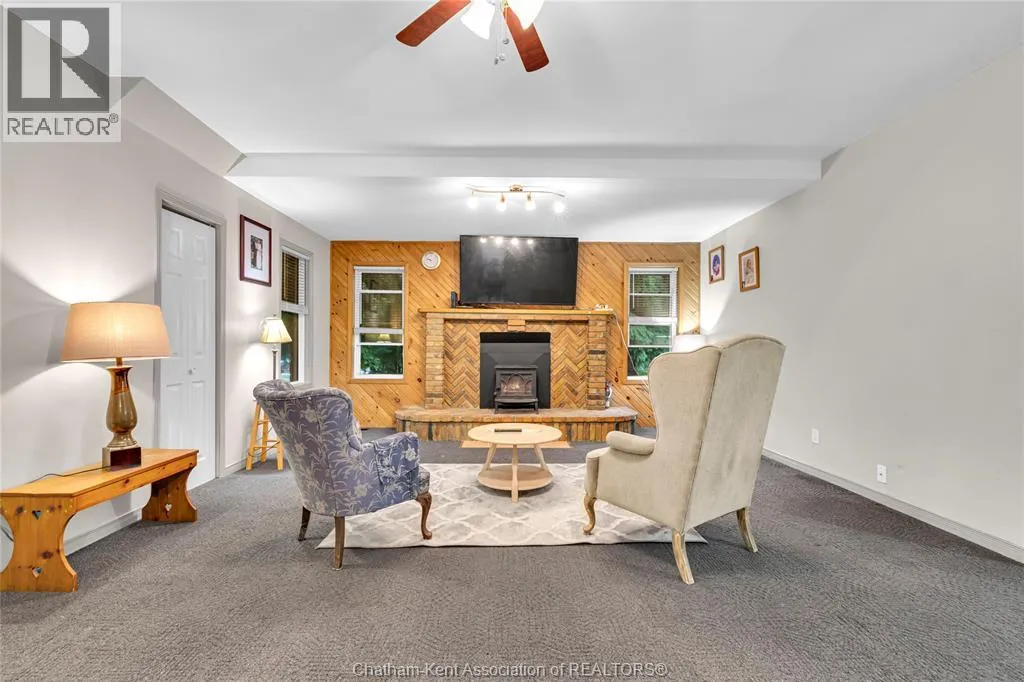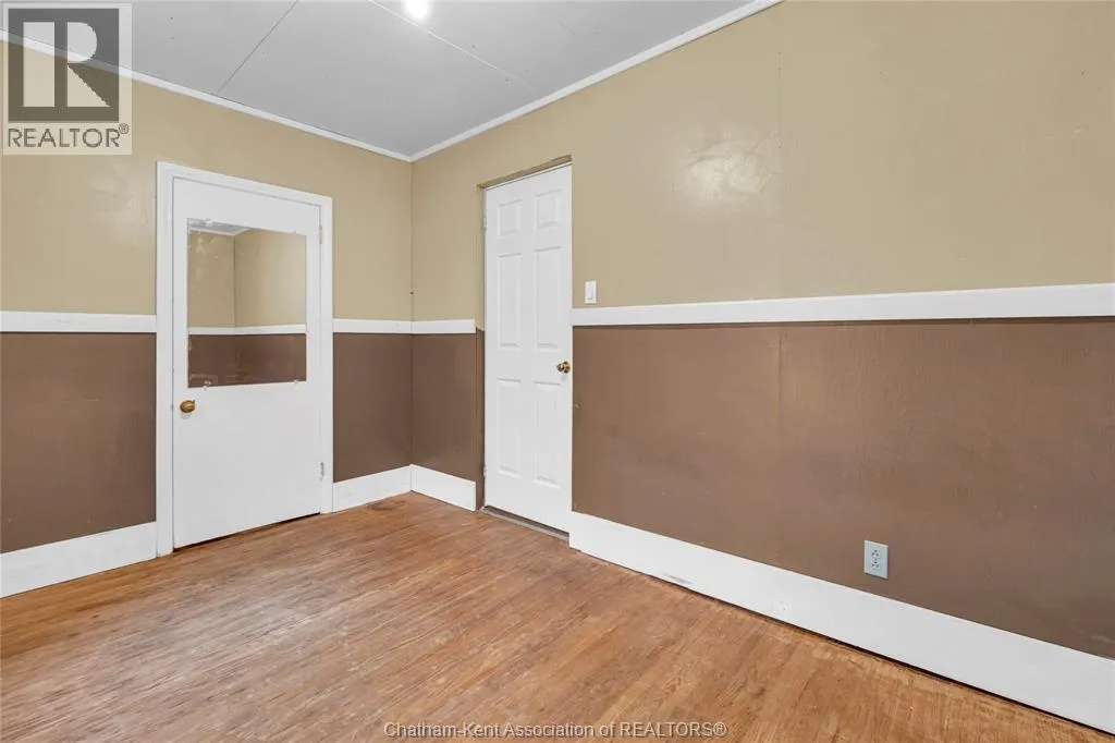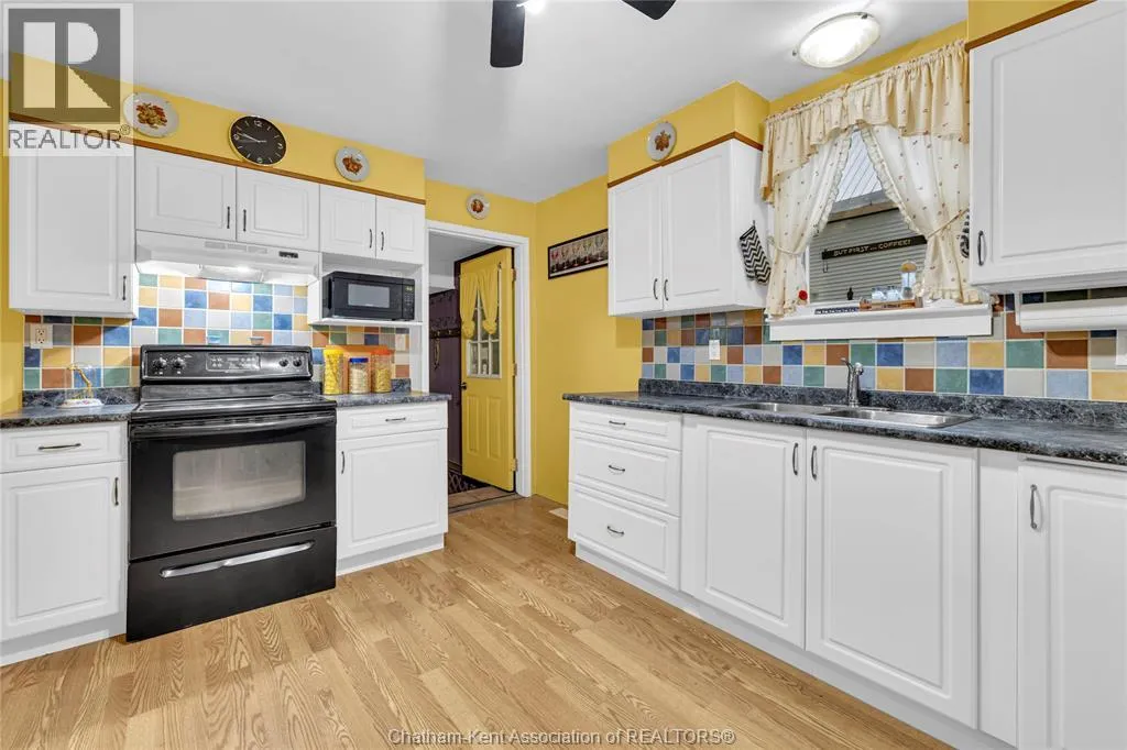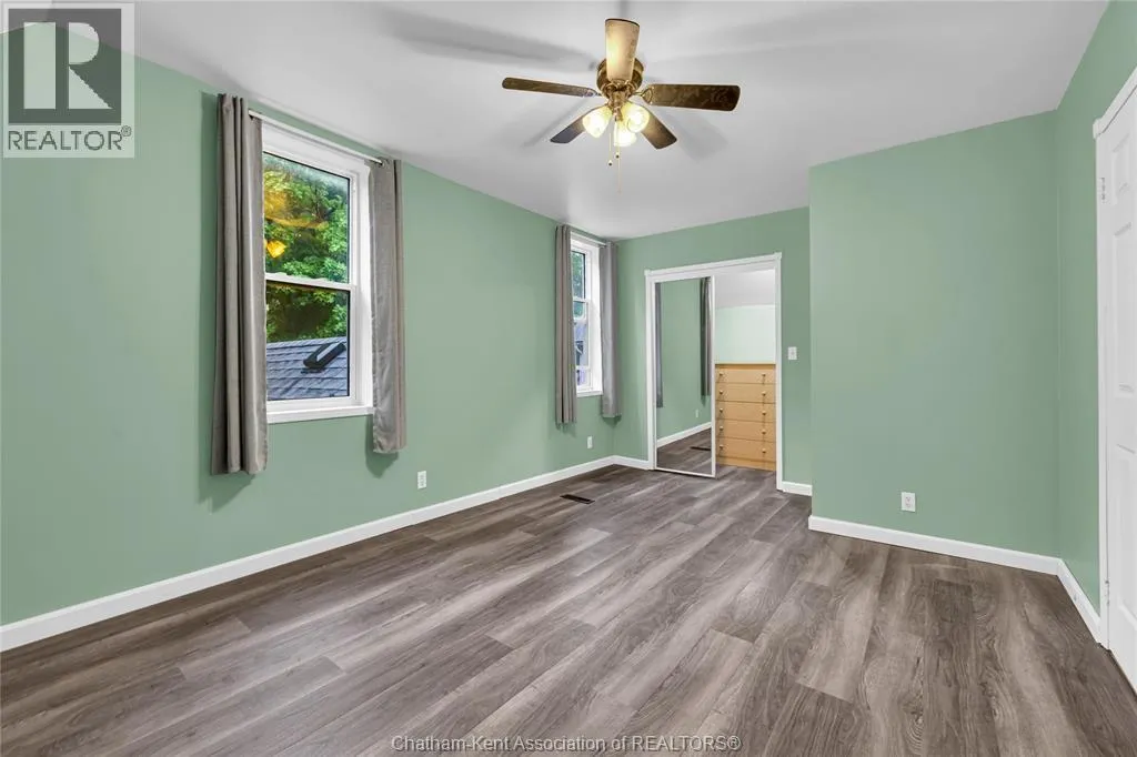 Escape the city to 25 Victoria Ave in Ridgetown, where architectural charm meets small-town living. Set on a mature, 1/3+ acre lot on one of Ridgetown's most desirable streets, this well-maintained 5-bedroom, 2-bathroom home offers a rare blend of history, space, and functionality. Walking into the generous foyer, you are greeted by an impressive original staircase and railing leading to the formal sitting room with a large bay window and a built-in library. A brick & stone wood-burning fireplace is an impressive feature of the large living room and is a timeless addition to this stately home. The functional kitchen offers plenty of space as well as an electric or gas stove hookup. Ground-level access to the backyard, 3 good-sized bedrooms, a 4-piece bath, and main floor laundry/mud room & access to the full basement round out the main level. The 2nd level of this grand home offers another 4-piece bathroom and 2 additional large bedrooms, each with large closets and plenty of natural light. The detached double garage is perfect for a mechanic or carpenter with hydro, fixed shelving, a long workbench, cement floor, and wood-stove chimney hookup, delivering all the modern amenities your handyman needs. The large back & side yard of this 1/3+ acre property is partially fenced and treed with perennial flowers & the large (partially shared) driveway has additional parking for 3+ vehicles. Additional features and upgrades include hardwood flooring throughout most of the main level, 200 AMP Service, bathrooms renovated 2023-2024, roof 2024, garage roof 2023, and new flooring on the 2nd floor 2024-2025. (id:27476)