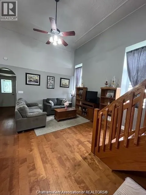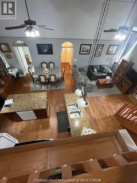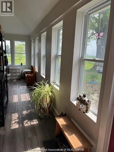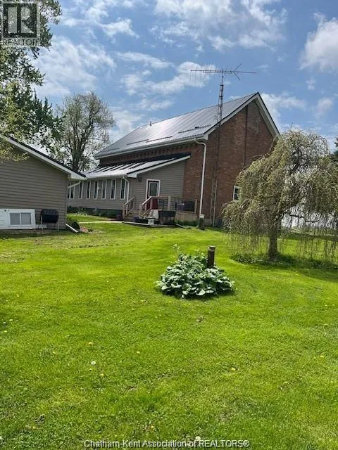 401 ACCESS TO RIDGETOWN HIGHWAY 21 (LONDON ROAD ),LOCATED ON THE CORNER OF LONDON RD AND BEECHWOOD LINE . This 1880 School house has been renovated into a charming residence with a small town setting. Access to the Highway ,schools and shopping. Sitting on a well maintained 2.58 ac beautiful property. Make this your hobby Farm! This is a very unique property, the interior is well done boasting a Oak kitchen, all wide open concept with lots of room for entertaining large windows to let in natural lighting to look out and admire the view. Also 14 ft ceilings with the original stunning tin and trim. The beautiful stairway leading up to the large loft that overlooks the downstairs is a center piece in itself . Three bedrooms , two bathrooms with lots of storage in this home. So many updates, new septic in 2017 that goes to the front yard. Steel roof and nice back porch in 2020 the entire property with its gardens and fruit trees, this property is entirely fenced in. Two car garage plenty of parking space definitely a must see !! please don't wait call today!! (id:27476)