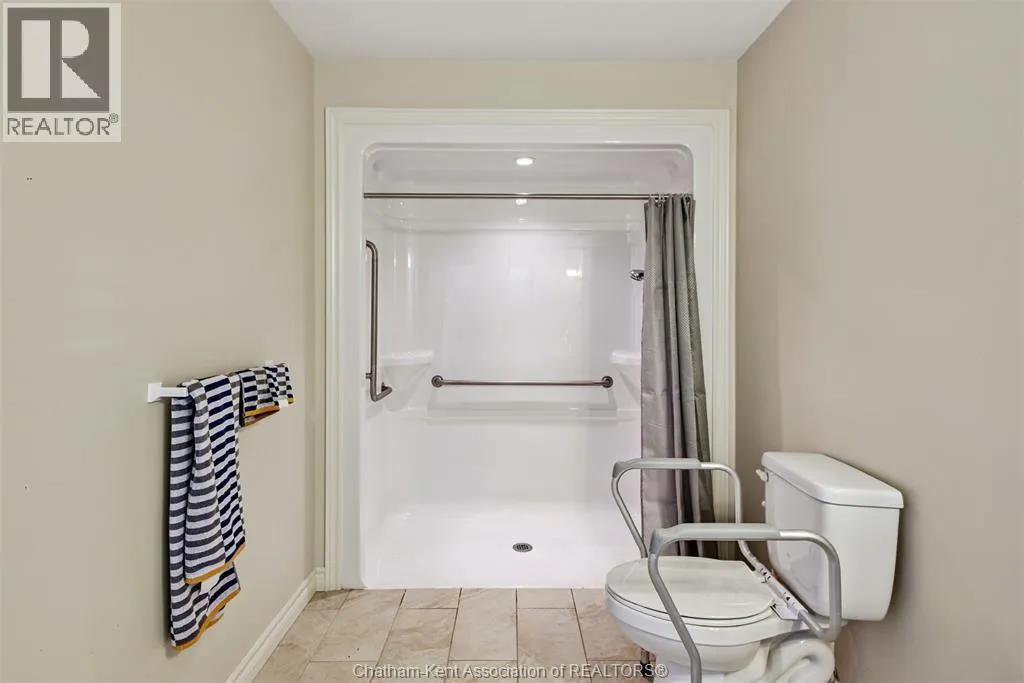 Main Street South on Maple turns to Goodal then to Kyle Searching for an accessible home? 23 Kyle Drive in Ridgetown is a perfect opportunity. 11 year old, one floor ranch style with wheelchair ramp access, wider doors, grab bars, open concept living space and a barrier free shower in the primary ensuite. The layout features the front entrance foyer with convenient laundry. Front room can be used as an office, reading room or the 3rd bedroom. Open concept kitchen, dining area and Living room with patio doors to rear wooden deck. 2nd bedroom also has access to the crawl space that is nice and high, concrete floor, neat and clean. Primary bedroom with double closet and the 3 pc ensuite. Ceramic and laminate flooring is ideal for this setup. The location is one of the best neighbourhoods with mainly local traffic, amazing walking trail nearby, mature trees and surrounded by unique homes in a high end subdivision. Concrete drive, custom shed, wooden deck and a natural gas generac generator in case of power outages. Although we have the accessible features this is a 3 bedroom home on one level, perfect for retirees and the location is top notch. Immediate possession if needed. (id:27476)