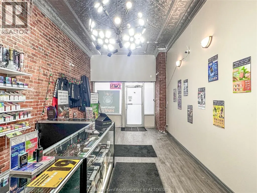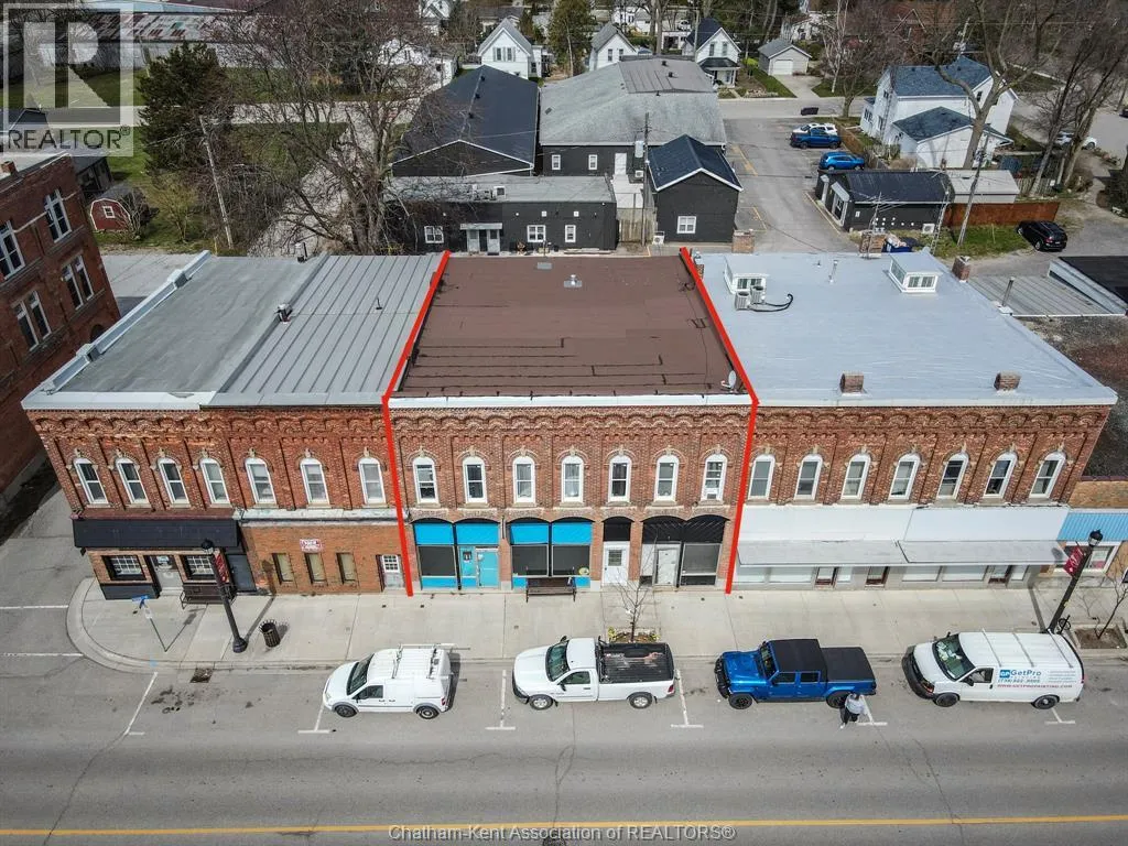 Large mixed use commercial/residential building with a premium Main Street location in beautiful Ridgetown. 2 street level storefronts, 3 residential apartments on the second floor, and a full basement. The larger storefront is approx 1200 square feet, bright and updated with a 2pc bathroom and is occupied by a seasonal ice cream shop ($1200/month). The second main floor unit is approximately 700 square feet with an exposed brick wall, restored tin ceiling, and a 2pc bath, rented to a vape shop ($750/month). There is a roughly 900 square foot addition at the back of the main floor that could be finished into more rentable commercial space or living accommodations. The 3 bedroom apartment is very spacious and nicely updated with a beautiful kitchen, 4pc bathroom, tall ceilings, large rooms throughout and in-suite laundry ($1400/month). The 2 bedroom apartment is also updated with 4pc bathroom ($1200/month). The 1 bedroom apartment is a great bachelor pad with a 4 pc bathroom ($725/month). Total yearly income $63,300. Recent updates: brick facade repointed, upper windows, furnace/ac, back addition roof. A fantastic investment opportunity is a growing small town. Call now! (id:27476)