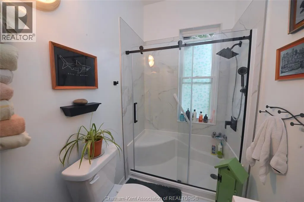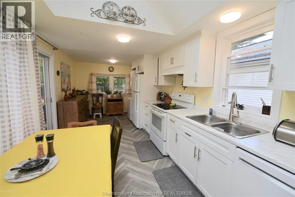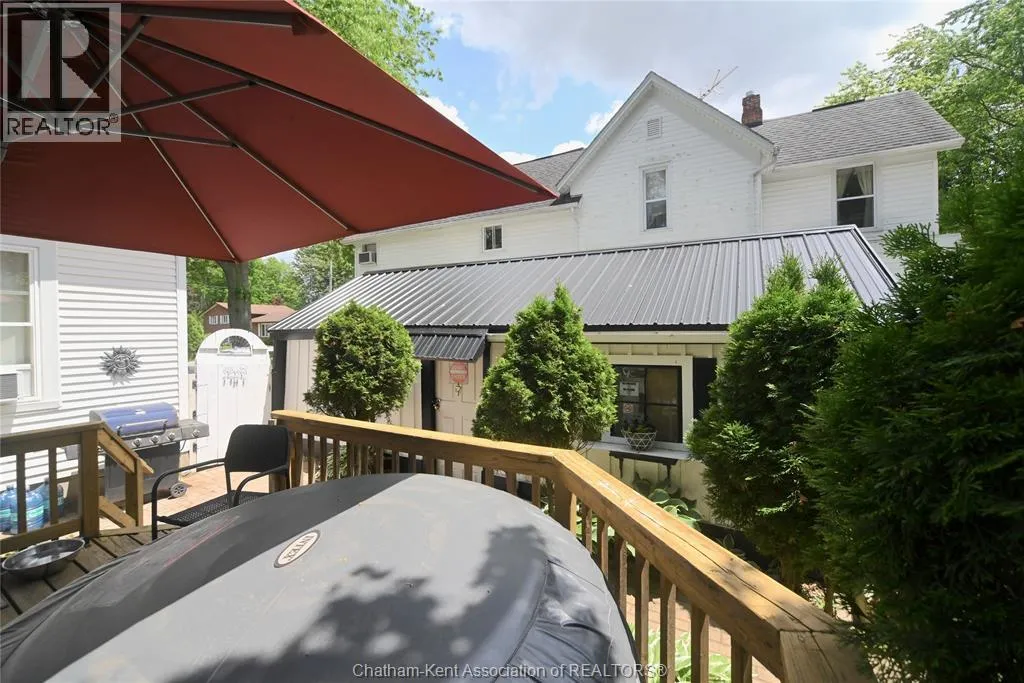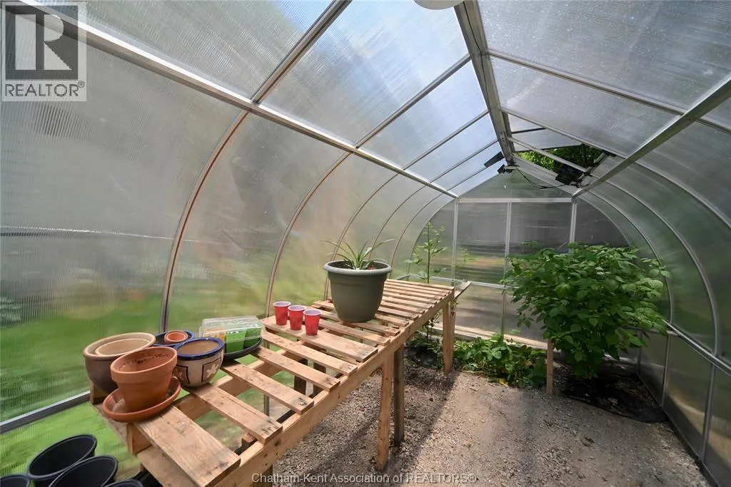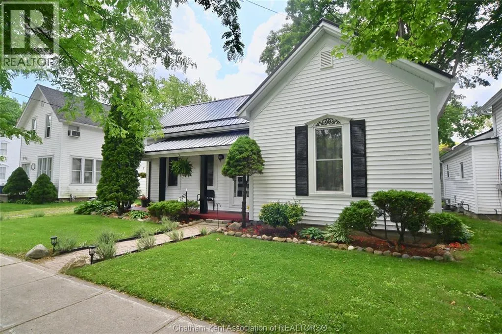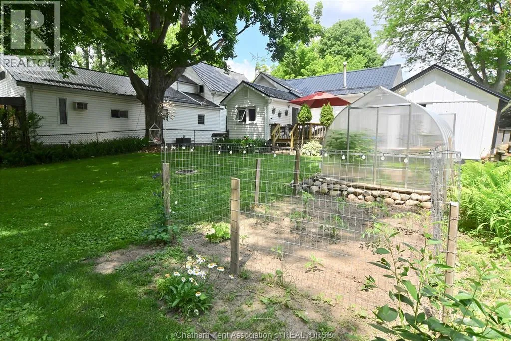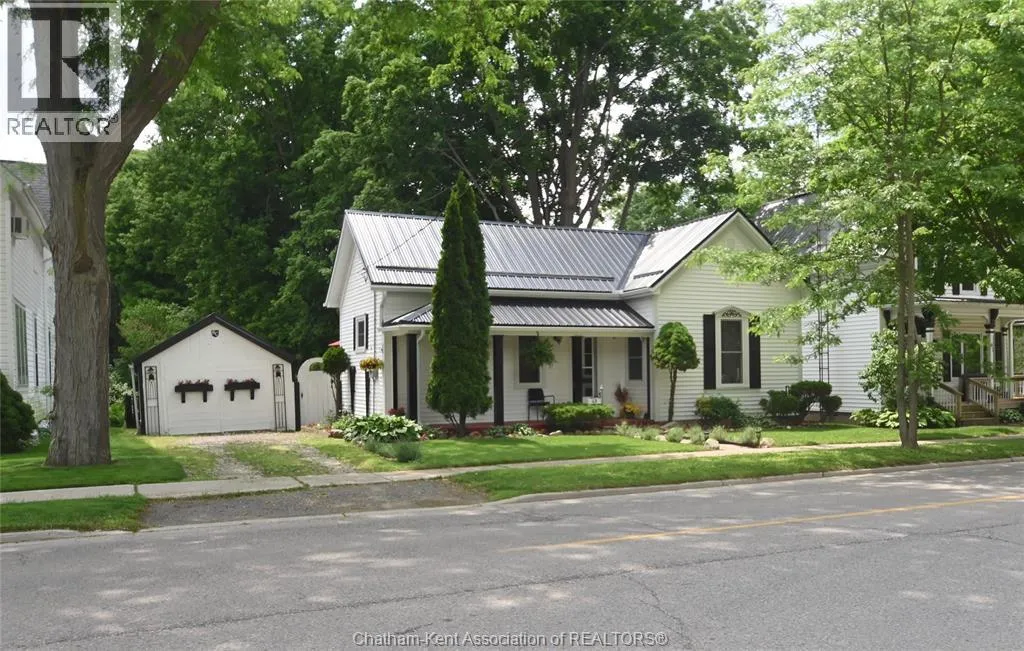 This little doll house dream is thoroughly renovated and ready for its new owner to turn the key and enjoy all of the updates. Right from the street this 3 bedroom beauty embodies all of that classic Ridgetown century home charm and character with the welcoming covered front porch, trimmed out windows and original entry. Inside are high ceilings, a beautiful, bright new kitchen with laundry at the end, a skylight, and large sliding doors out to the backyard deck and patio. The new 3 piece washroom features an extra large custom tiled shower with seat, plus there's all new siding and windows, brand new furnace, and a new metal roof on the home and workshop. The workshop also makes a great storage space or extra large potting shed with hydro and lots of room, being the size of a single car garage. Gardeners will love the greenhouse with garden plot behind and the rows of berries and grapes already established for you. A handy new 12' x 8' garden shed keeps some storage out of your shop and the large, fully fenced backyard with mature trees is a great escape. This home is being sold ""as is."" (id:27476)