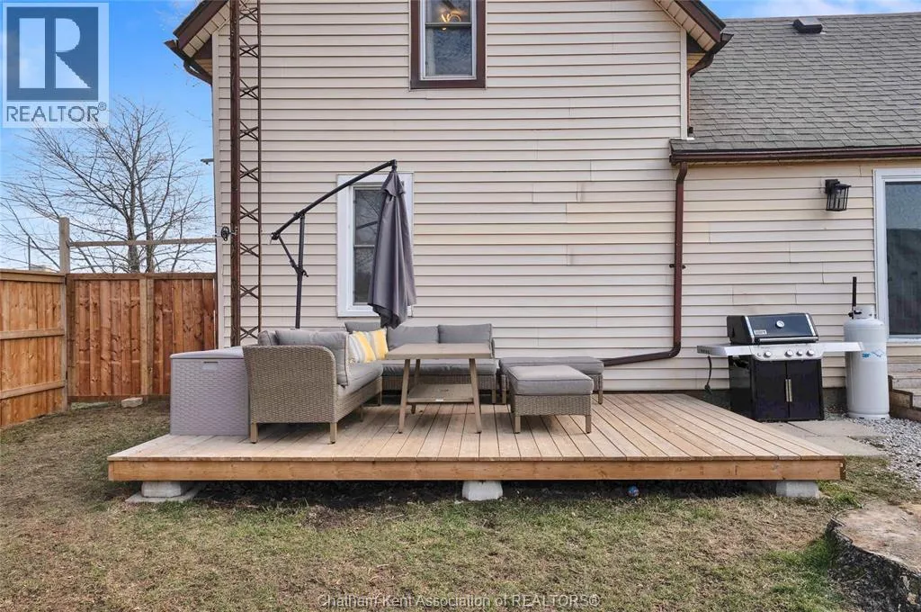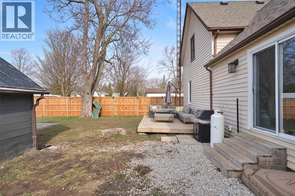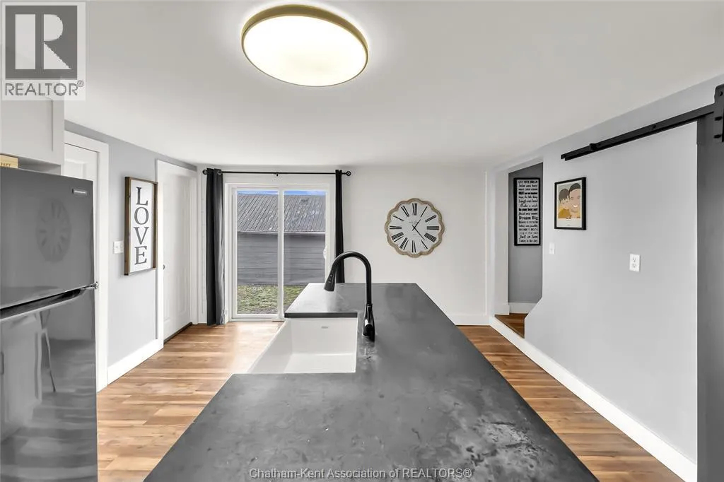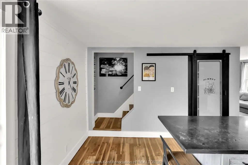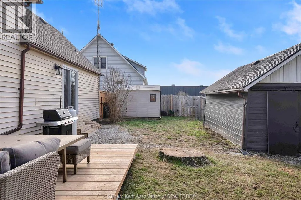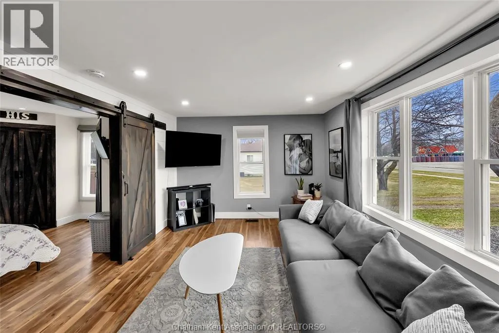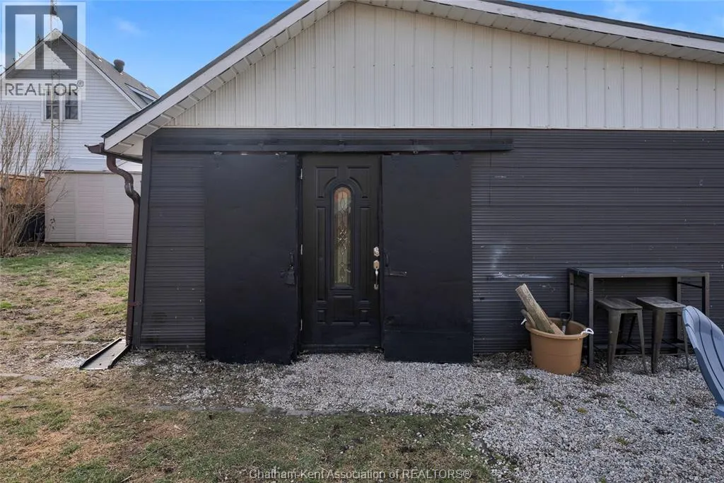 Turn right off of Main St W onto Erie St s Welcome to this charming home in the heart of Ridgetown, where modern updates meet warm, rustic character to create a space that truly feels like home. Step inside to a beautiful and functional entryway with ample storage for coats and shoesâperfect for keeping everyday life organized. The bright eat-in kitchen is filled with natural light and offers plenty of cabinet space, along with a convenient walk-in pantry, making it an ideal space for both quiet mornings and gathering with family and friends. Thoughtful finishes like luxury vinyl flooring and sliding barn doors add style and personality throughout, creating a cozy yet elevated atmosphere. The primary bedroom features the added convenience of his and hers closets, while two additional spacious bedrooms upstairs provide flexibility for family, guests, or a home office. Step outside to your fully fenced yard, offering plenty of room for kids or pets to play, entertain, or simply unwind. Enjoy summer evenings with ease thanks to the natural gas BBQ hookup, plus the added bonus of a storage shed and an outbuildingâperfect for hobbies, extra storage, or workspace. This home offers the perfect blend of comfort, style, and everyday functionalityâall set in a welcoming community youâll love to call home. (id:27476)
