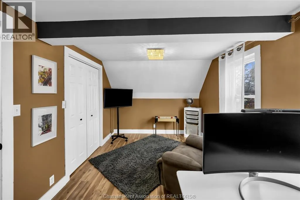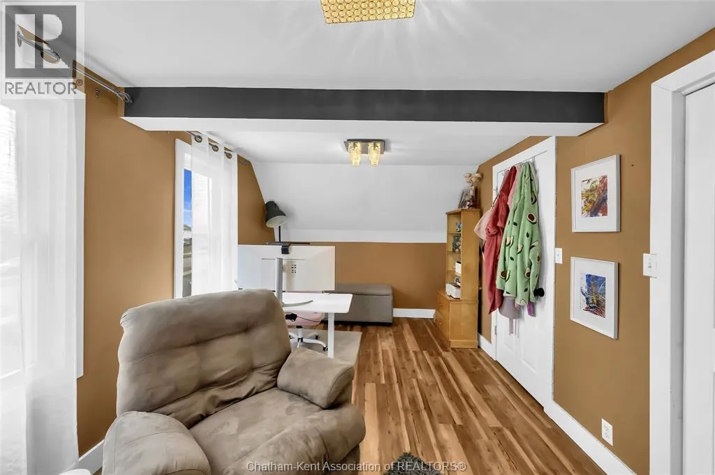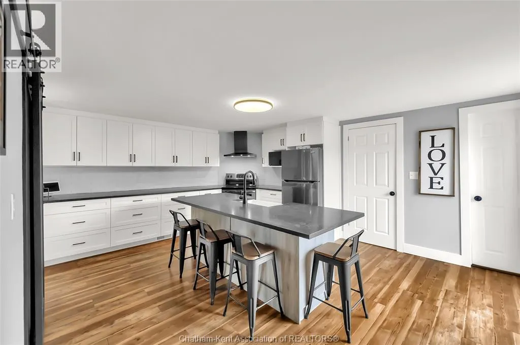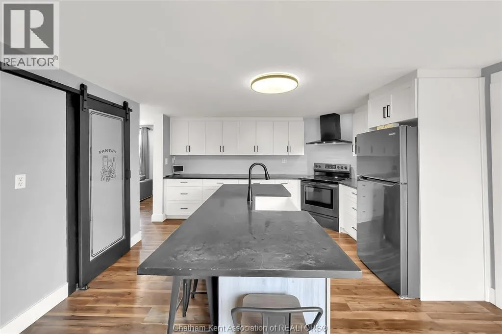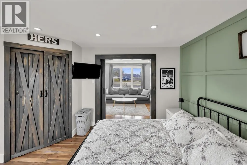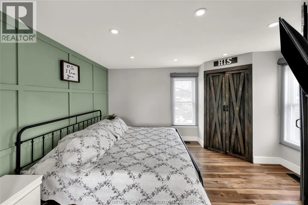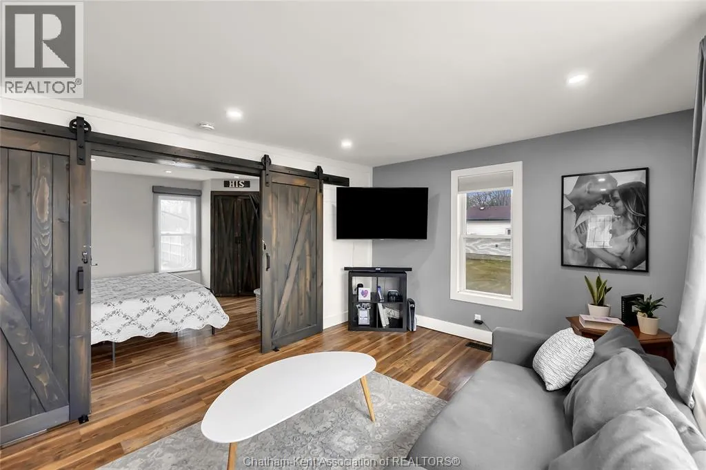 Turn right off of Main St W onto Erie St s Welcome to this charming home in the heart of Ridgetown, where modern updates meet warm, rustic character to create a space that truly feels like home. Step inside to a beautiful and functional entryway with ample storage for coats and shoesâperfect for keeping everyday life organized. The bright eat-in kitchen is filled with natural light and offers plenty of cabinet space, along with a convenient walk-in pantry, making it an ideal space for both quiet mornings and gathering with family and friends. Thoughtful finishes like luxury vinyl flooring and sliding barn doors add style and personality throughout, creating a cozy yet elevated atmosphere. The primary bedroom features the added convenience of his and hers closets, while two additional spacious bedrooms upstairs provide flexibility for family, guests, or a home office. Step outside to your fully fenced yard, offering plenty of room for kids or pets to play, entertain, or simply unwind. Enjoy summer evenings with ease thanks to the natural gas BBQ hookup, plus the added bonus of a storage shed and an outbuildingâperfect for hobbies, extra storage, or workspace. This home offers the perfect blend of comfort, style, and everyday functionalityâall set in a welcoming community youâll love to call home. (id:27476)