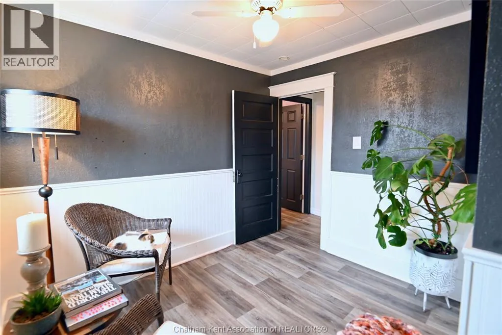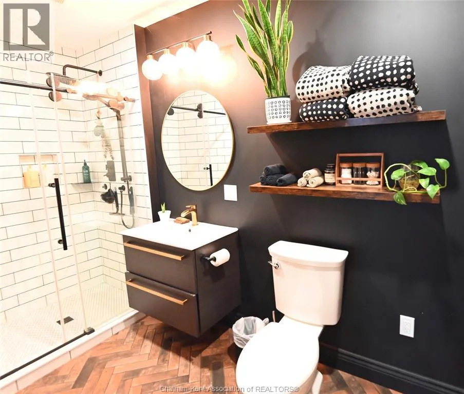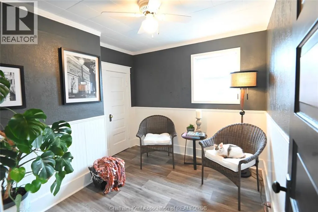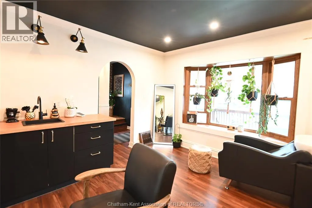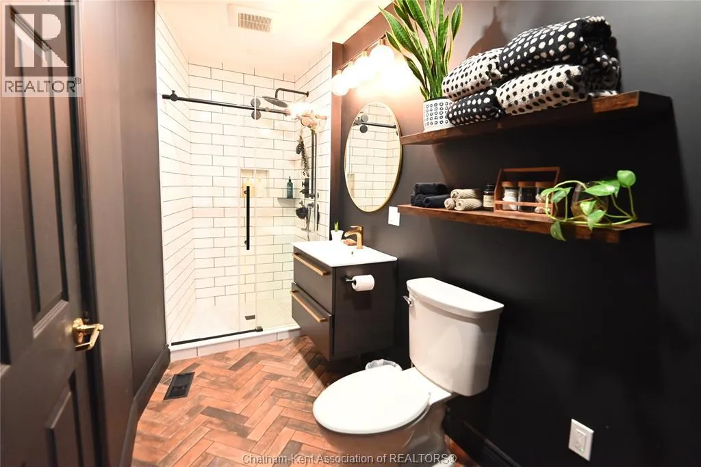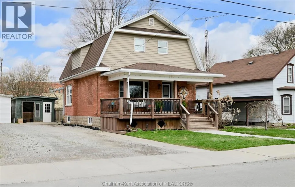 Main Street to the lights, south on Erie Street and an immediate right on to Ebenezer, home is the second on the left This 3 bedroom, 2 bathroom beauty in the heart of beautiful Ridgetown is an absolute classic with the gambrel roof and perfect front sitting porch, and still contemporary with stylish renovations that give it some edge. Perfect setup for those who need a front office or accessible pop-in space to work from home, or open the living room back up for more space or formal dining. Gorgeous bright kitchen with tons of cabinet space including a whole pantry wall, and an ideal breakfast bar plus stainless steel built in appliances. Main floor laundry in the new main floor full bathroom with custom tile shower is amazing, and the finished basement is a great spot for a hideaway lounge. Upstairs are three bedrooms where the character continues and another full bathroom with huge jet tub too. The back patio and fully privacy fenced yard make a great summer spot and the shed/garage offers storage or shop space all year round. The central side street location offers convenient walkability without being too busy, and all the updates allow you to move right in! (id:27476)