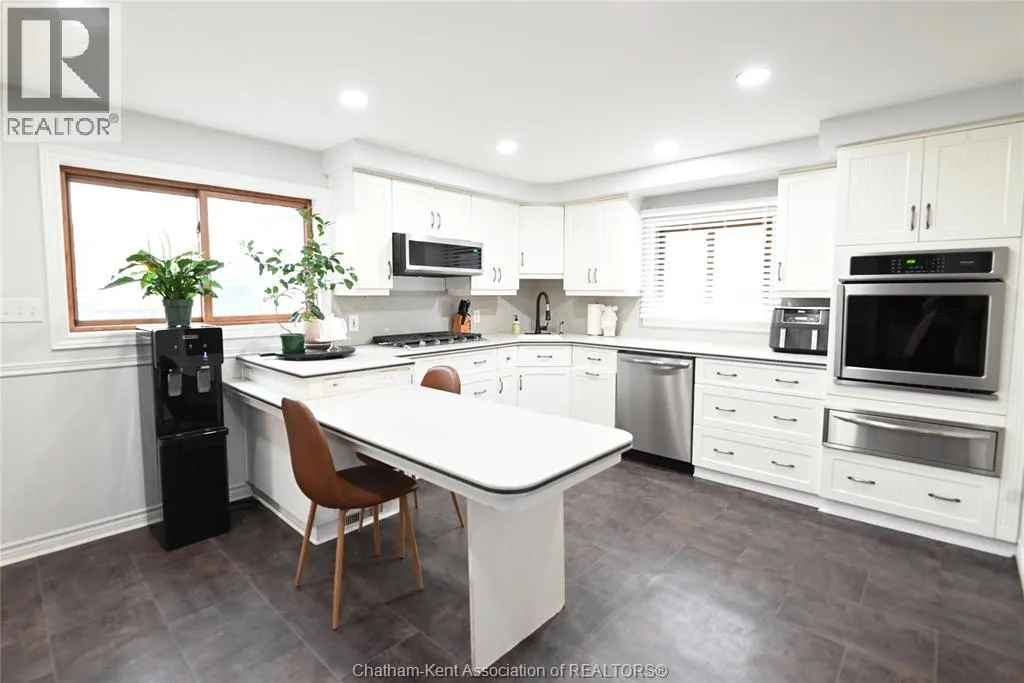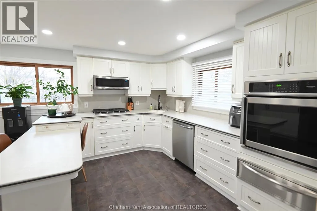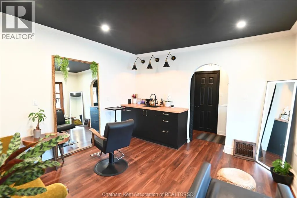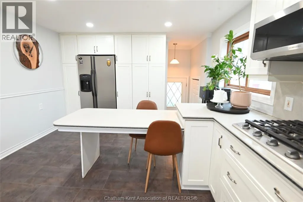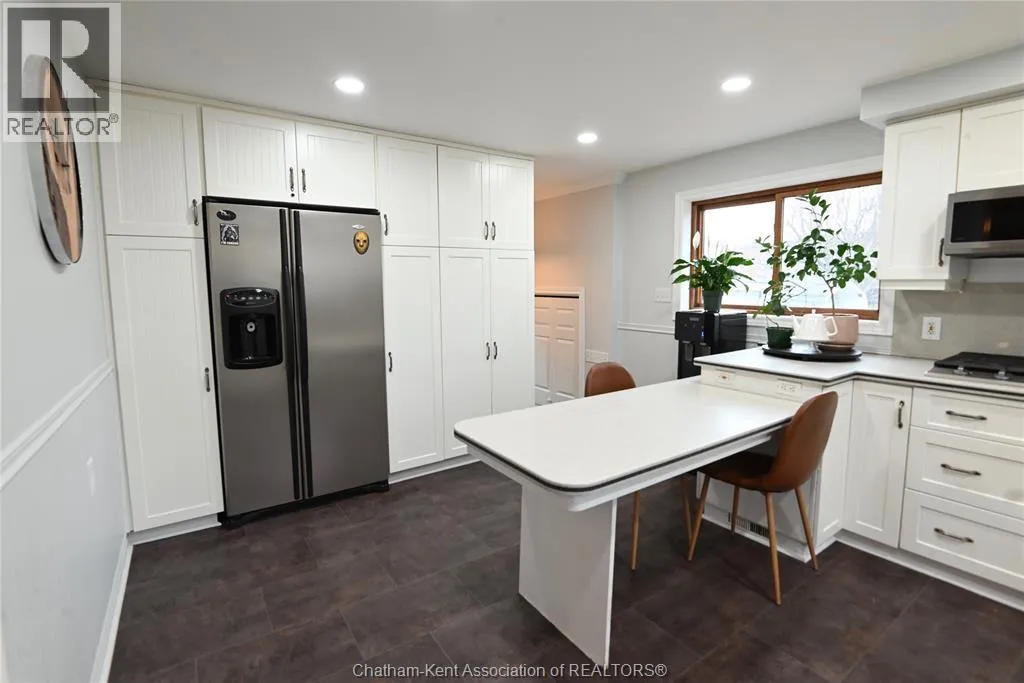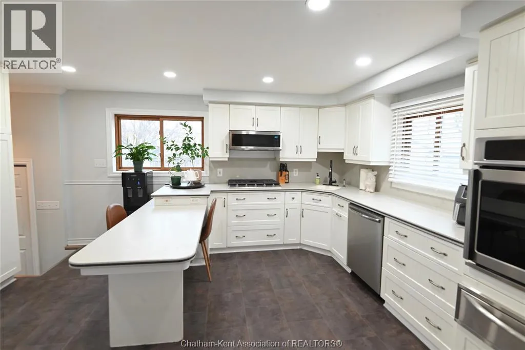 Main Street to the lights, south on Erie Street and an immediate right on to Ebenezer, home is the second on the left This 3 bedroom, 2 bathroom beauty in the heart of beautiful Ridgetown is an absolute classic with the gambrel roof and perfect front sitting porch, and still contemporary with stylish renovations that give it some edge. Perfect setup for those who need a front office or accessible pop-in space to work from home, or open the living room back up for more space or formal dining. Gorgeous bright kitchen with tons of cabinet space including a whole pantry wall, and an ideal breakfast bar plus stainless steel built in appliances. Main floor laundry in the new main floor full bathroom with custom tile shower is amazing, and the finished basement is a great spot for a hideaway lounge. Upstairs are three bedrooms where the character continues and another full bathroom with huge jet tub too. The back patio and fully privacy fenced yard make a great summer spot and the shed/garage offers storage or shop space all year round. The central side street location offers convenient walkability without being too busy, and all the updates allow you to move right in! (id:27476)