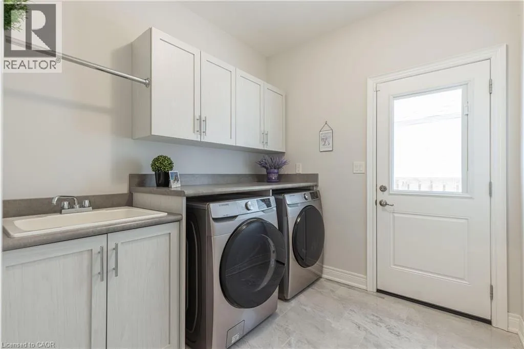 ABSOLUTE SHOWSTOPPER! This gorgeous home is loaded with upgrades throughout. Quality built by Mountainview Homes and offering over 2100 sqft of finished living space with 3 bedrooms, 2.5 bathrooms and an oversized double car garage on a premium pie shaped lot. Main floor features 9â ceilings throughout, beautiful hardwood floors, porcelain tiles and a stunning kitchen with island and quartz countertops and upgraded cabinetry with crown moulding. Upgraded laundry room with side by side washer & dryer and laundry tub plus side door access to the exterior. Over sized primary suite on the main floor with walk-in closet and beautiful walk-in tiled shower with double quartz vanity. Second floor offers loft/office/den space, 2 bedrooms and 4-piece bath with soaker tub & tiled surround. Basement level is unfinished and awaiting your creative finishes plus rough-in for 3-piece bath. Additional upgrades include: 12â x 20â covered rear patio, upgraded windows throughout, 200 amp service, upgraded pot lights, oak staircase, cathedral ceilings, oversized sliding door to your rear yard. Awesome location just steps from downtown Ridgeway, walking distance to shops, restaurants, pharmacy and other amenities. Convenient location near schools and recreation trails and 5 minute drive to the pristine sands of Crystal Beach. (id:27476)